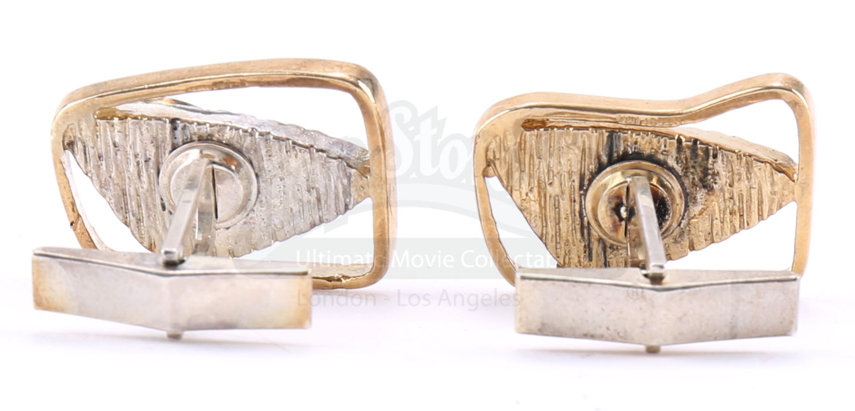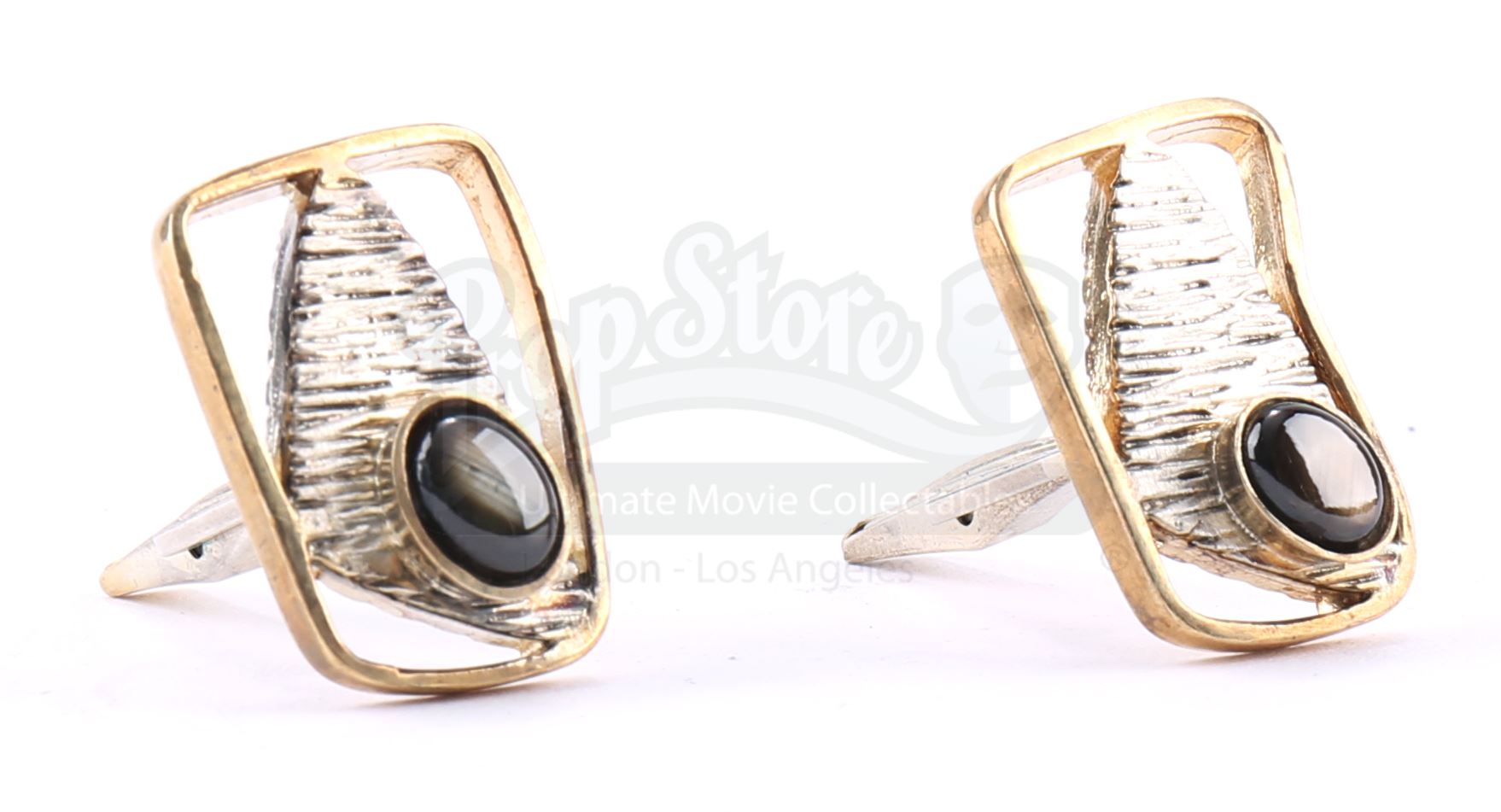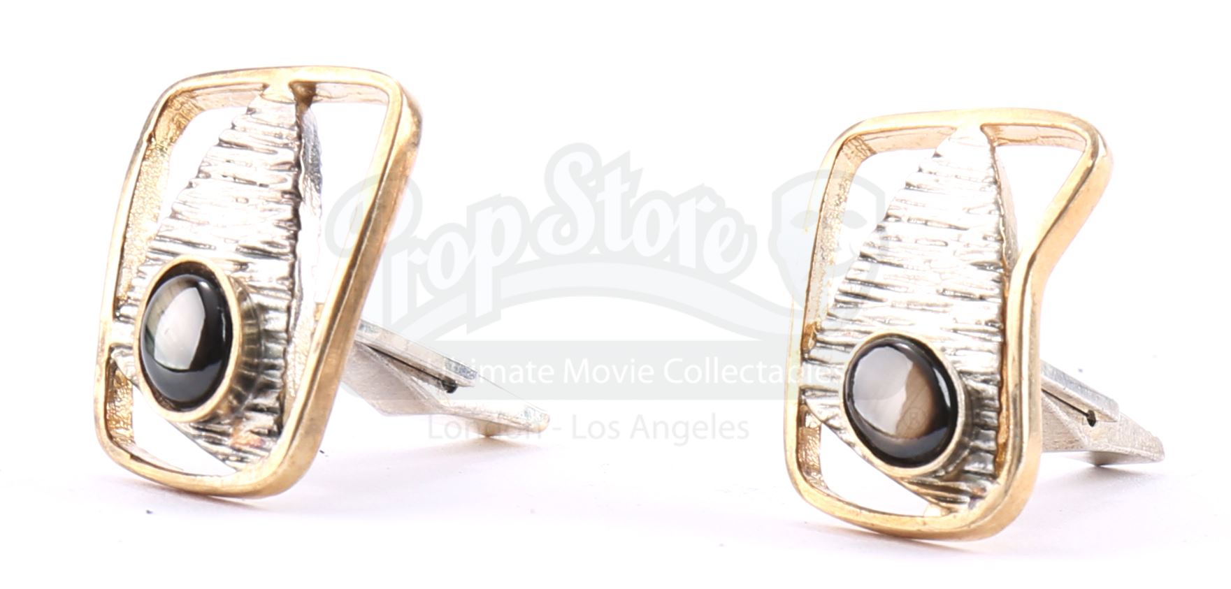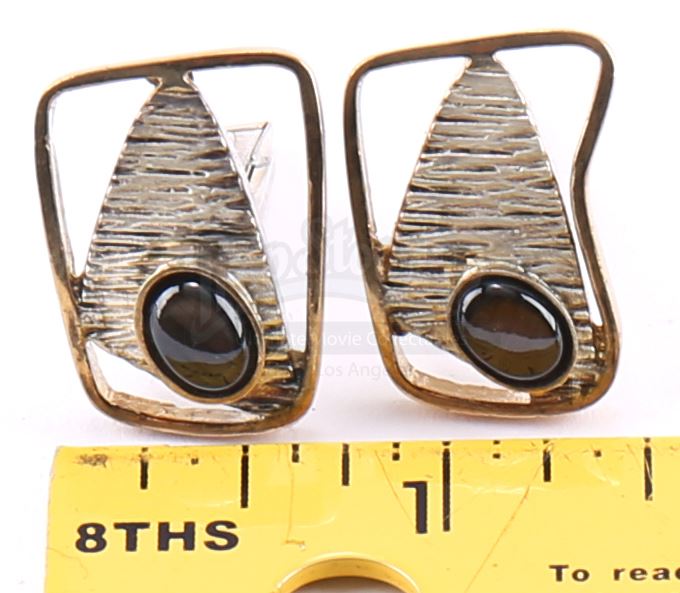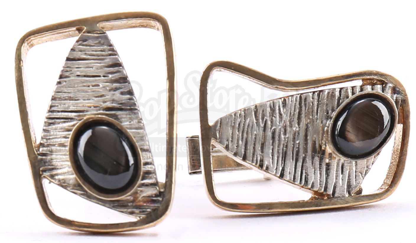 Bill Fisk’s cufflinks from the episode ‘Shadows in the Glass’ (108) of Marvel's Daredevil. In the episode, Fisk’s wife Marlene gives his cufflinks to their son, Wilson, after he kills his father. Wilson Fisk continues to wear them throughout the series. This lot consists of two sterling silver cufflinks each inset with an onyx-color stone. They are in good overall condition with some signs of wear from production.