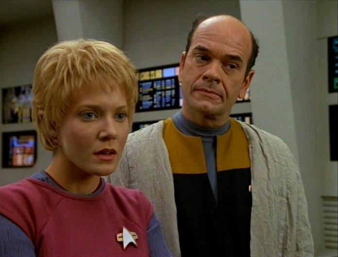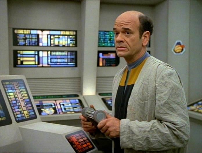 Dr. Lewis Zimmerman's (Robert Picardo) Starfleet uniform and lab coat from the sci-fi television series Star Trek: Voyager. In the Season 3 episode "The Swarm," the Emergency Medical Hologram (Robert Picardo) encountered a serious malfunction, so Chief Engineer Lieutenant B'Elanna Torres (Roxann Dawson), activated a perfect holographic recreation of the E.M.H.'s creator (and exact look-alike) Dr. Lewis Zimmerman.
