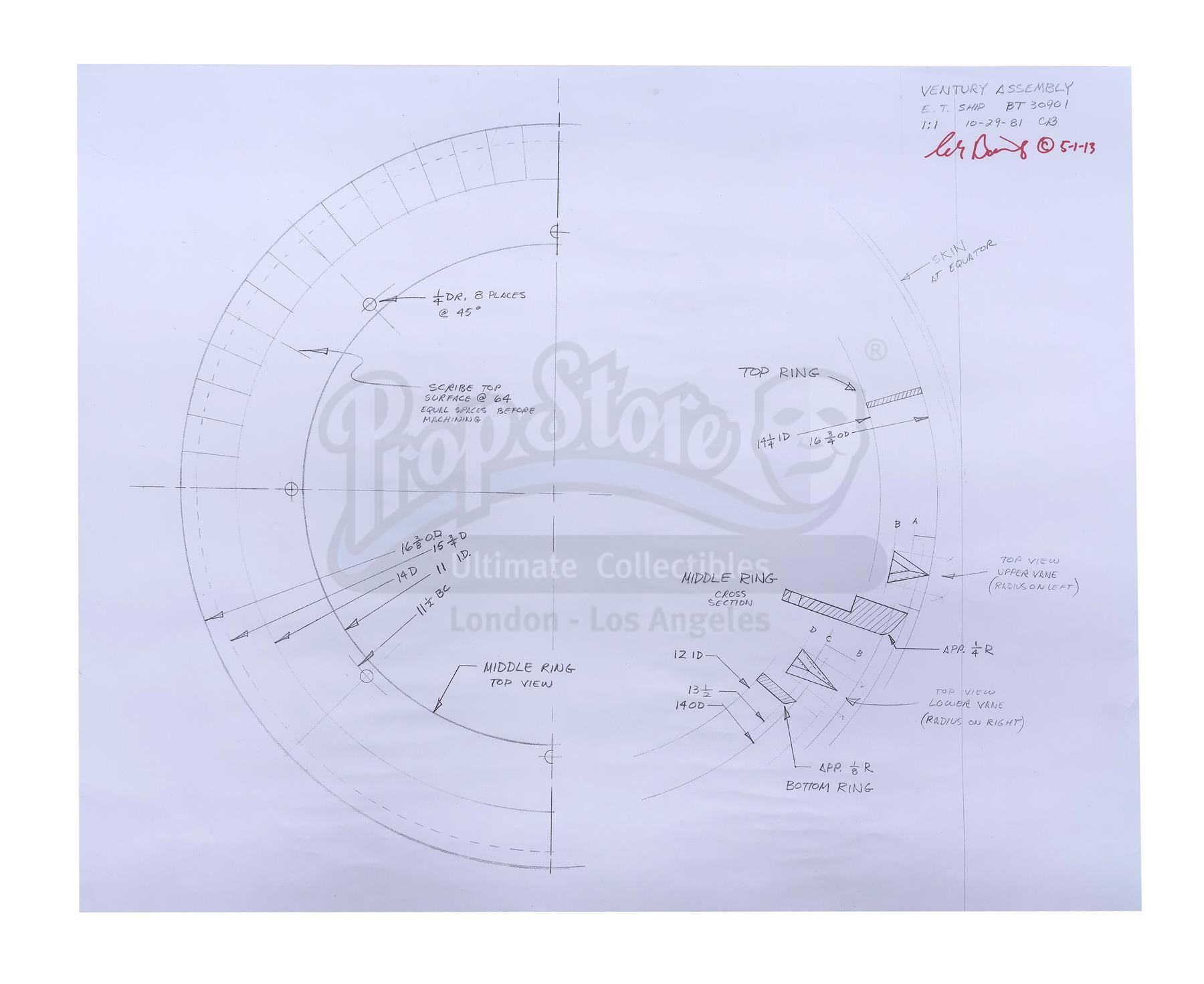Lot # 637: E.T. THE EXTRA TERRESTRIAL (1982) - E.T.'s Spaceship Reproduction Blueprints