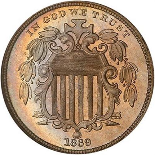 1869 Shield Nickel. A beaming gem rolling in unbeatable colorful flash from the smooth surface that emits boldly beneath bright frosted highlights. Possessed of a much better-quality strike than is normally found for a Proof of this year. Only 600 were made and sold with the Proof sets. (#3823)
