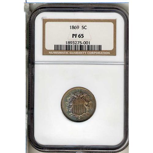 Lot 646 - 1869 Shield Nickel NGC PF 65