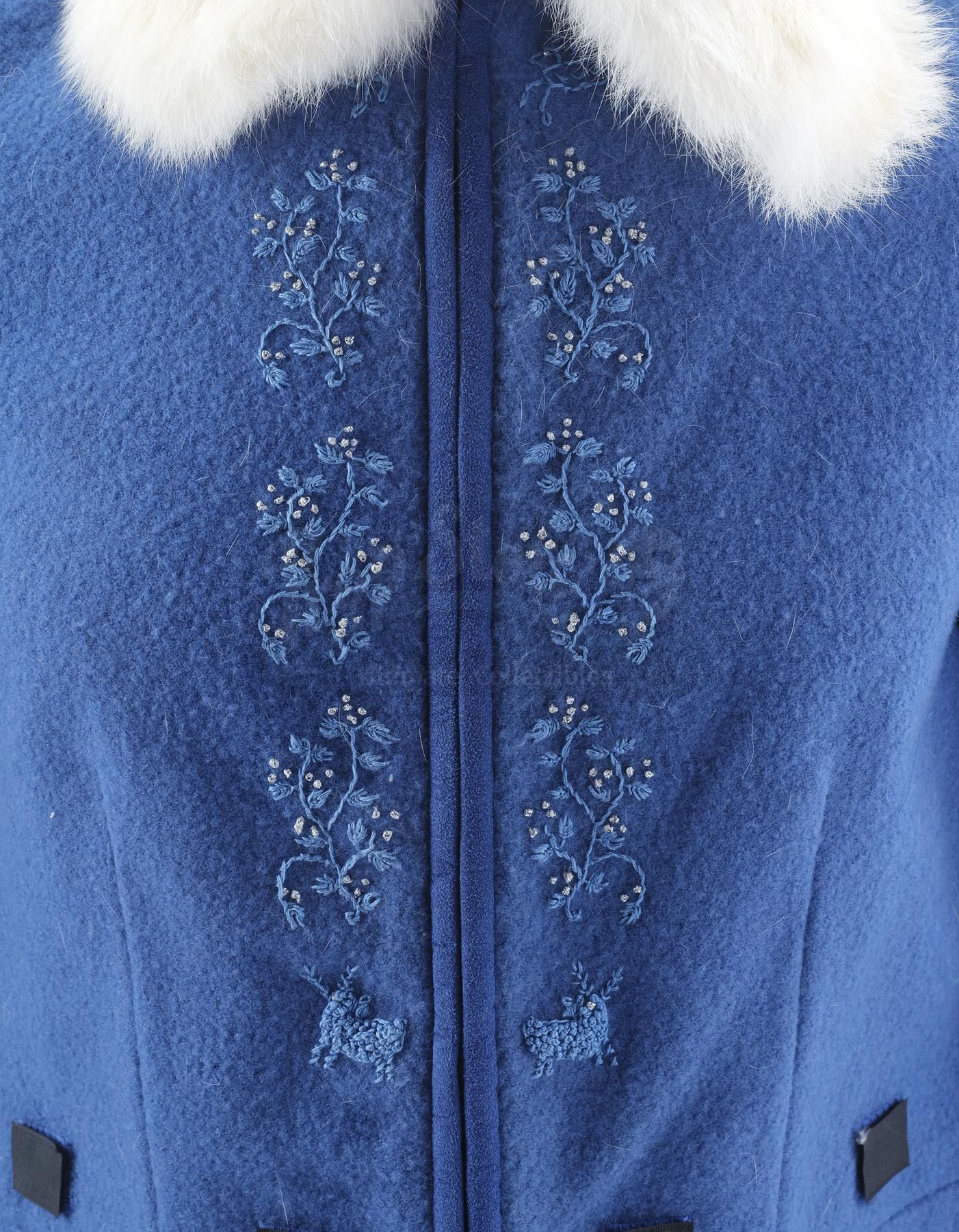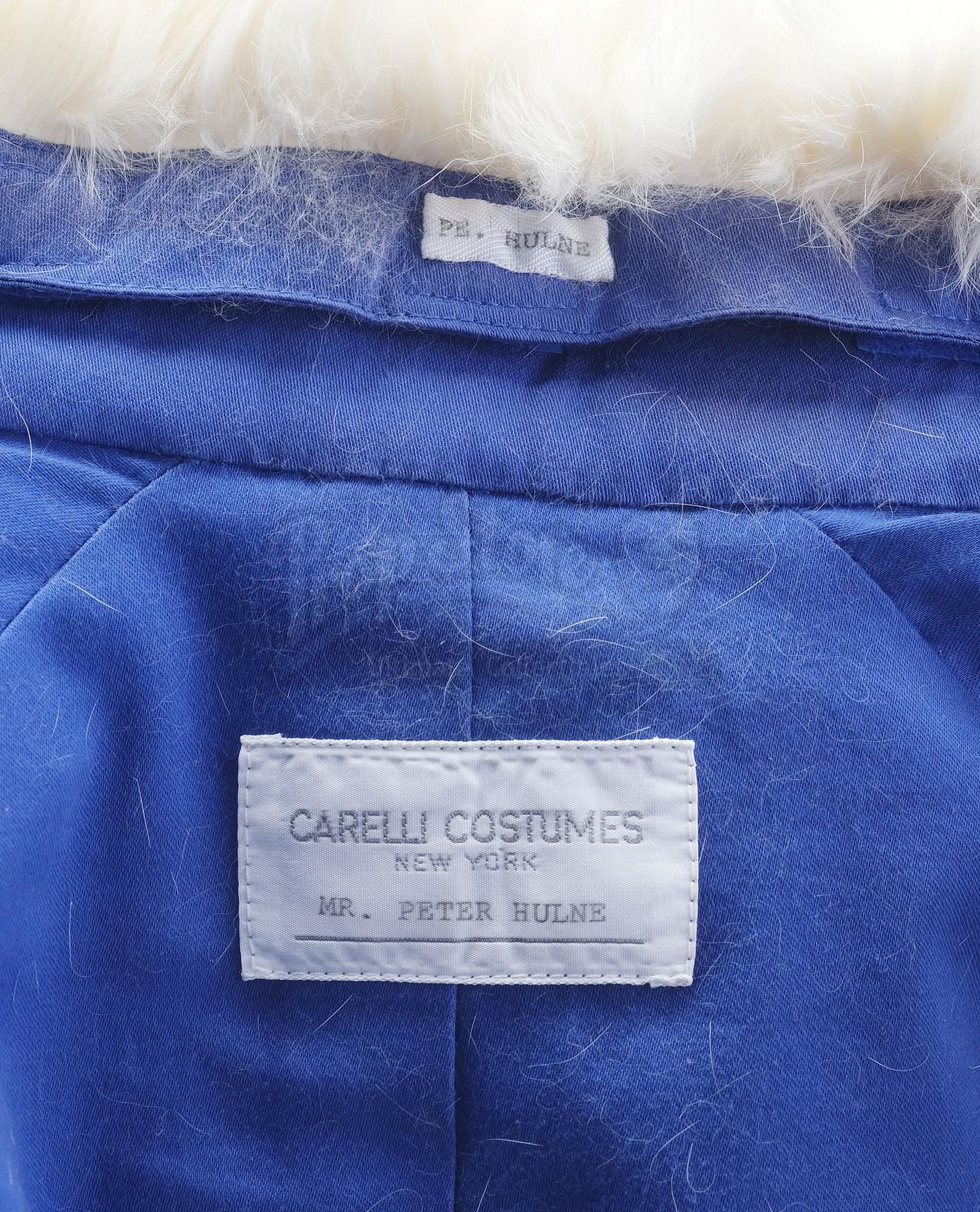 This lot will be auctioned on Wednesday, June 30th. The auction will begin at 9:00am PDT and lots are sold sequentially via live auctioneer; tune in to the live streaming broadcast on auction day to follow the pace. Note other lots in the auction may close on June 29th or July 1st. Elf twin's (Peter Hulne) jacket from Jon Favreau's holiday comedy Elf. Diminutive elf workers were seen through Santa Claus' (Ed Asner) workshop as they made toys with their human co-worker, Buddy (Will Farrell). This jacket is made of blue antron fleece with a white fur collar and cuffs. A white and light blue flower filigree pattern runs along both sides of the tunic's opening where metal hooks are hidden to close the tunic. Small Velcto details run along the waist. A maker's label from Carelli Costumes marks the jacket for "MR. PETER HULNE." It exhibits signs of wear from age and use, but remains in excellent overall condition Estimate: $1,000 - 1,500