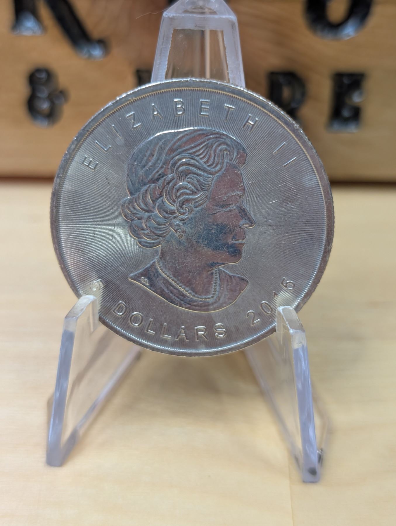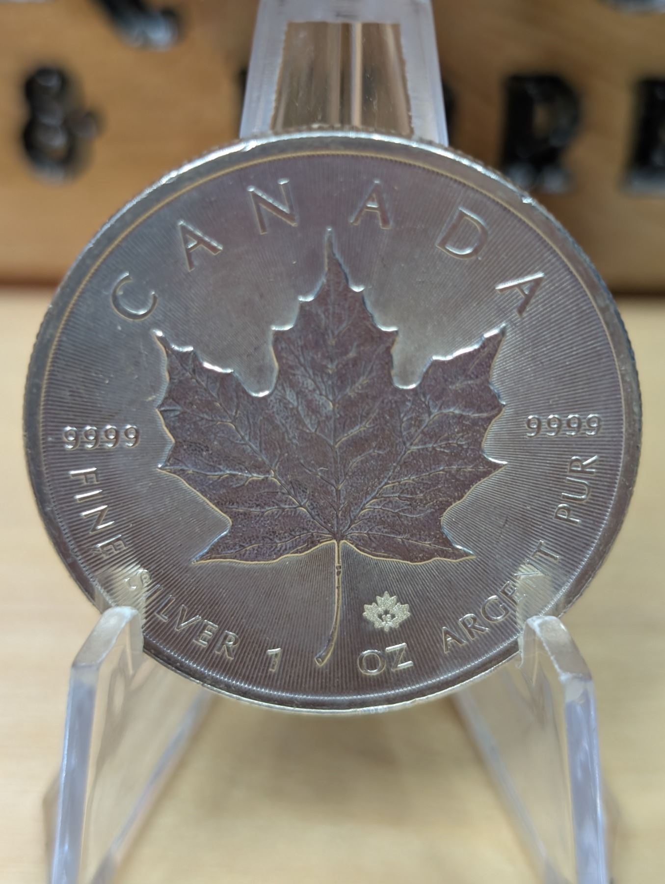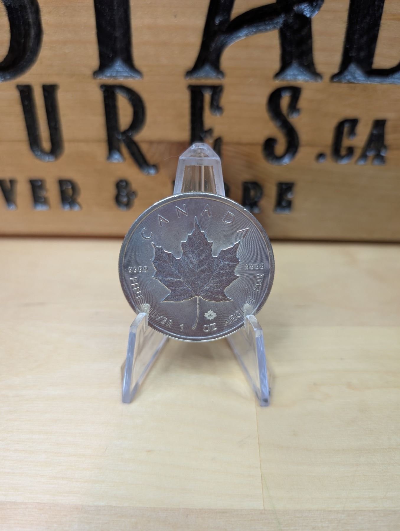 The 1 oz 2013 Canadian Maple Leaf Silver Coin is made of 99.99% pure silver and features a maple leaf design on the reverse and Queen Elizabeth II on the obverse. It includes a security feature in the form of a micro-engraved maple leaf. The coin is popular with both collectors and investors