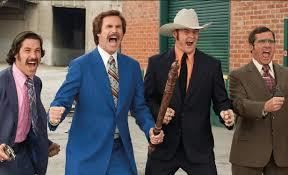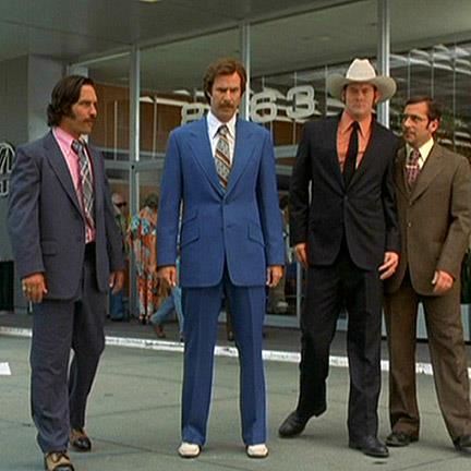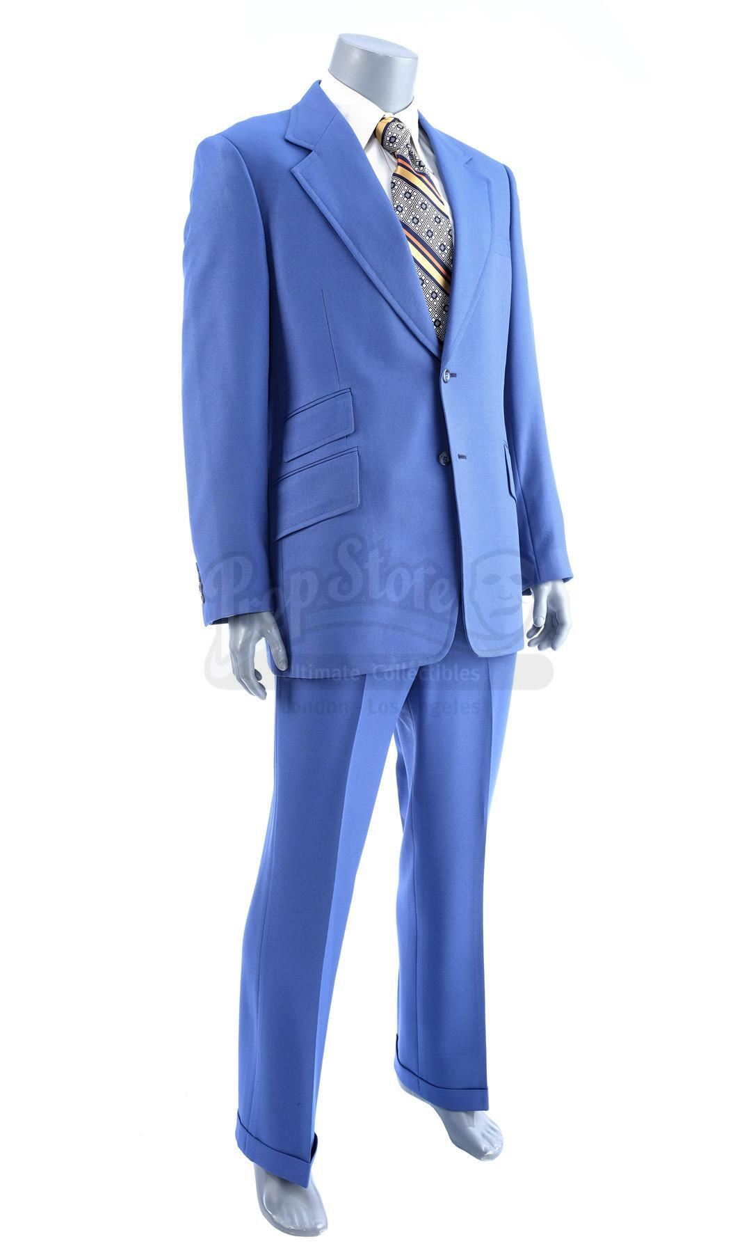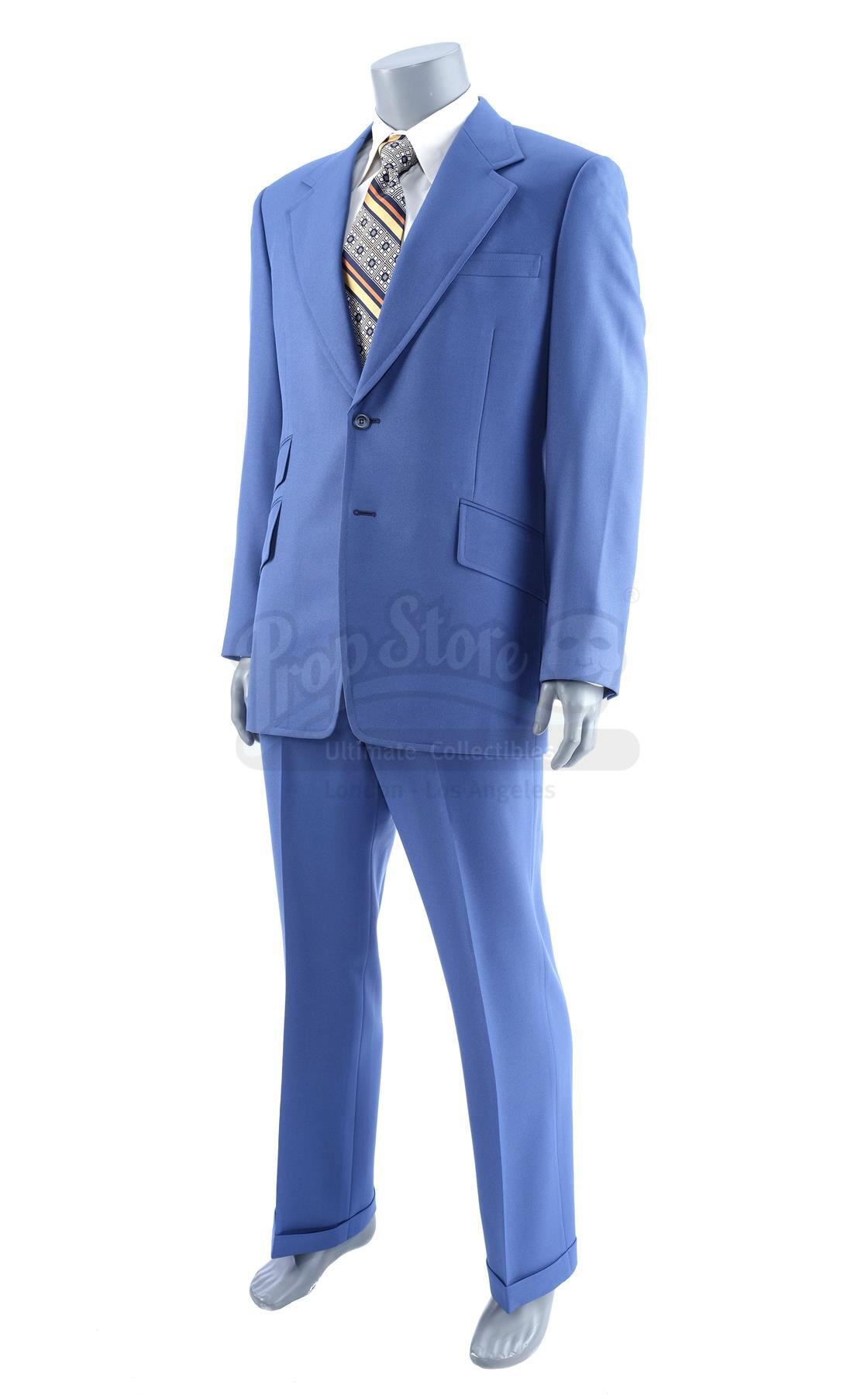 Ron Burgundy's (Will Ferrell) blue suit from Adam McKay's news satire Anchorman: The Legend of Ron Burgundy. Burgundy wore his signature blue two-piece suit throughout the film, including during the quickly escalating alley fight between the Channel 4 news team and their rivals.