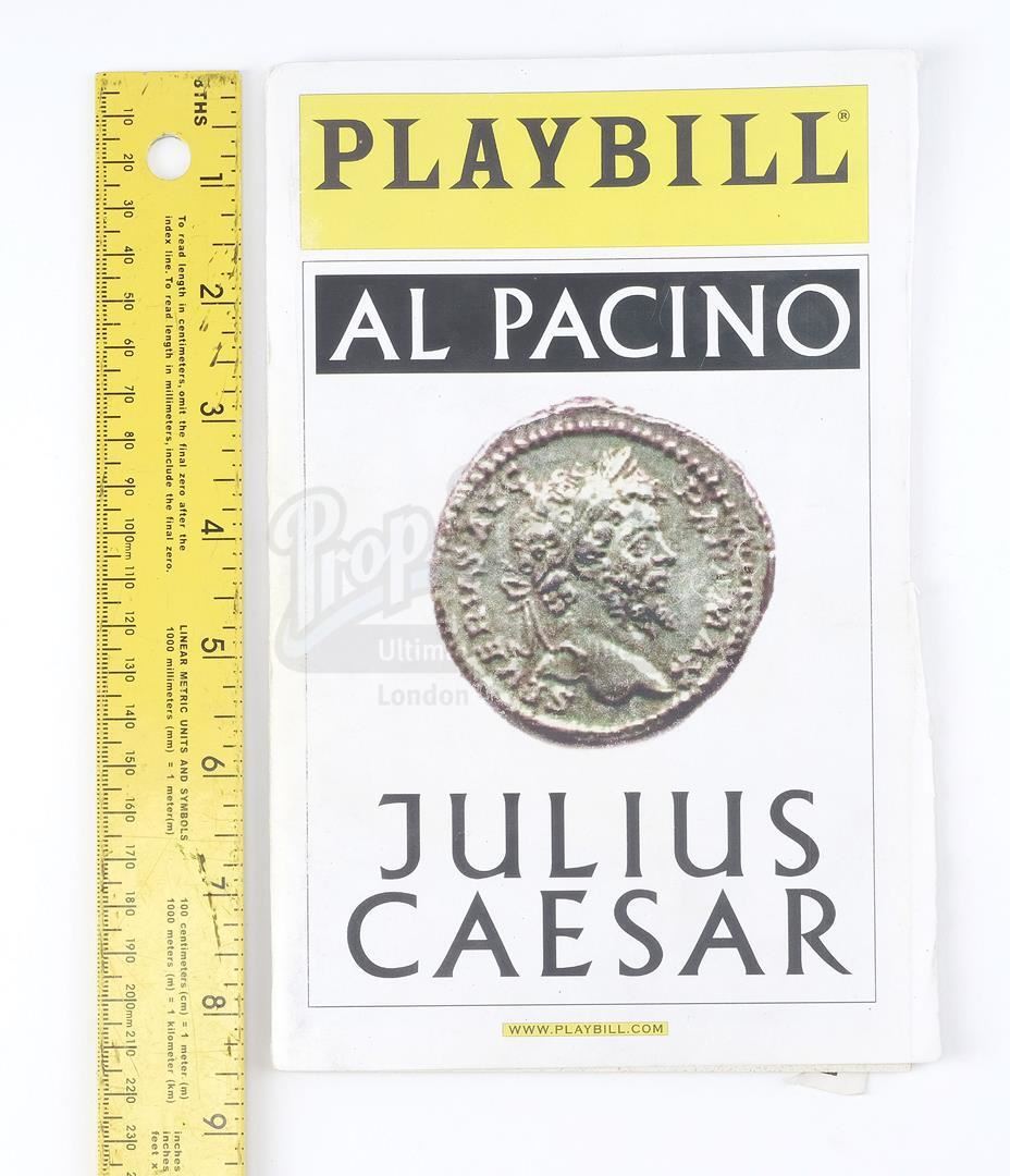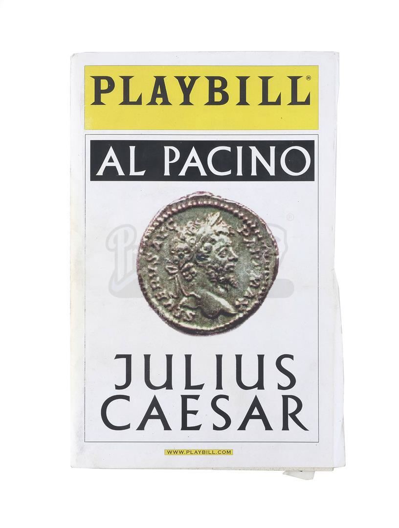 This lot will be auctioned on Wednesday, June 30th. The auction will begin at 9:00am PDT and lots are sold sequentially via live auctioneer; tune in to the live streaming broadcast on auction day to follow the pace. Note other lots in the auction may close on June 29th or July 1st. Joel's (Jim Carrey) hero memory-erased "Julius Caesar" playbill from Michel Gondry's sci-fi romance Eternal Sunshine of the Spotless Mind. Joel provided Lacuna Inc. with a sentimental Playbill from a show he saw with Clementine (Kate Winslet) in order to have his memories erased. This paper hero Playbill features a production-made cover for "Julius Caesar" starring Al Pacino affixed to a separate, real-world Playbill for a Broadway production of Aida. The playbill is in excellent overall condition with minor edge wear and bending from production. Dimensions: 8.5" x 5.5" x 0.5" (21.75 cm x 14 cm x 1.5 cm) Estimate: $800 - 1,200
