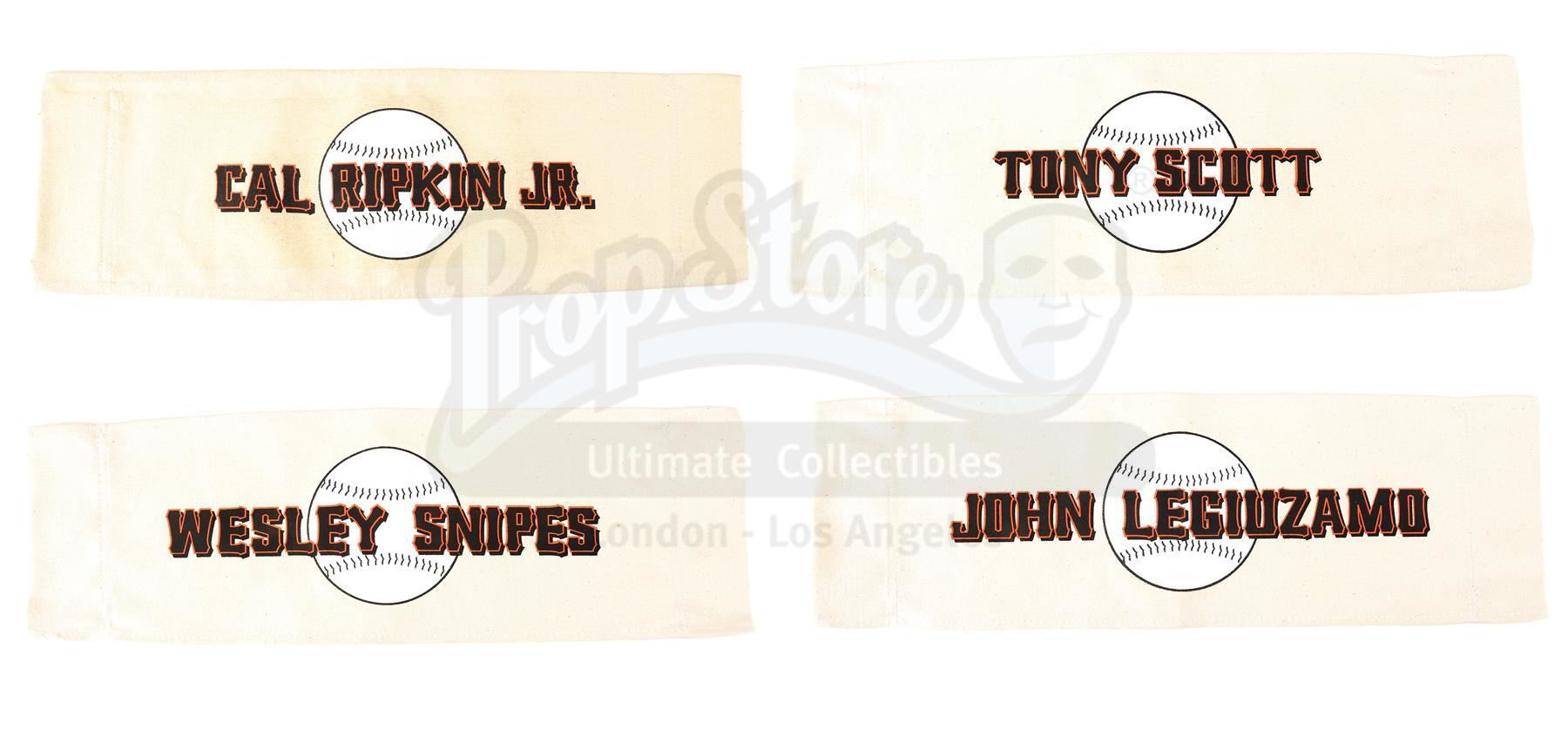 This lot will be auctioned on Wednesday, June 30th. The auction will begin at 9:00am PDT and lots are sold sequentially via live auctioneer; tune in to the live streaming broadcast on auction day to follow the pace. Note other lots in the auction may close on June 29th or July 1st. Four chairbacks from the production of Tony Scott's sports thriller The Fan. In the film, star baseball player Bobby Rayburn (Wesley Snipes) developed an unhealthy relationship with a troubled fan (Robert De Niro). This set consists of four matching tan canvas chairbacks, one each for director Scott, baseball consultant Cal Ripken Jr., who worked on the film and whhose name is misspelled "Ripkin" on the chairback, and cast members Snipes and John Leguizamo. They are emblazoned with the film's baseball logo under black and red text. The set is in excellent overall condition with minor signs of use by production. Dimensions (each): 21" x 7" x 1" (53.5 cm x 18 cm x 2.75 cm) Estimate: $600 - 800