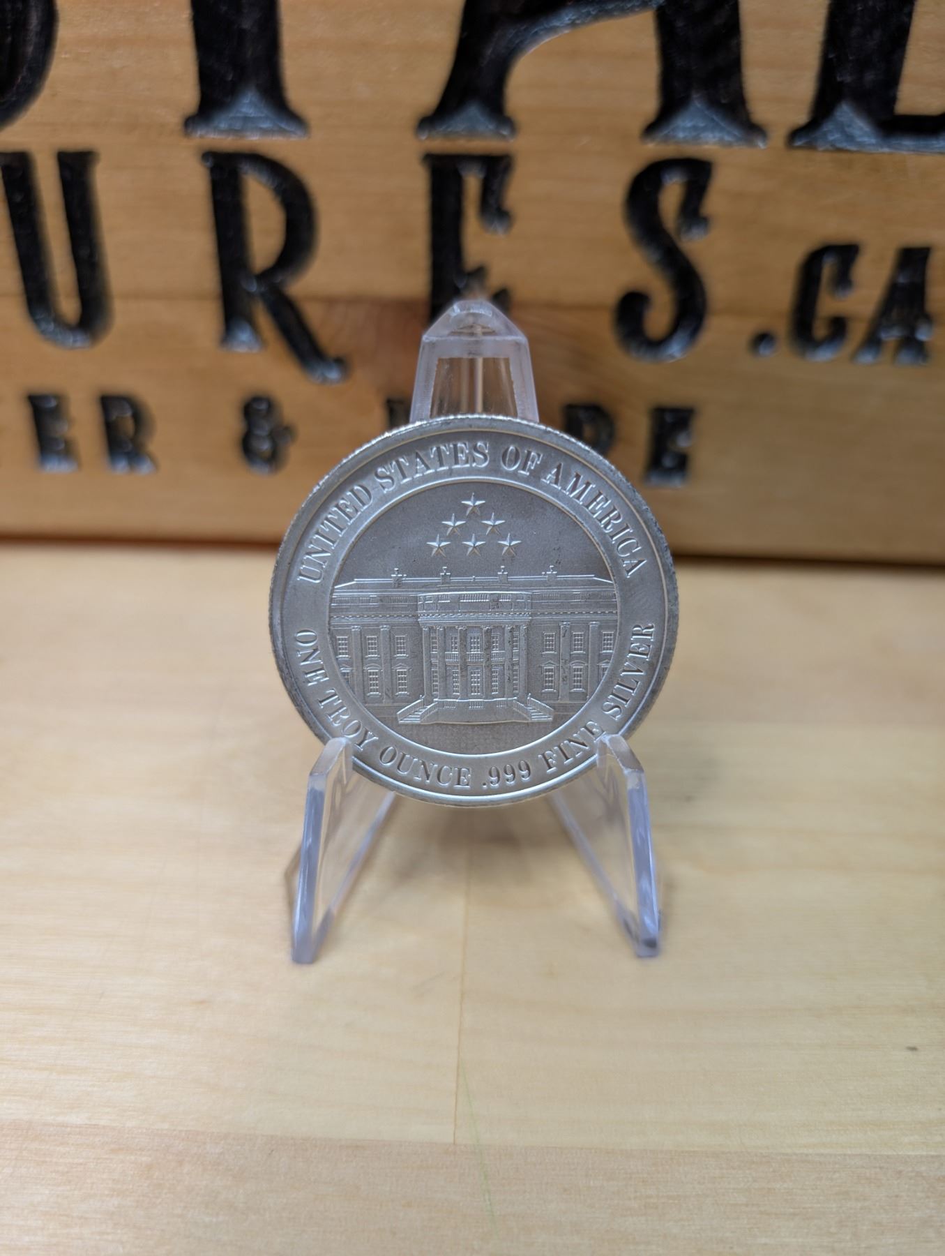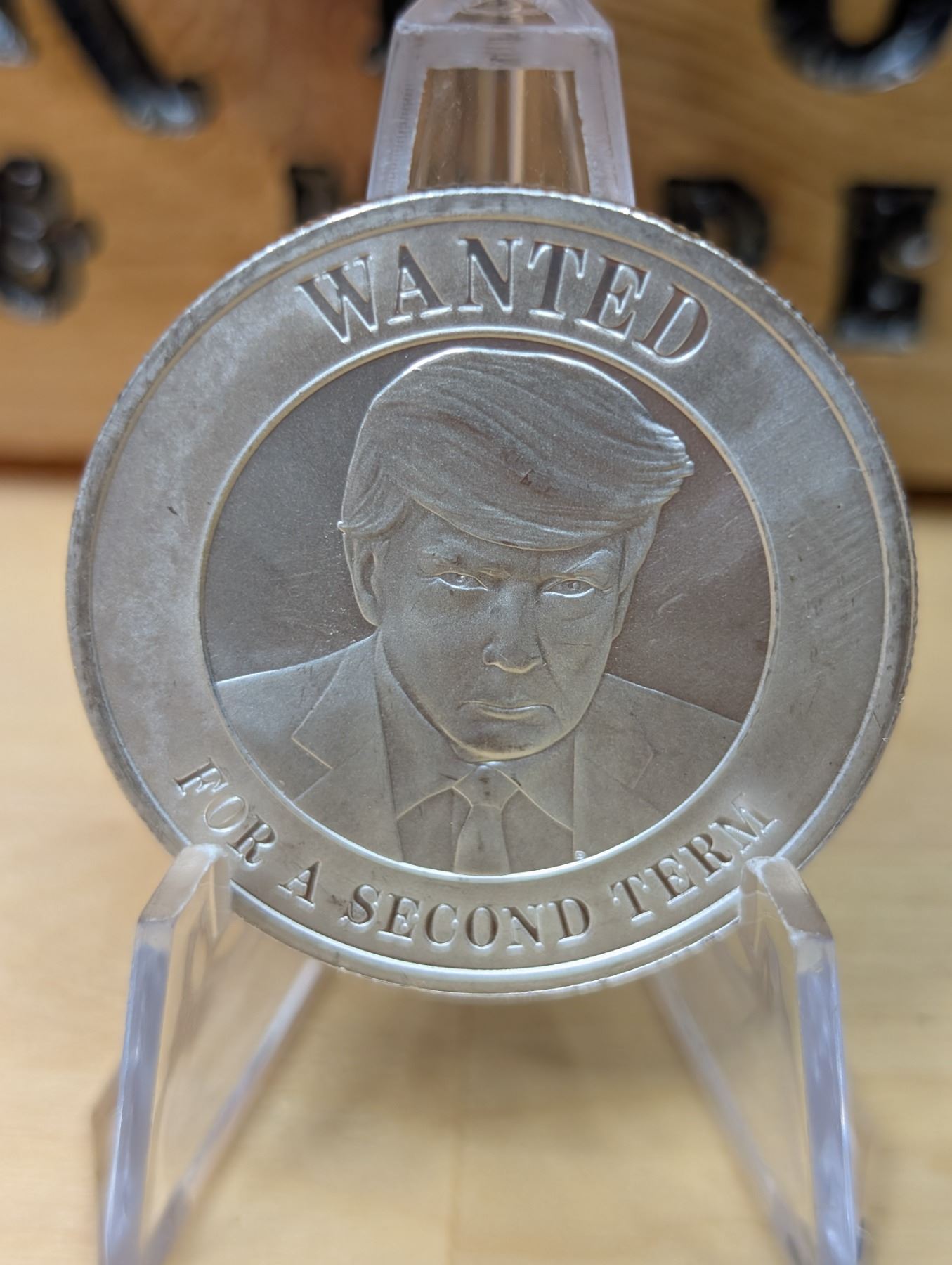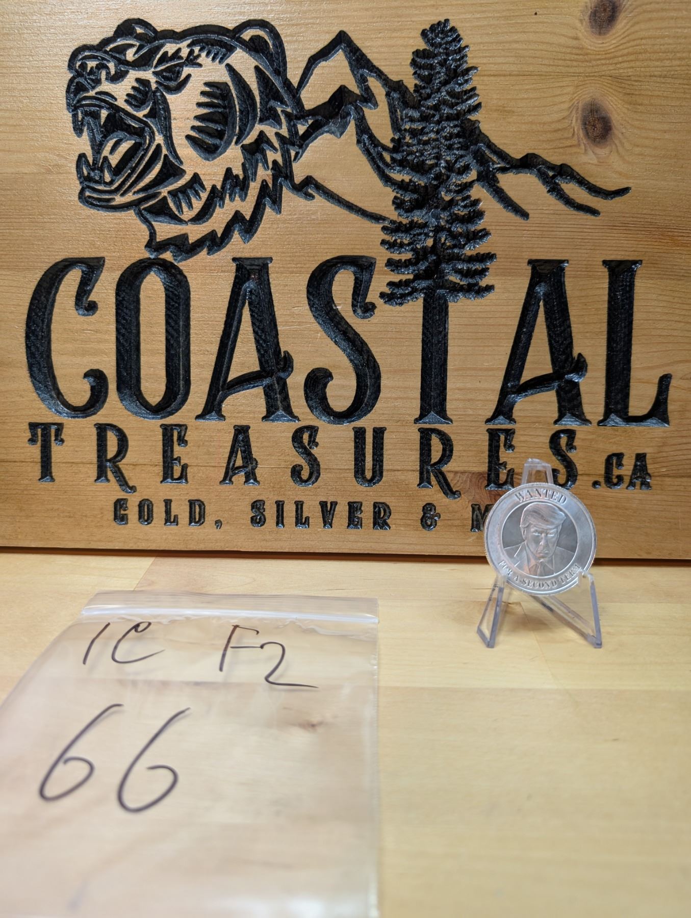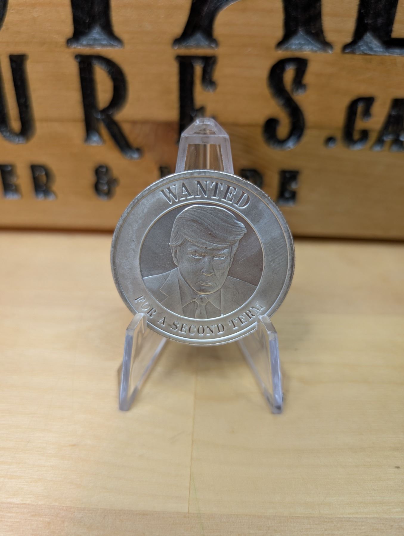 The 1 oz Trump Wanted silver round is made from .999 fine silver and features a design inspired by former U.S. President Donald Trump, often with a "Wanted" theme, mimicking a traditional wanted poster. These rounds are popular with collectors, particularly those with an interest in political memorabilia or Trump-related items. Its value is based on the current silver price and collector demand.