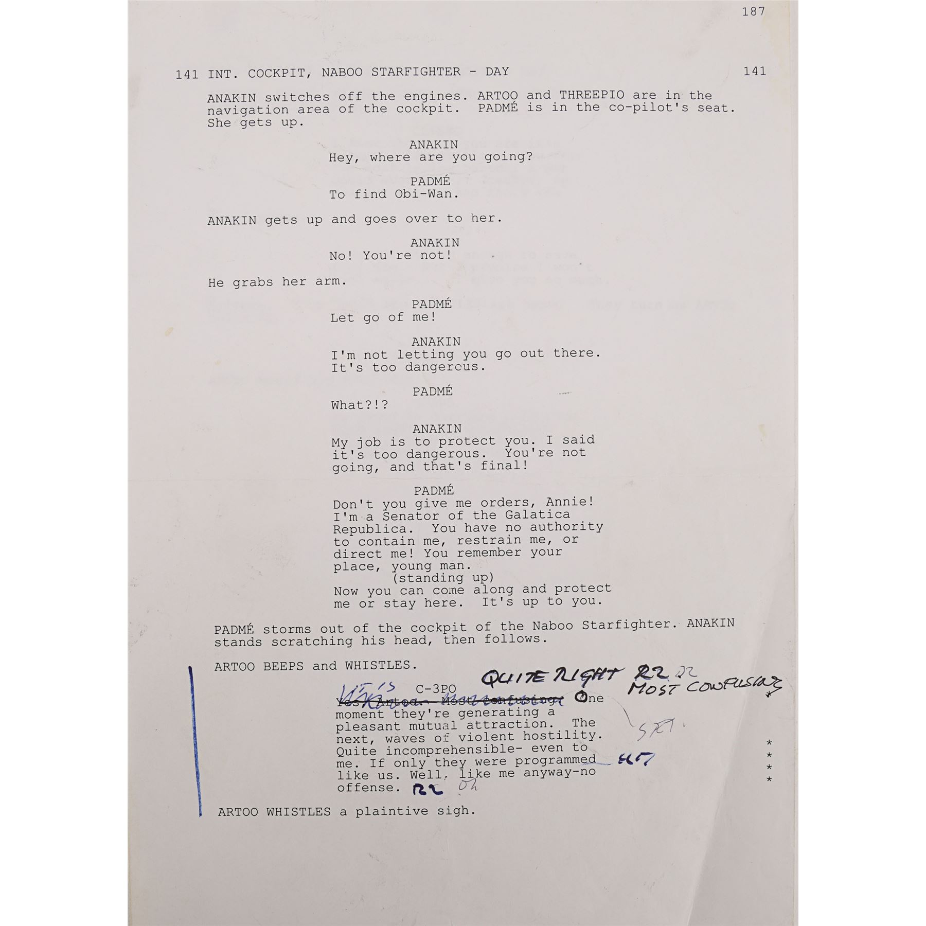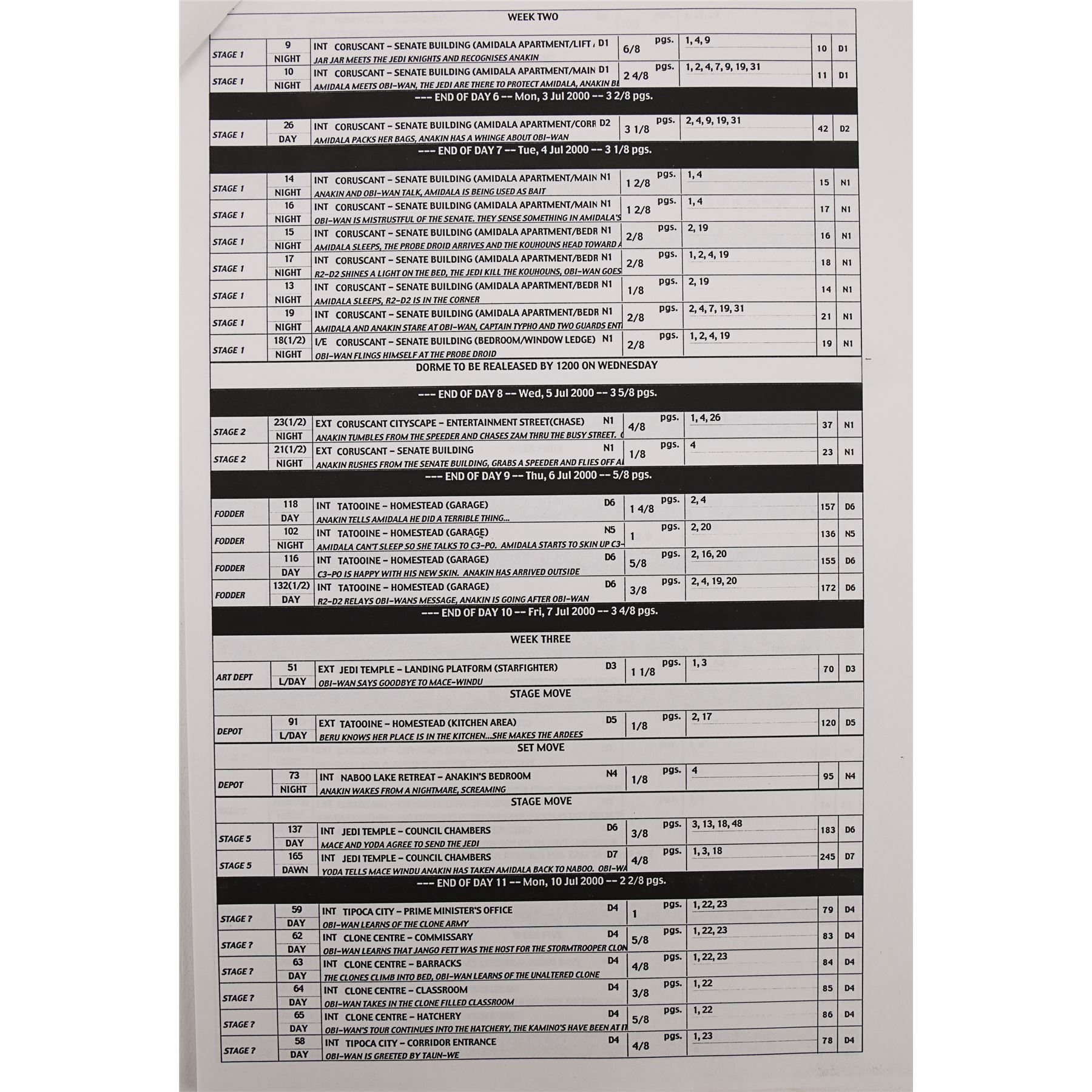 STAR WARS: ATTACK OF THE CLONES (2002) - Anthony Daniels Collection: Anthony Daniels' Revised Script Pages with Handwritten Dialogue Changes and Shooting Schedules