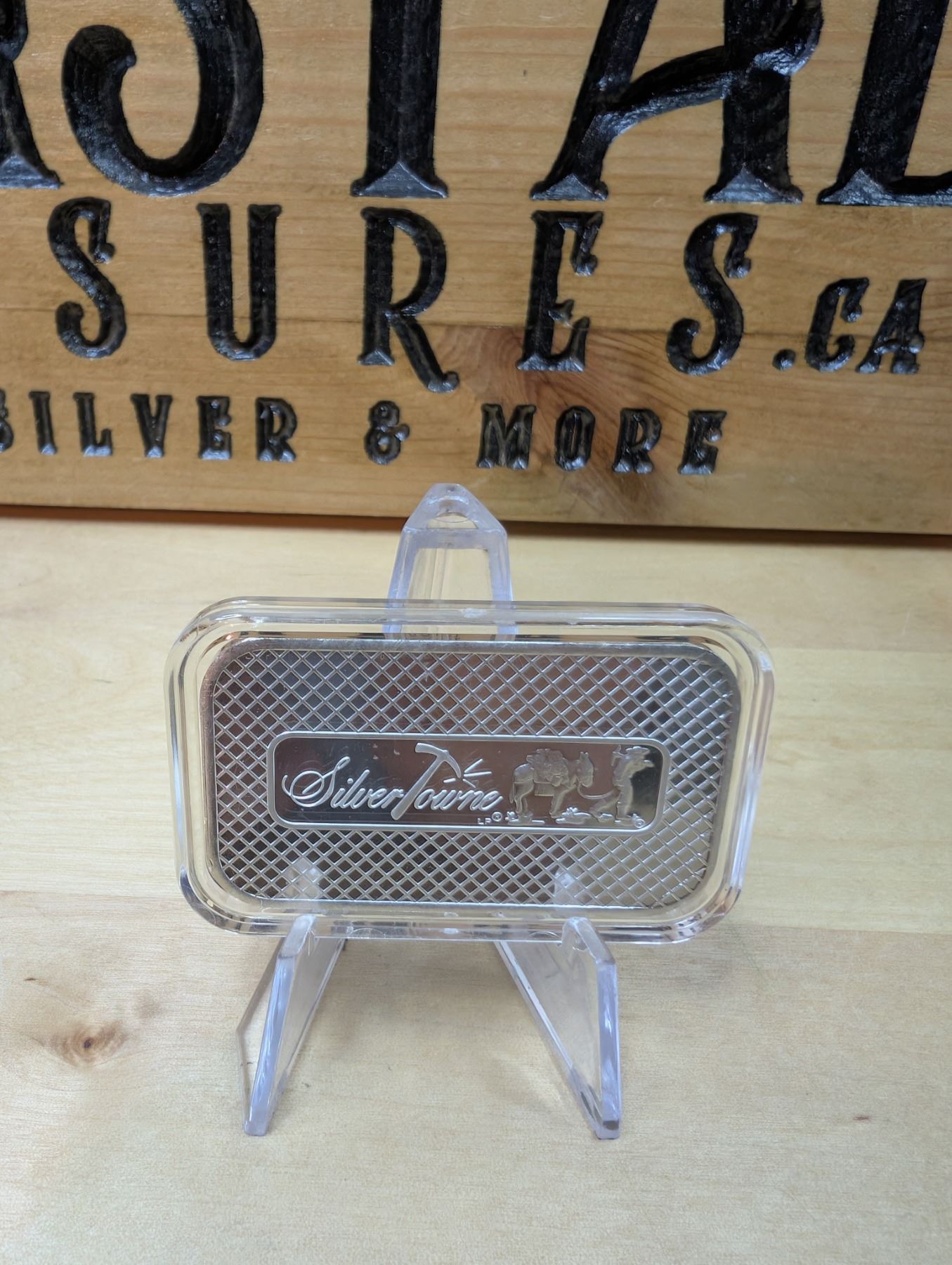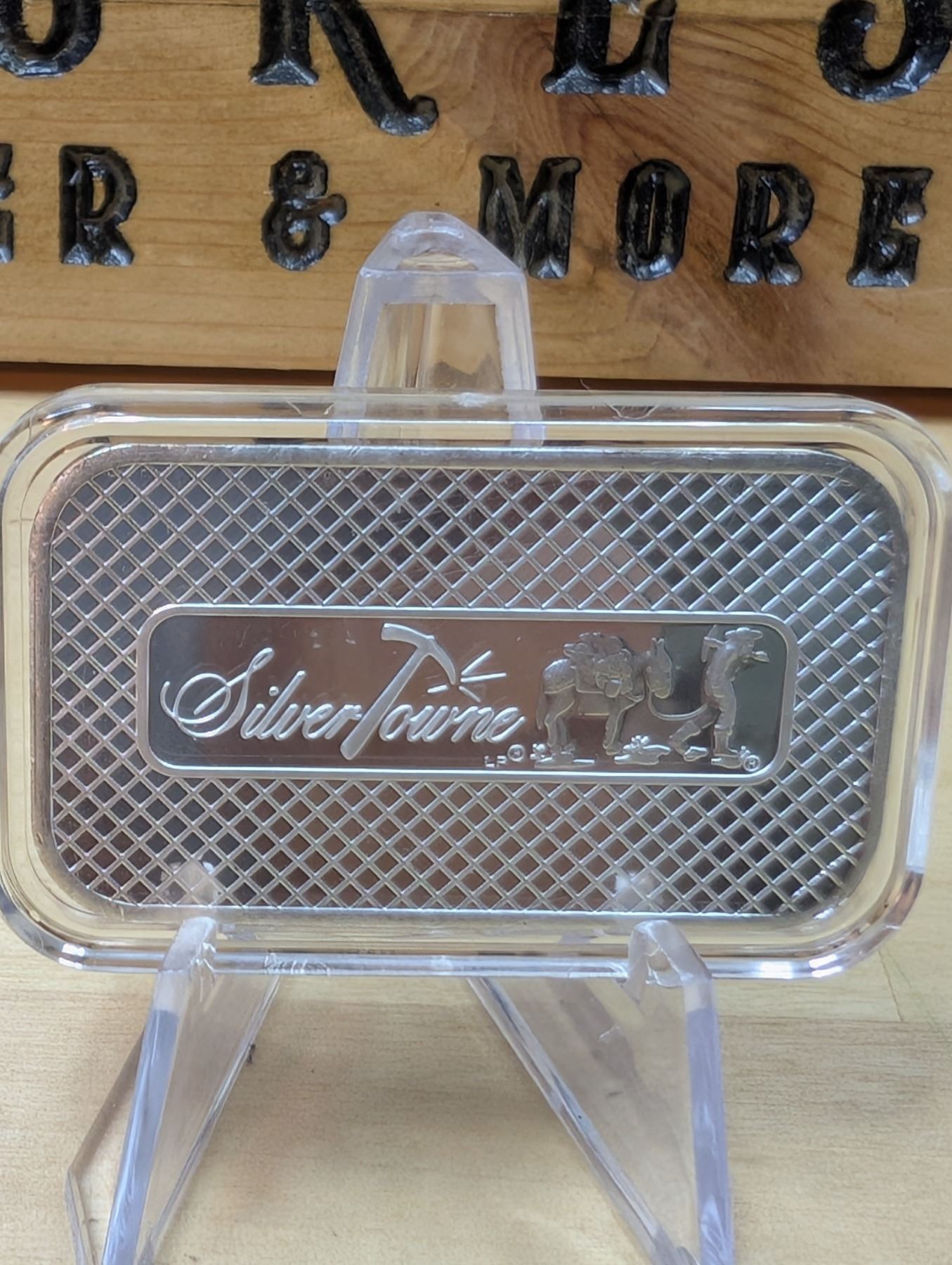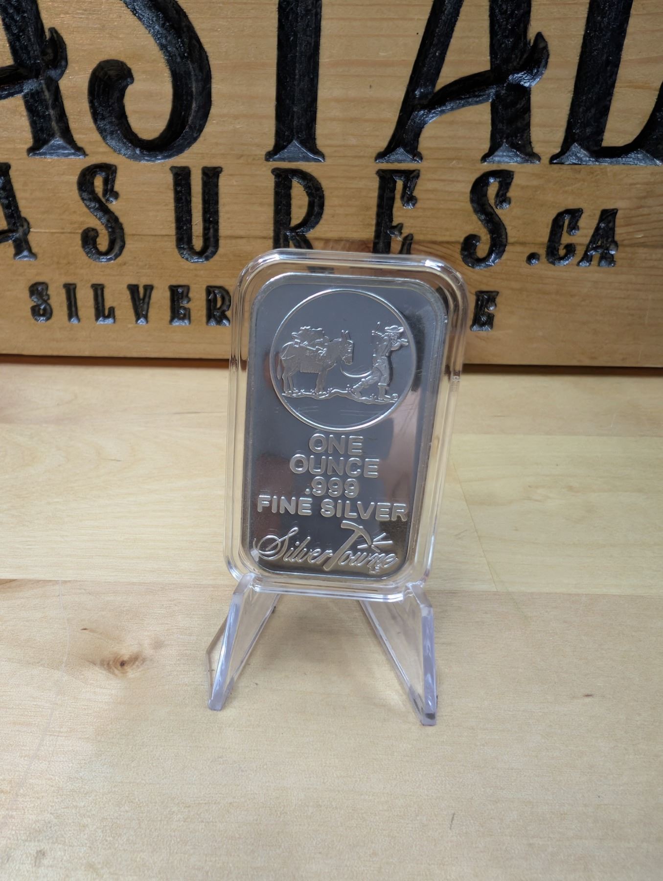 The 1 oz Silvertowne Prospector Silver Bar is a silver bar produced by Silvertowne, a well-known private mint. It contains 1 ounce of .999 fine silver and typically features a design of a prospector from the Gold Rush era, with imagery such as a pickaxe, shovel, or mining pan, representing the history of gold and silver mining. These bars are popular among collectors and investors due to their high-quality silver content and the classic, rugged design. Silvertowne bars are recognized for their craftsmanship and are often favored for their investment appeal and collectible value.