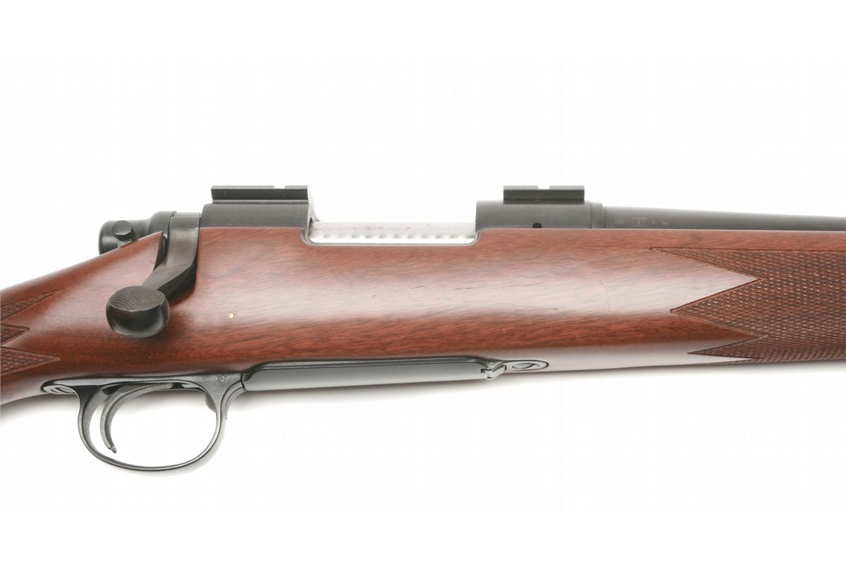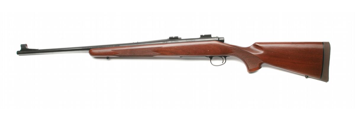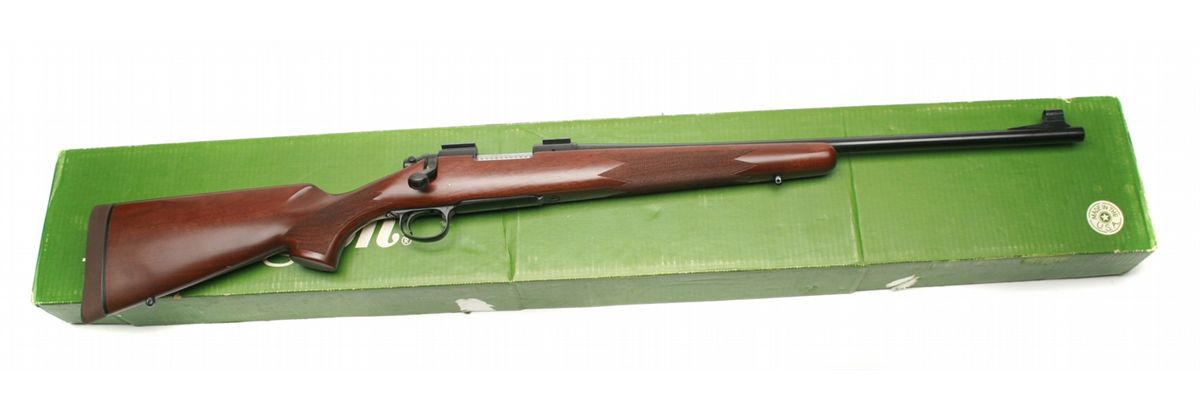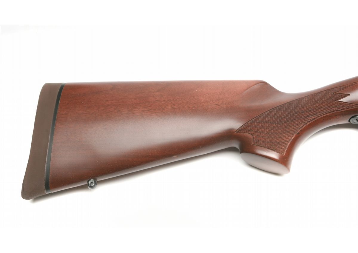 ANIB condition - 22" barrel - retains 99% blue finish - satin finish checkered walnut stock in very good condition with slight handling marks on left buttstock - front hooded fixed blade & rear removed sights - crisp markings on barrel & receiver - bolt action in very good condition - factory drilled & tapped for scope - Weaver two piece bases - hinged floorplate - factory installed swivel studs - recoil pad - yr. mfg: 1981-2005 - factory box - SN C6494841 - est. 500 - 800 - FFL - 25AACGTX031