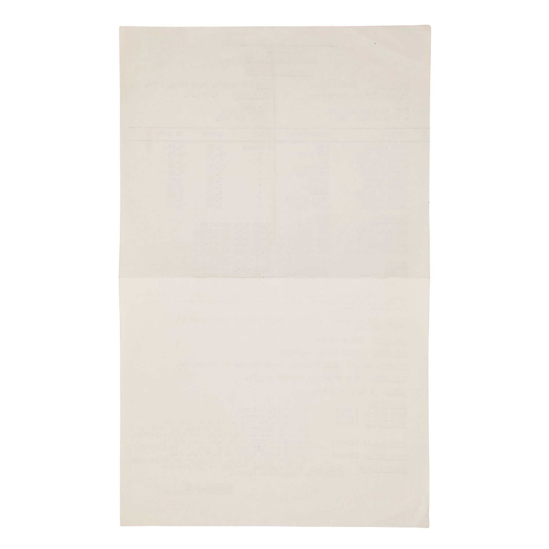 This call sheet is dated "Thursday, June 10th, 1976" and labelled No.58. It features a list of the actors needed for that day of shooting. It has a handwritten correction near the bottom of the page, altering a time. The call sheet has been folded into quarters. Dimensions: 33 cm x 20 cm (13" x 7 3/4")