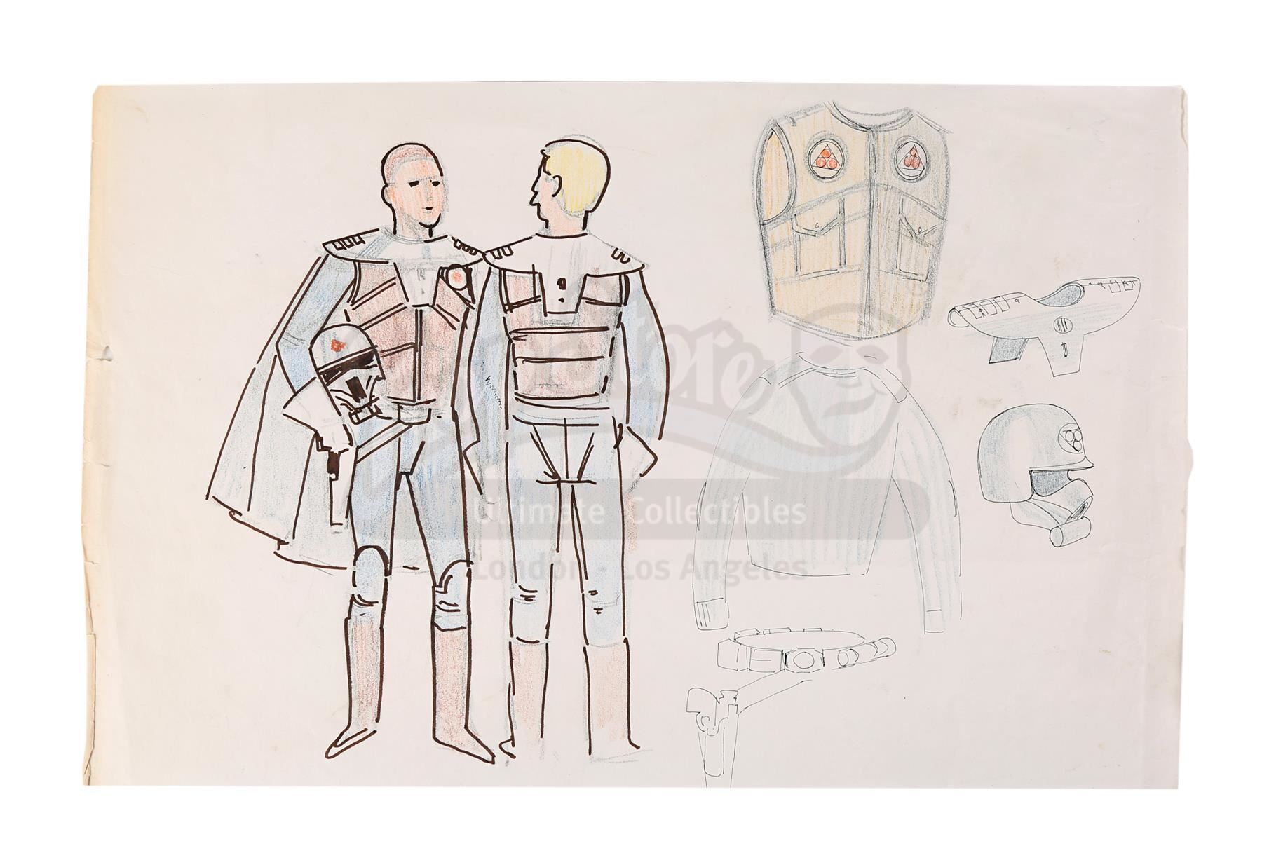 Lot #679 - STAR WARS: A NEW HOPE (1977) - Hand-Drawn Early Rebel Soldier Concept by John Mollo