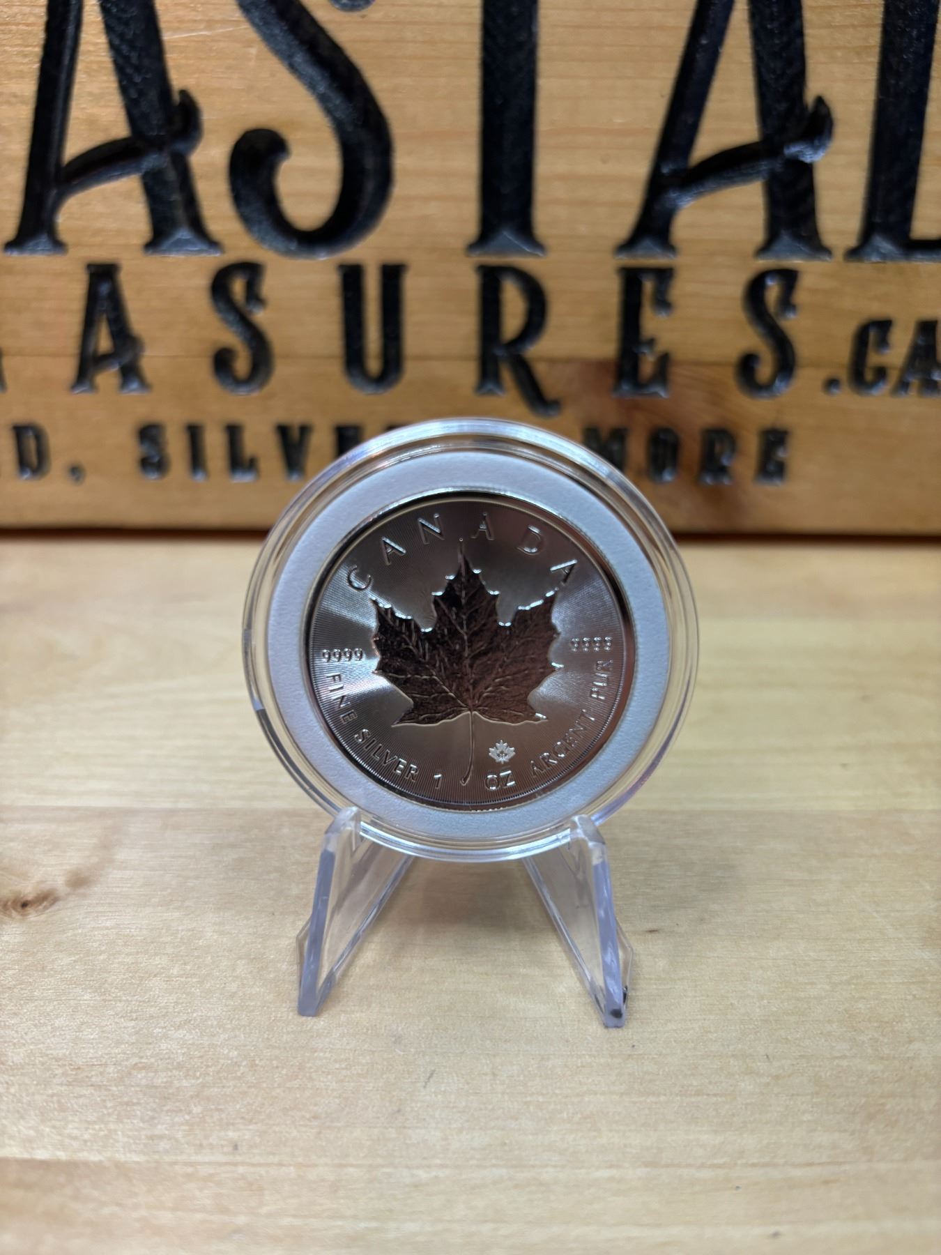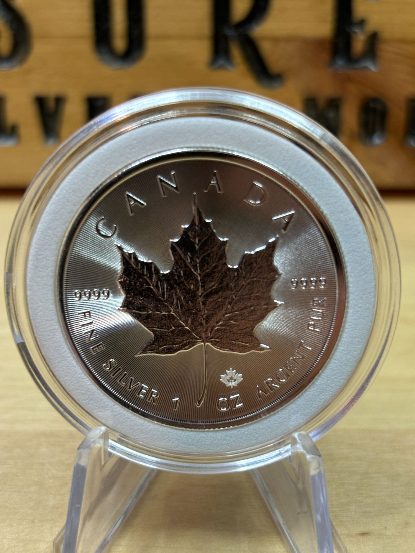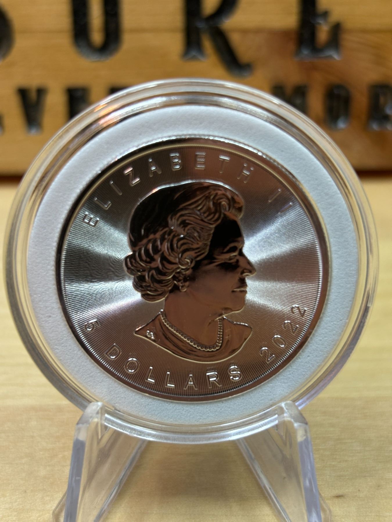 The 2022 1 oz Canadian Silver Maple Leaf is a .9999 fine silver coin minted by the Royal Canadian Mint. It features the iconic maple leaf on the reverse, with enhanced security features such as micro-engraved radial lines. The obverse showcases the new effigy of King Charles III, following the passing of Queen Elizabeth II, along with a face value of 5 Canadian dollars. Known for its high purity and craftsmanship, this coin is a favorite among collectors and investors.