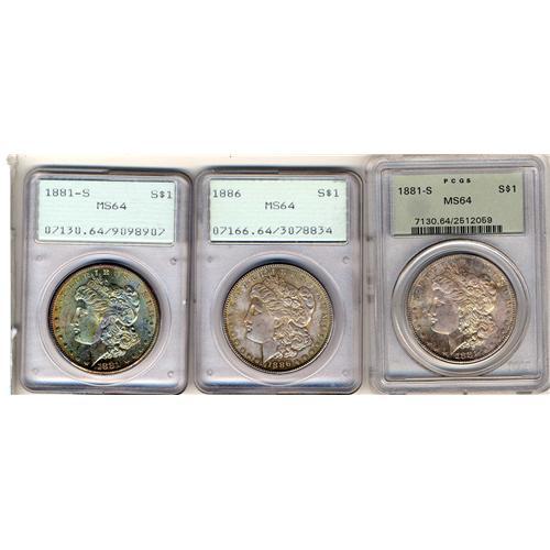 Lot 68 - Lot of Three Mixed Dates Morgan Dollar PCGS MS64