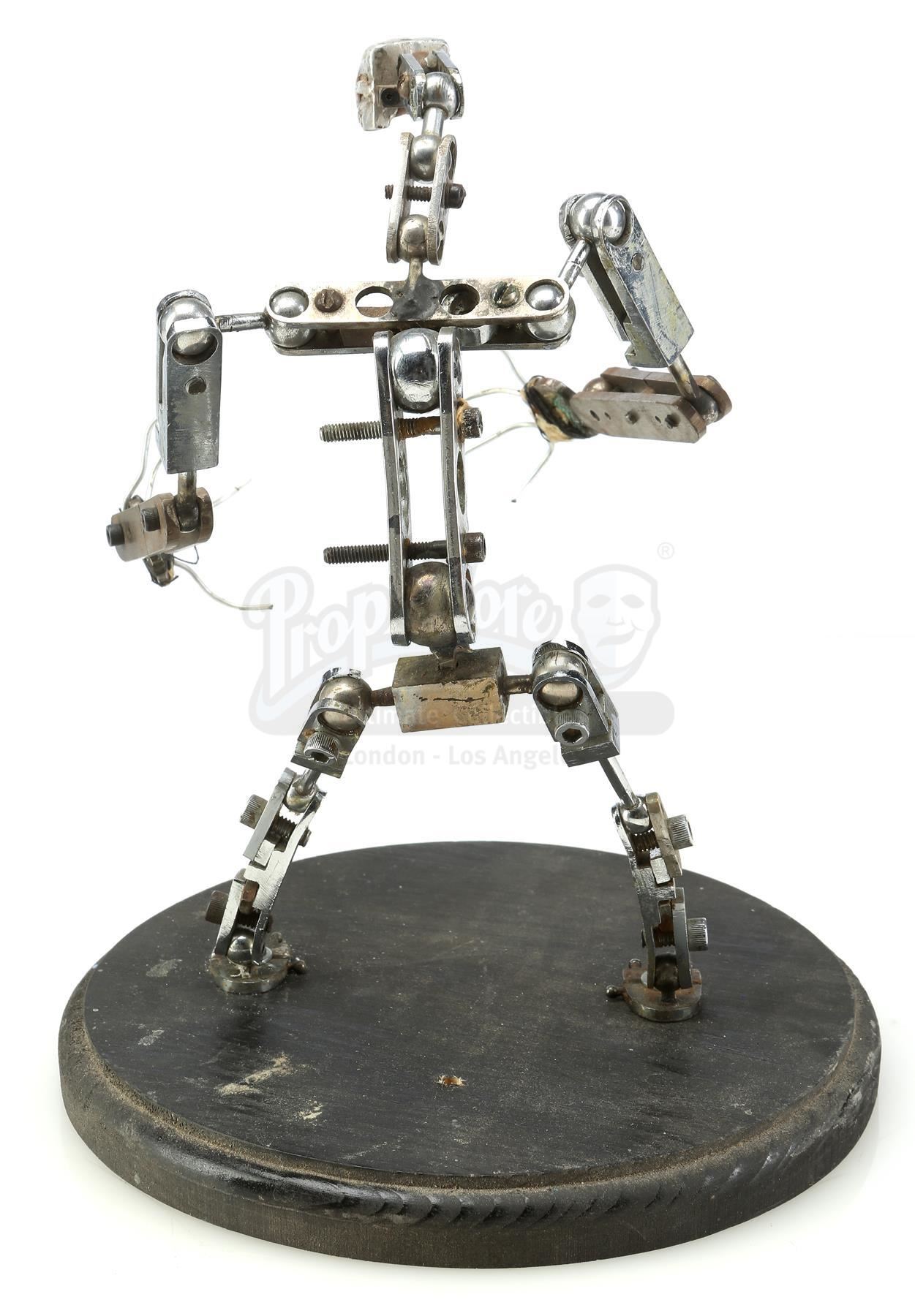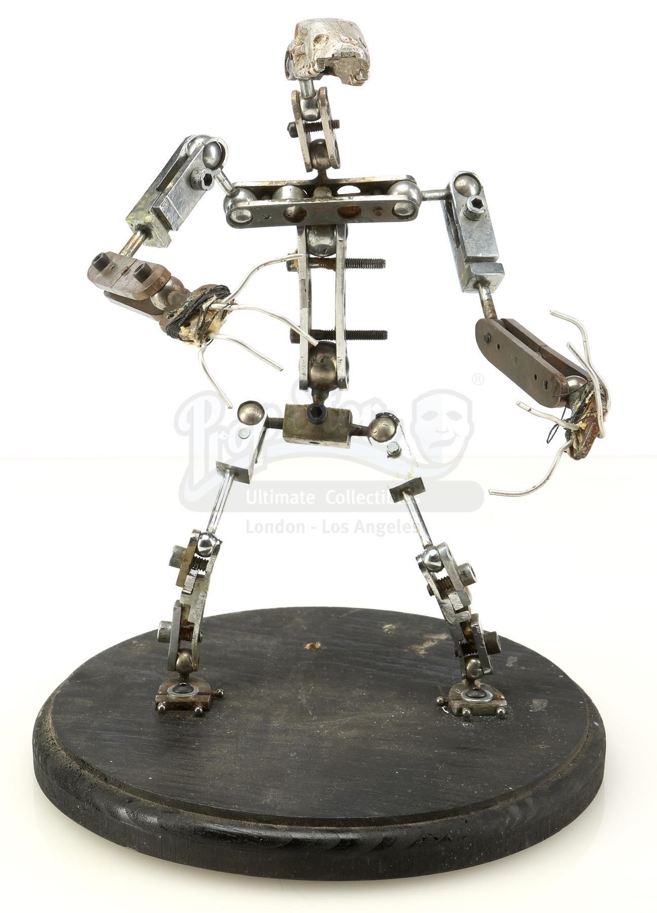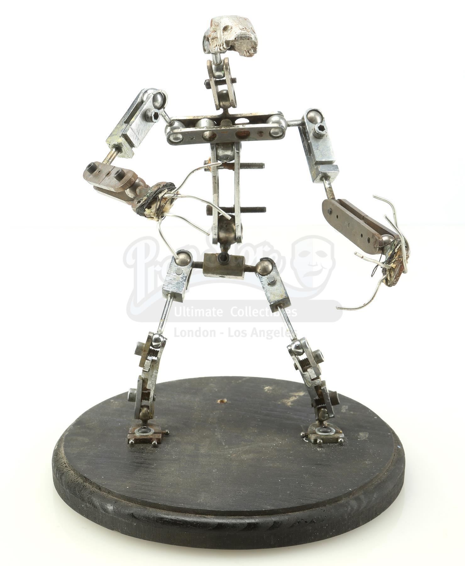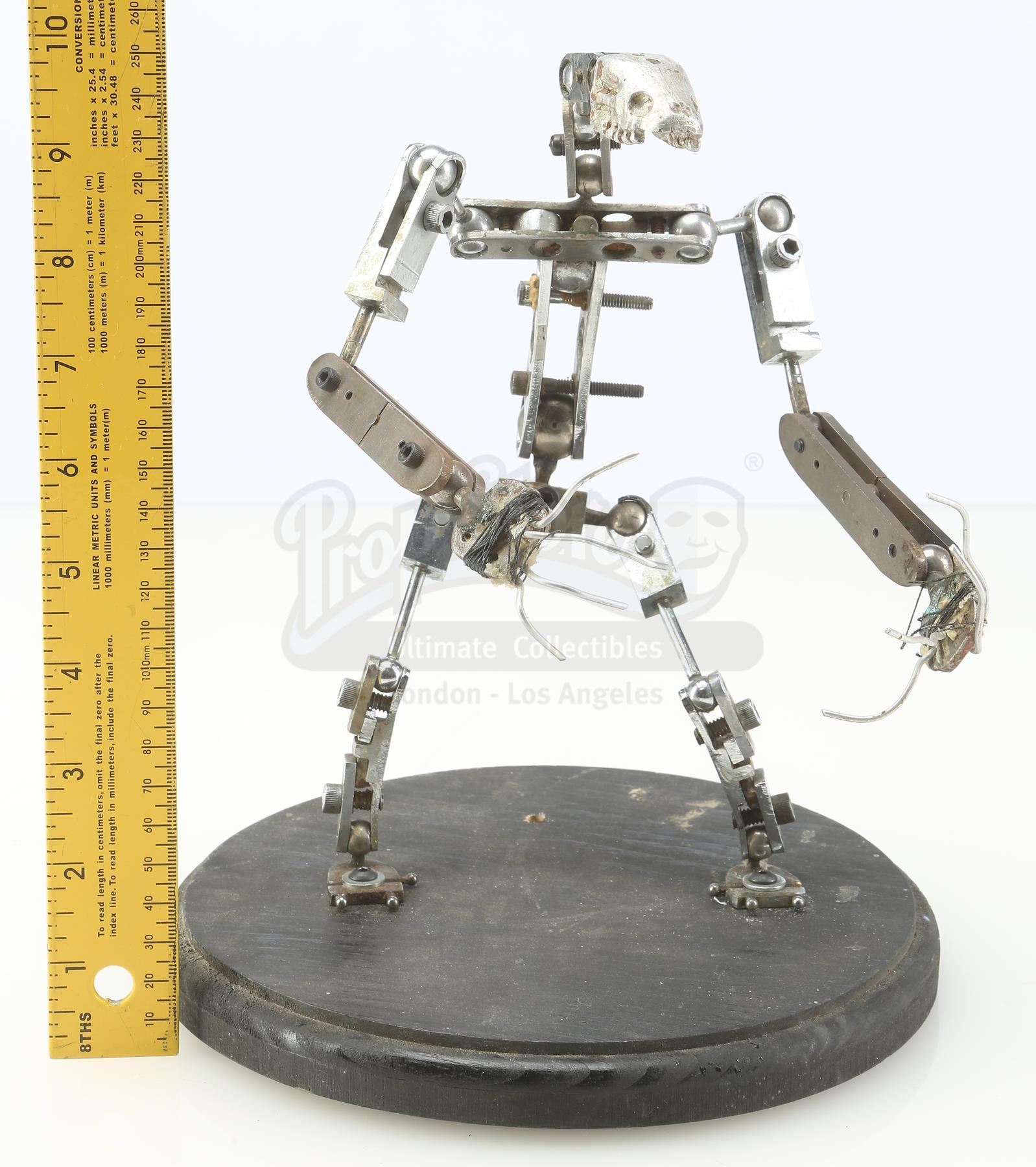 This custom-fabricated metal armature for the principal chess piece puppet features wire-wrapped claws and is mounted to a black wood display base. It is in good overall condition with rust throughout and some stains to the wood. This lot comes from the collection of the film's stop-motion animator and miniature and optical effects artist Phil Tippett. Includes a letter of authenticity from Phil Tippett.