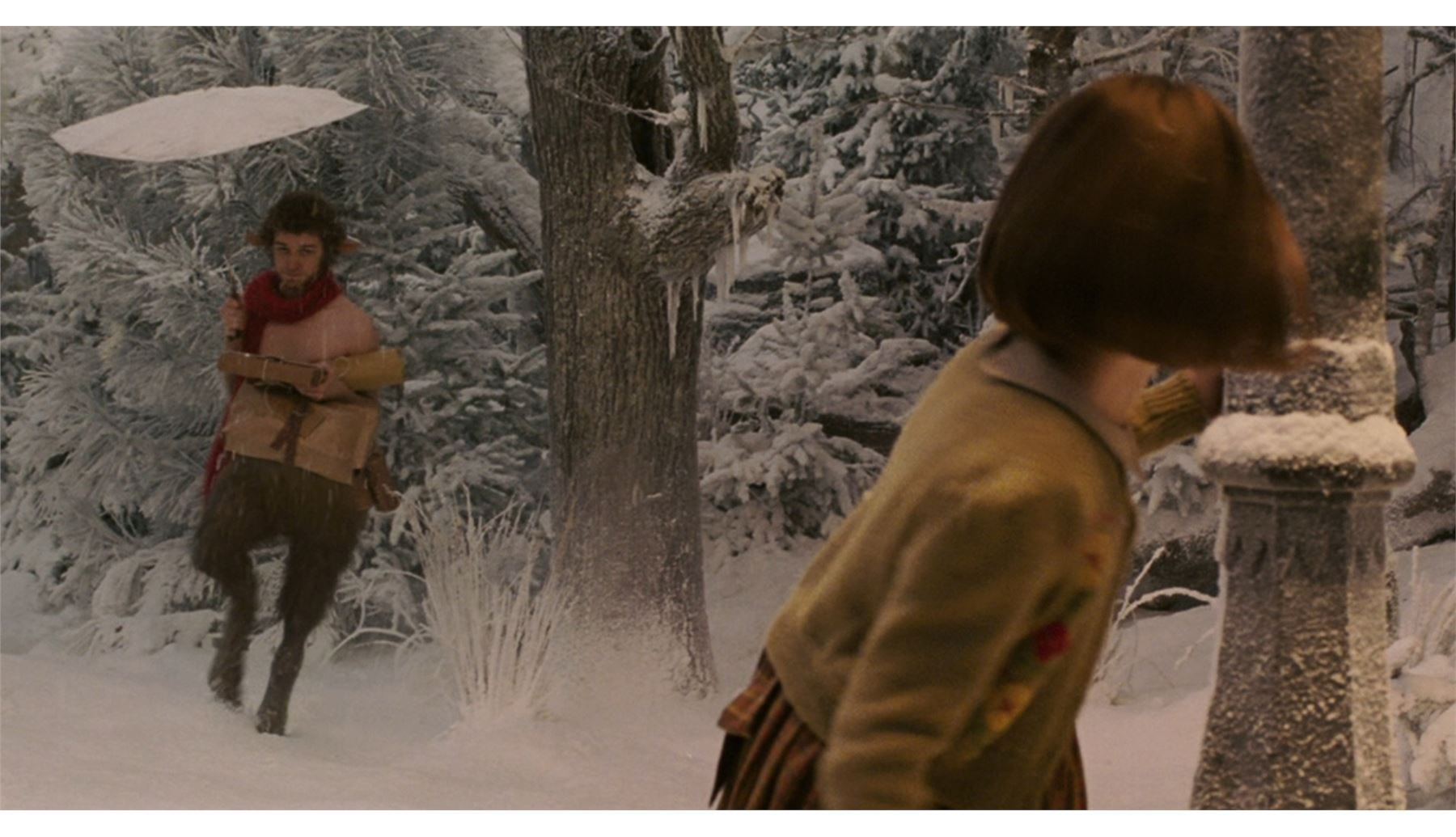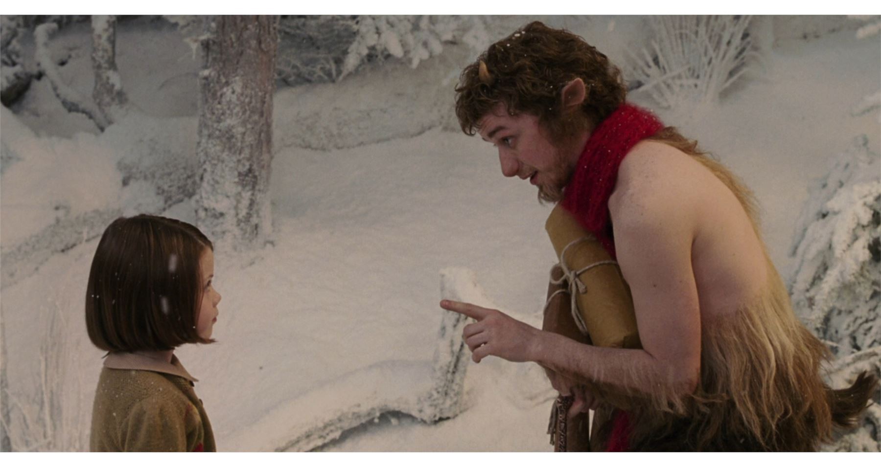 THE CHRONICLES OF NARNIA: THE LION, THE WITCH AND THE WARDROBE (2005) - Mr. Tumnus' (James McAvoy) Scarf and Packages - Mr. Tumnus' (James McAvoy) scarf and packages from Andrew Adamson's fantasy-adventure film The Chronicles of Narnia: The Lion, the Witch and the Wardrobe. Mr. Tumnus wore his scarf when he carried packages home before meeting Lucy Pevensie (Georgie Henley).