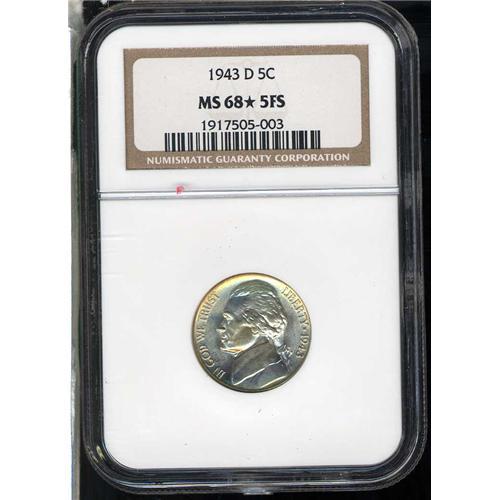 Lot 689 - 1943-D Jefferson Nickel NGC MS68 Star 5FS