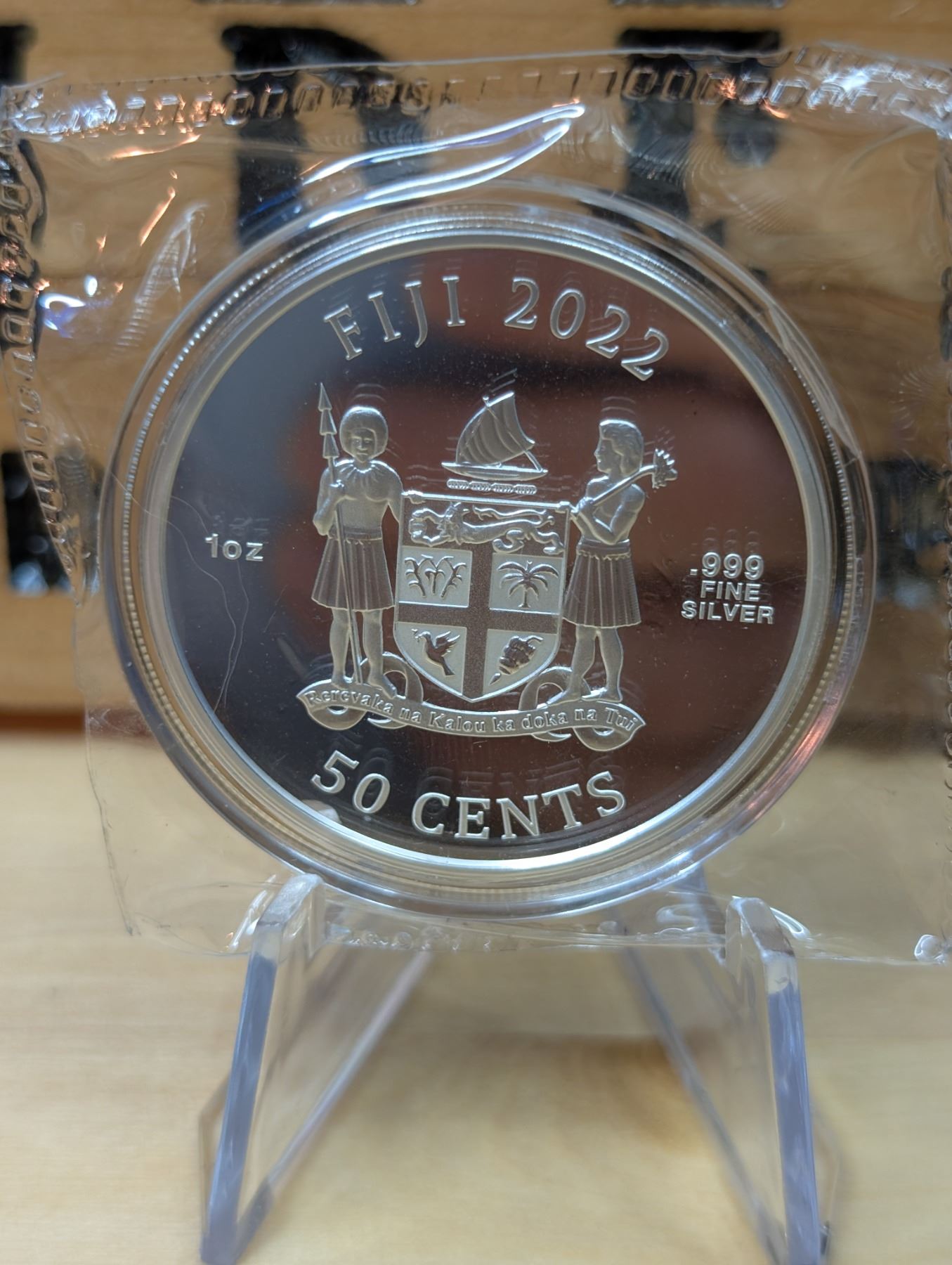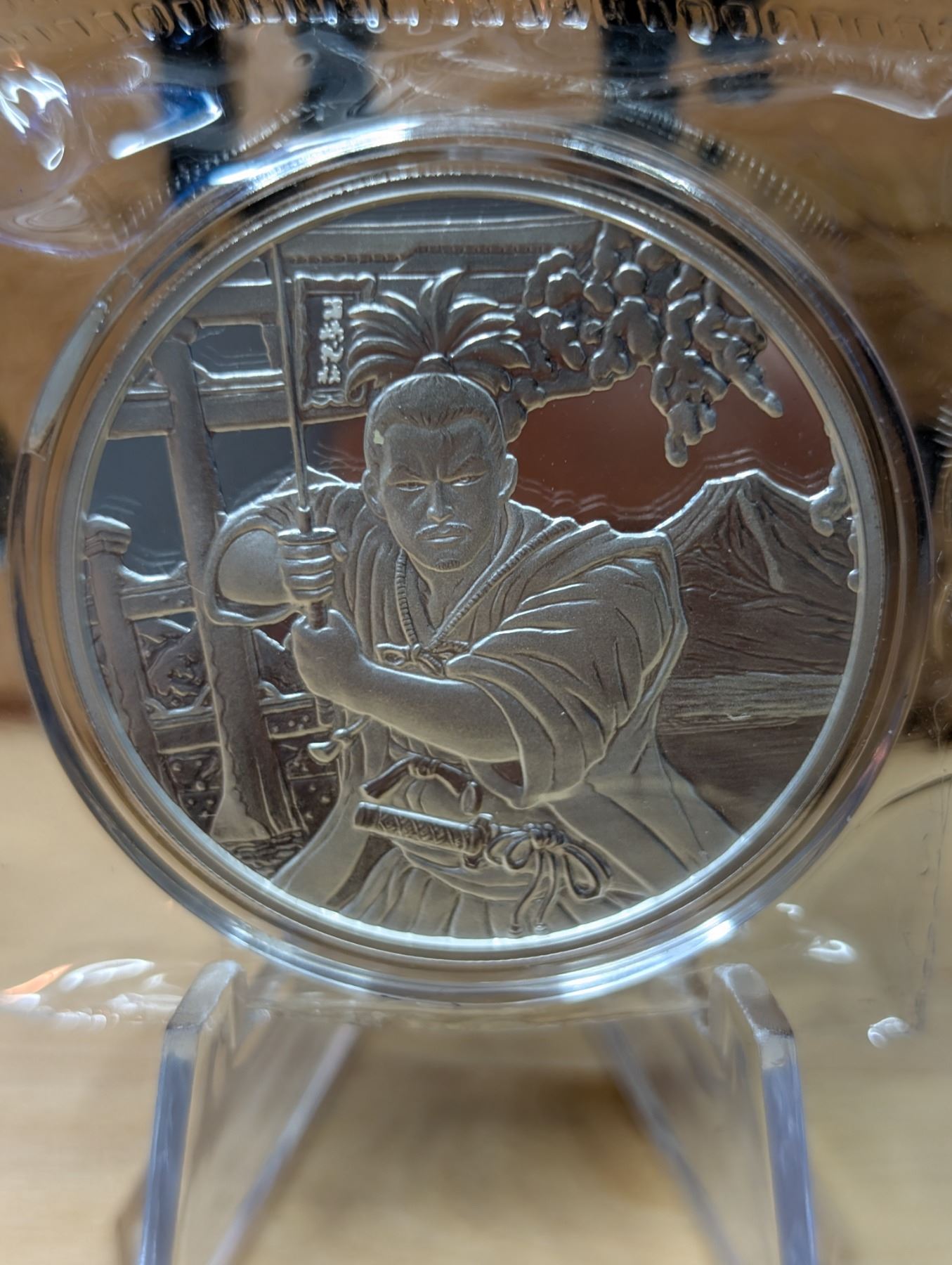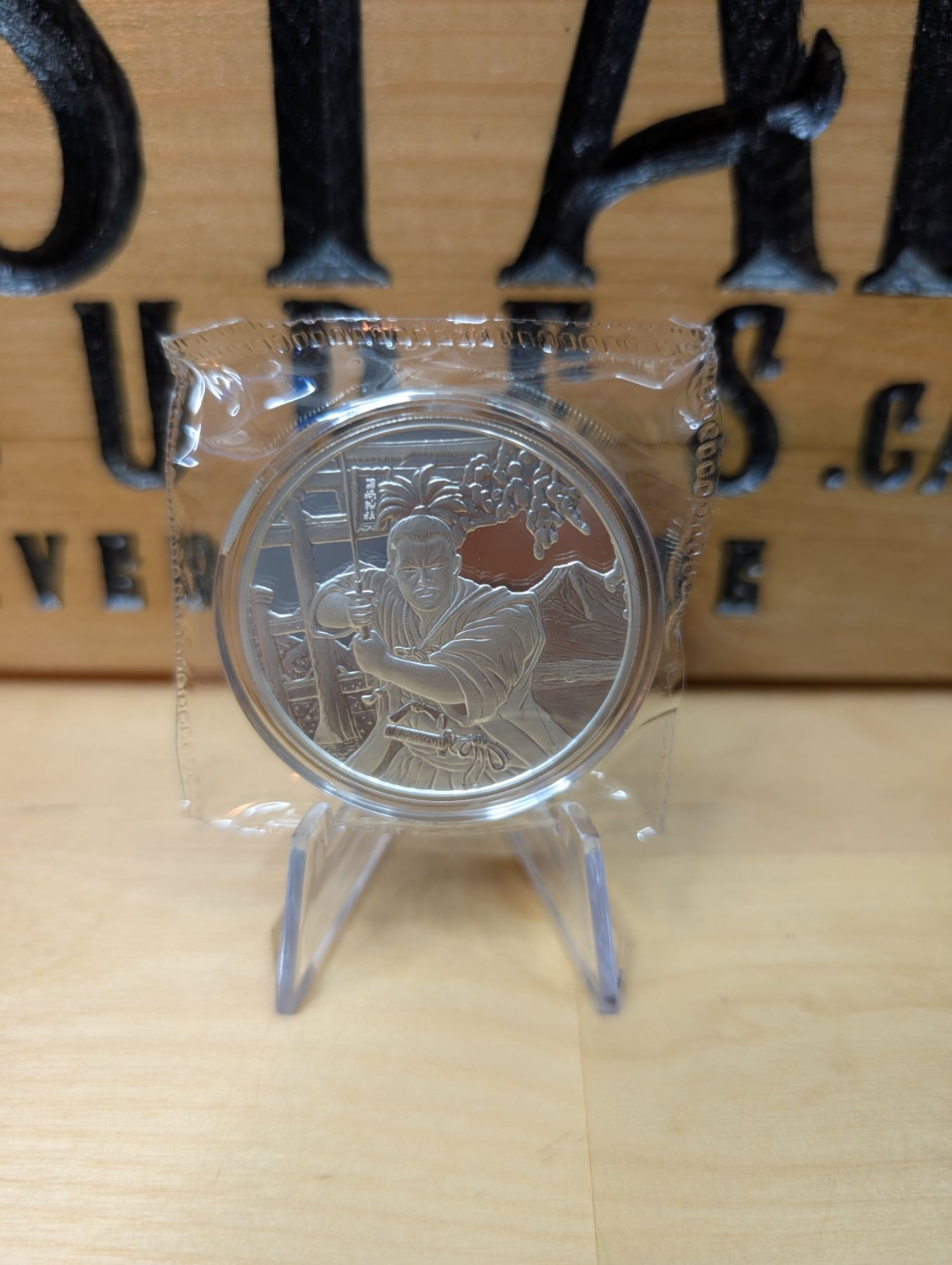 The 1 oz Fiji Ancient Samurai silver coin is made from .999 fine silver and features a design inspired by the legendary Samurai warriors of Japan. Issued by the Fiji Mint, this coin is part of a series honoring historical warriors and is popular with collectors due to its unique design and cultural significance. The value is influenced by the current silver price and collector interest.