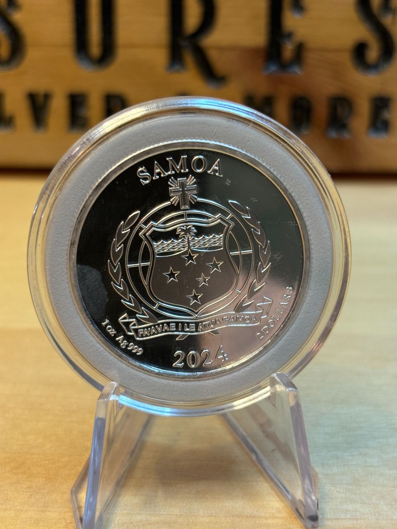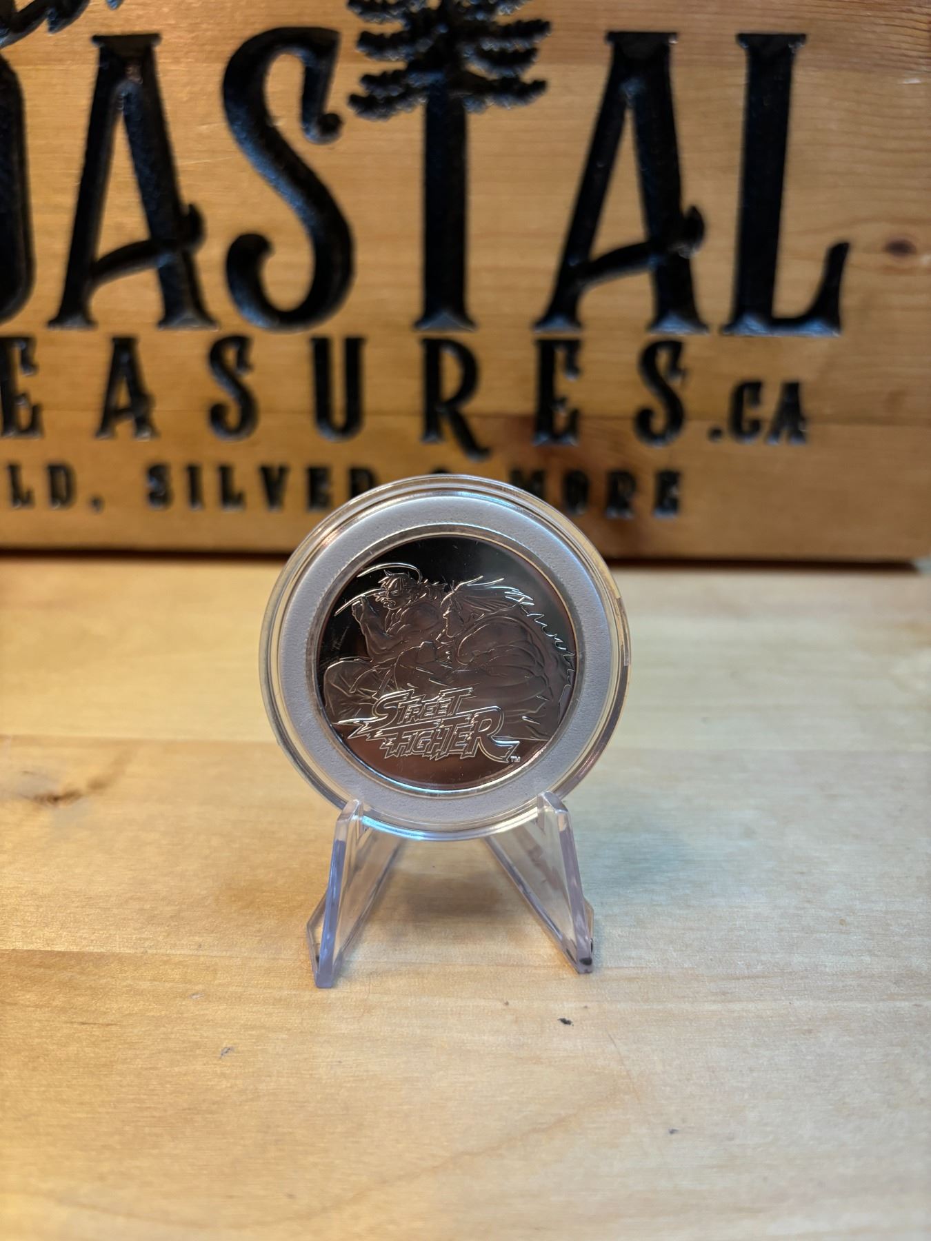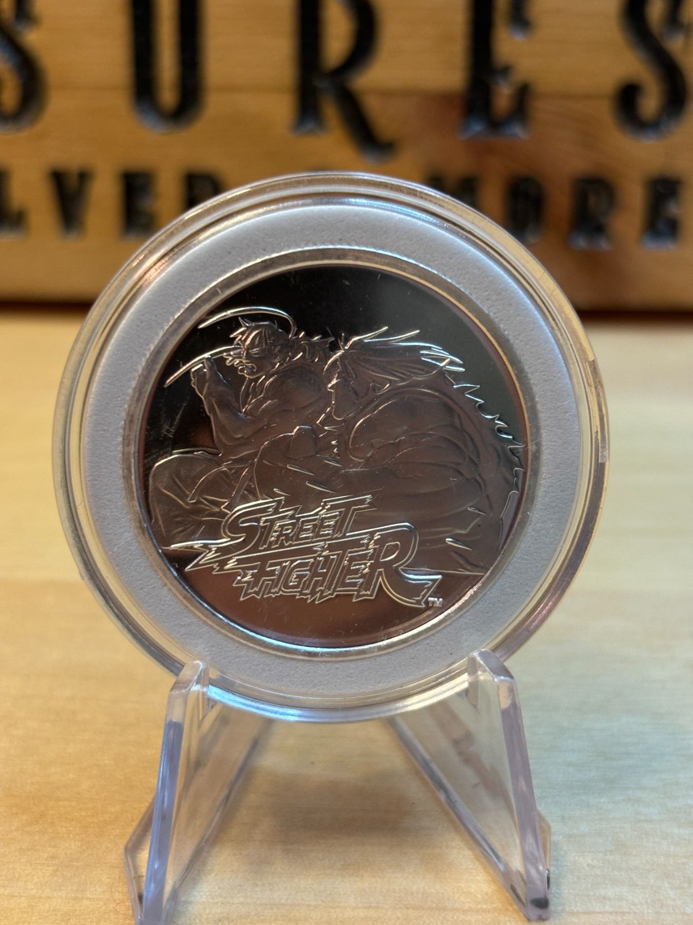 The 1 oz Samoa Street Fighter Silver Coin is a limited-edition collectible coin issued by the Pacific island nation of Samoa, featuring the iconic characters from the famous Street Fighter video game series. Made from 1 ounce of .999 fine silver, the coin showcases vibrant, high-quality designs based on the beloved characters or fighters from the game. The reverse often features a depiction of the character, while the obverse typically shows the the coin's denomination, and minting details. This coin is highly sought after by both Street Fighter fans and collectors, offering both cultural significance and investment value in silver.