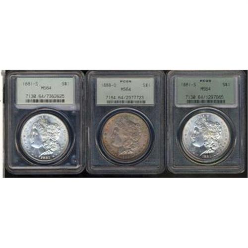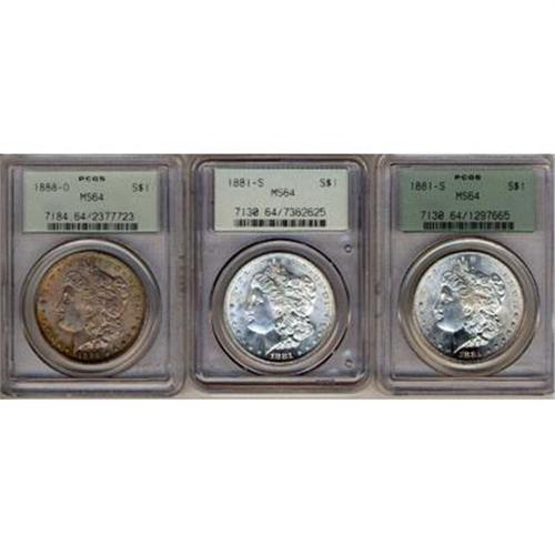 Lot 69 - Lot of Three Morgan Dollars Various Dates PCGS MS64