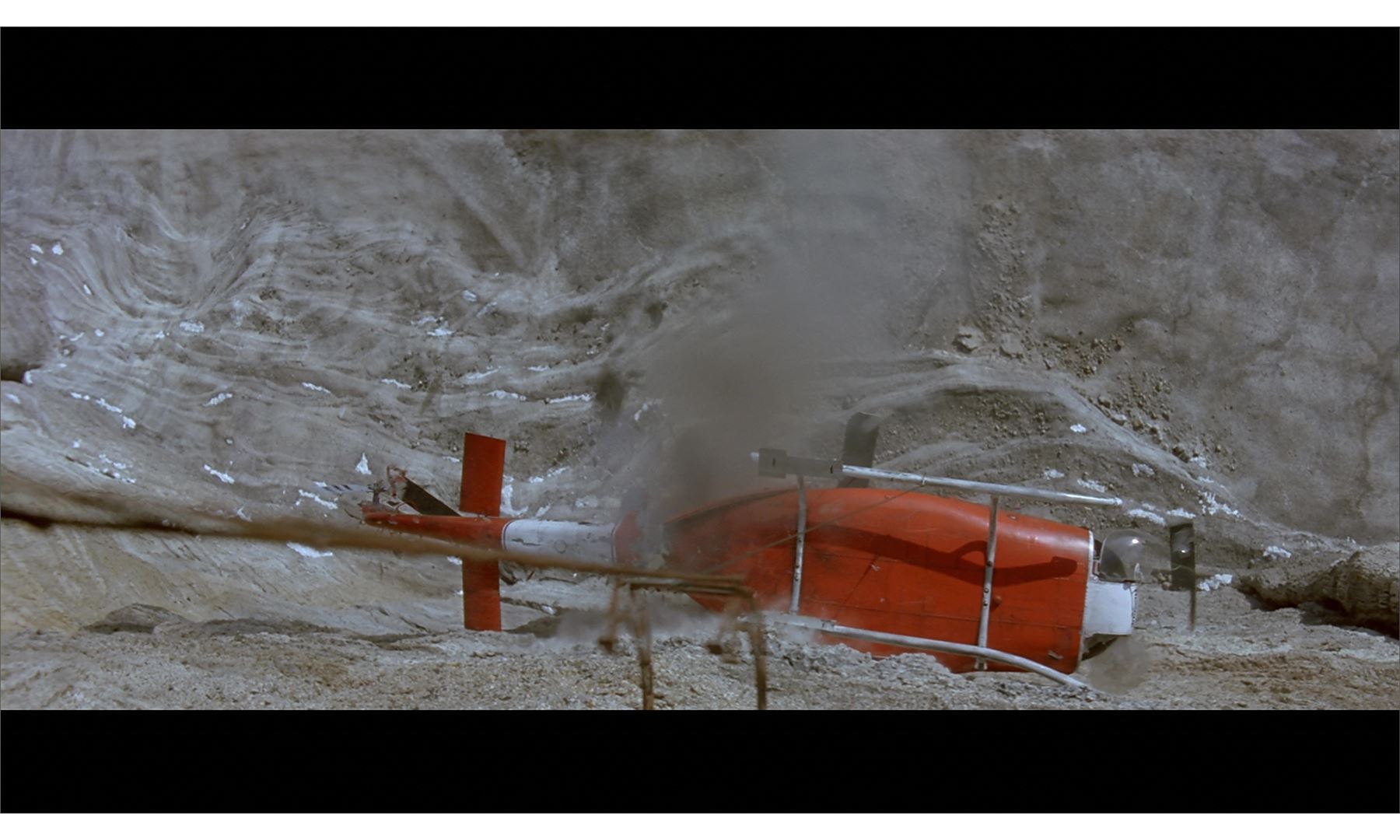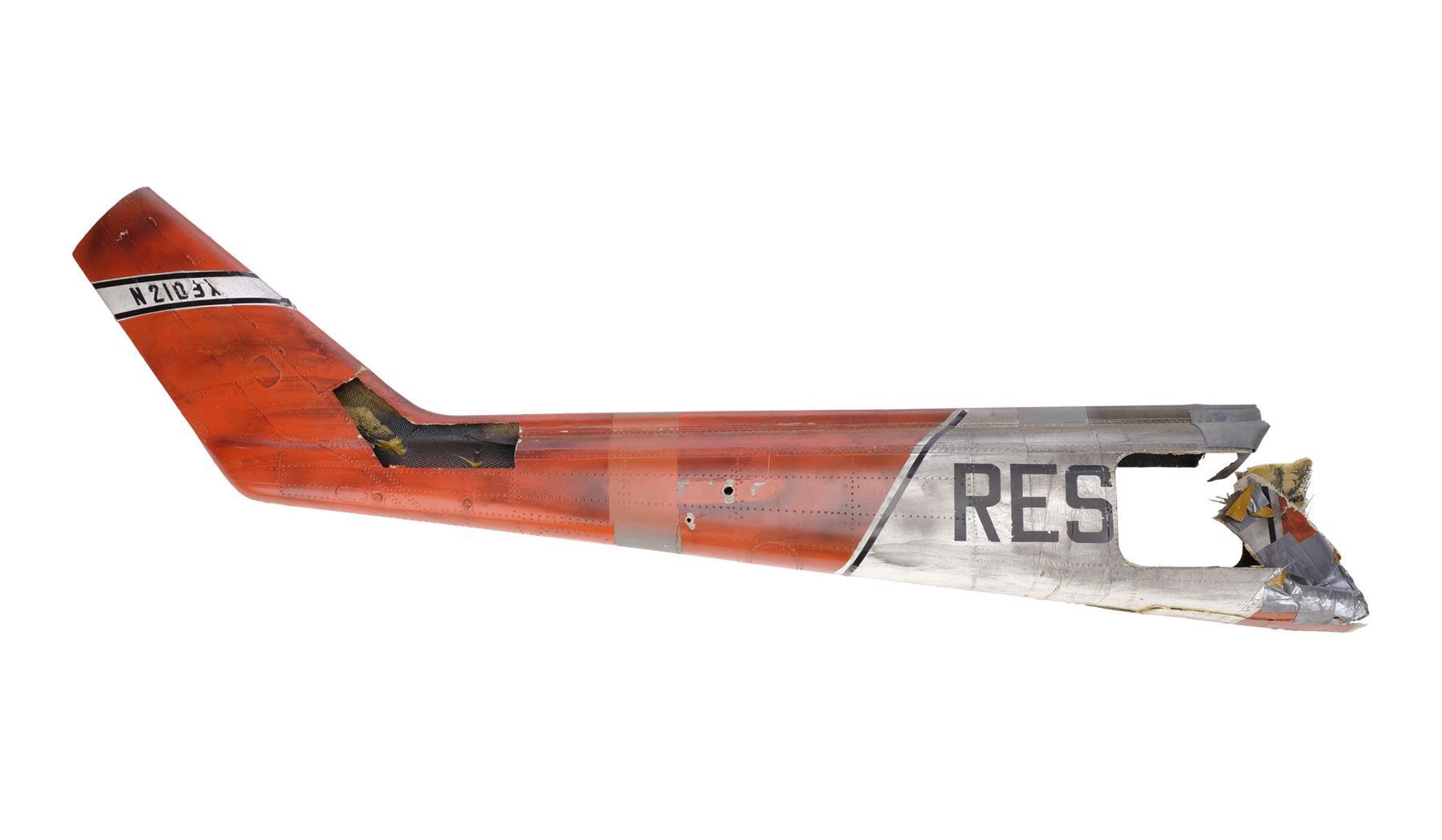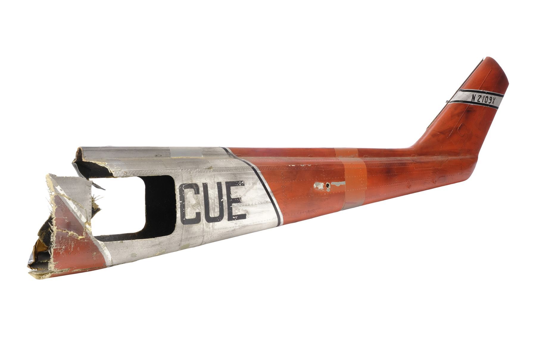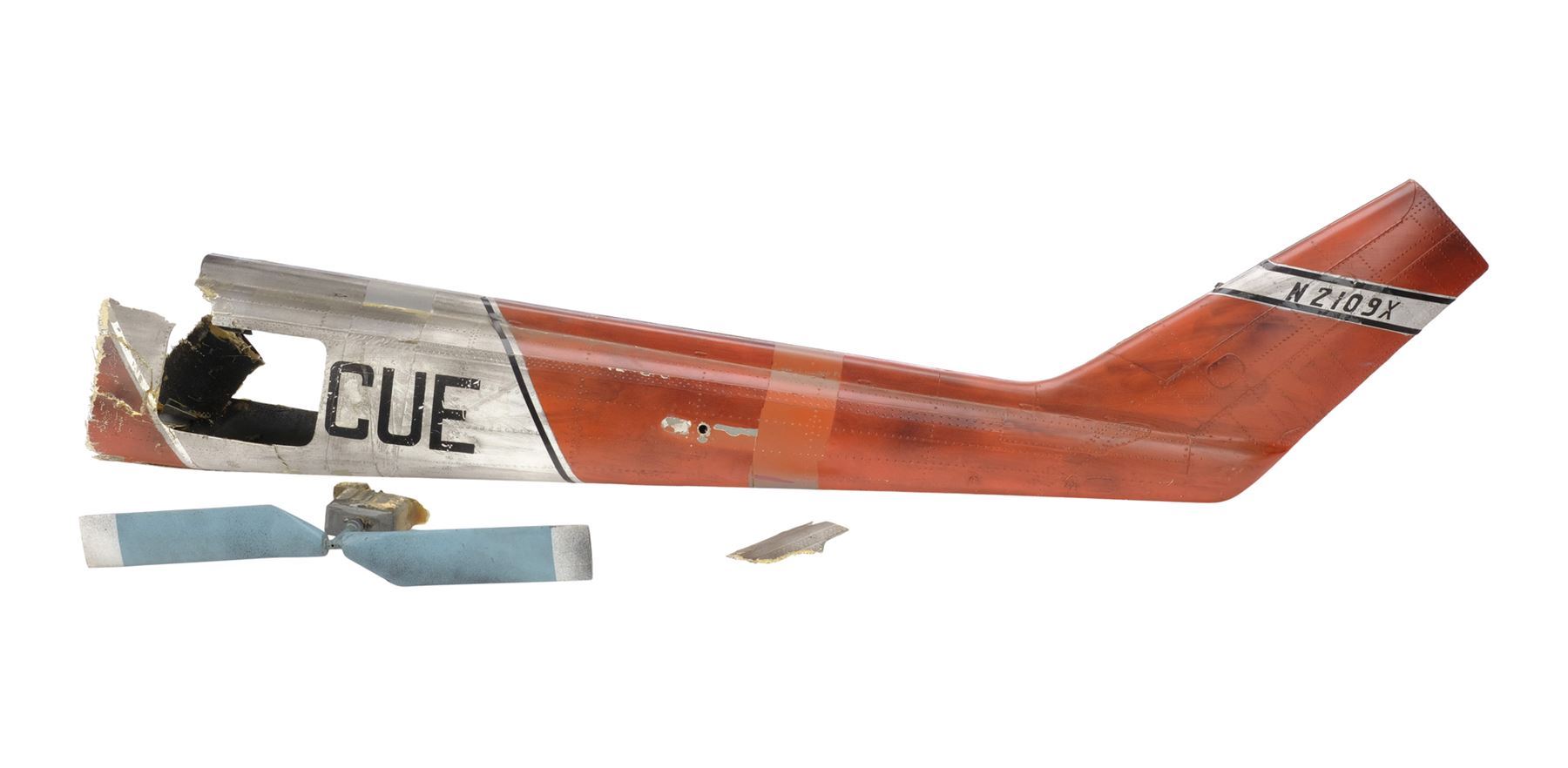 CLIFFHANGER (1993) - Destroyed Rescue Helicopter Model Miniature Tail Section - A destroyed rescue helicopter model miniature tail section from Renny Harlin's action-adventure Cliffhanger. Ranger Gabe Walker (Sylvester Stallone) thwarted Eric Qualen (John Lithgow) by tying a winch line, which resulted in a crash.
