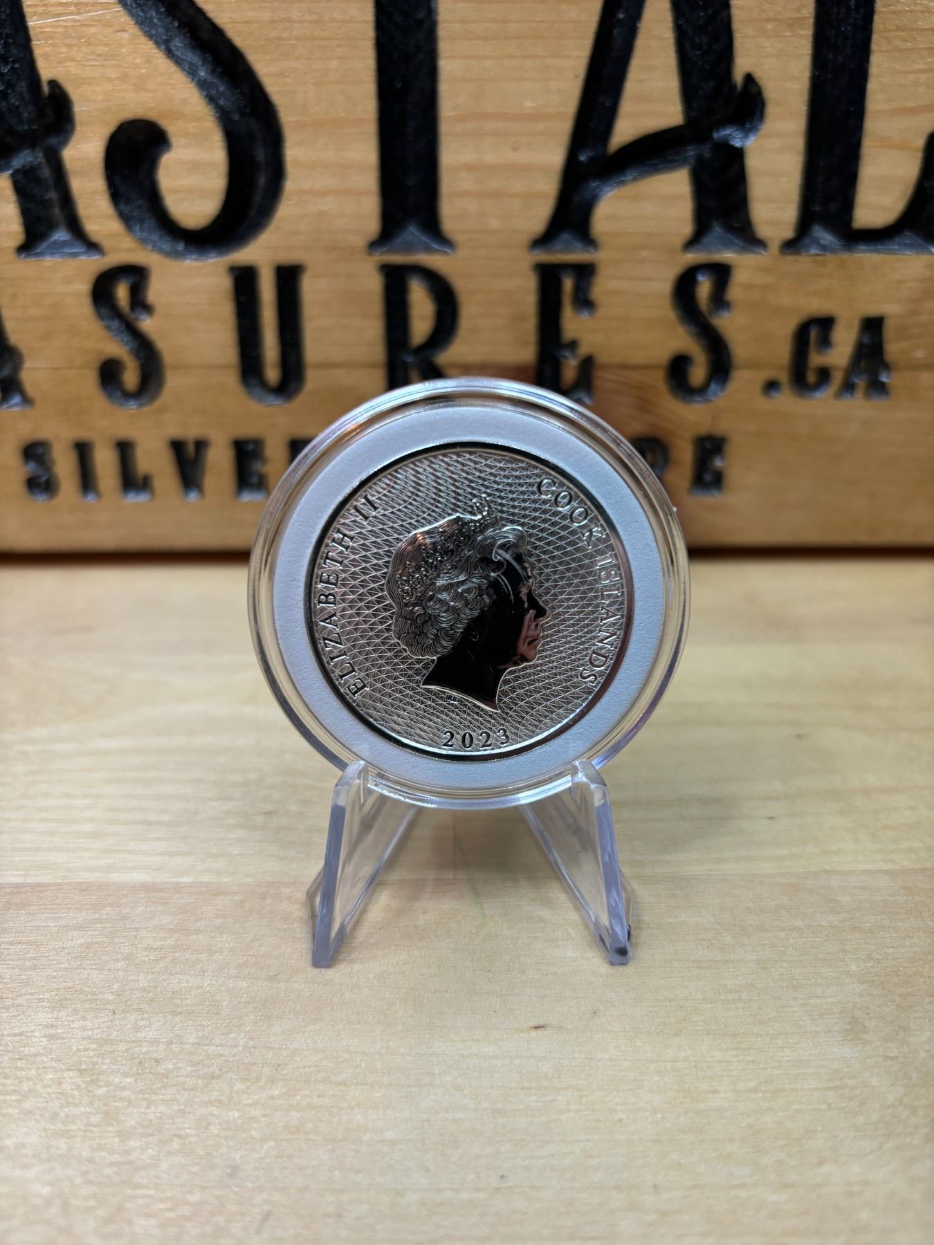 The 1 oz Cook Islands Silver Coin is a .999 fine silver coin weighing 1 ounce (31.1 grams). It is legal tender in the Cook Islands, though its value is mainly based on its silver content and collectible designs. These coins feature various themes, such as wildlife, historical events, and cultural symbols, making them popular with both investors and collectors. With a face value typically of $1 Cook Islands, the coin is recognized worldwide for its quality and craftsmanship.