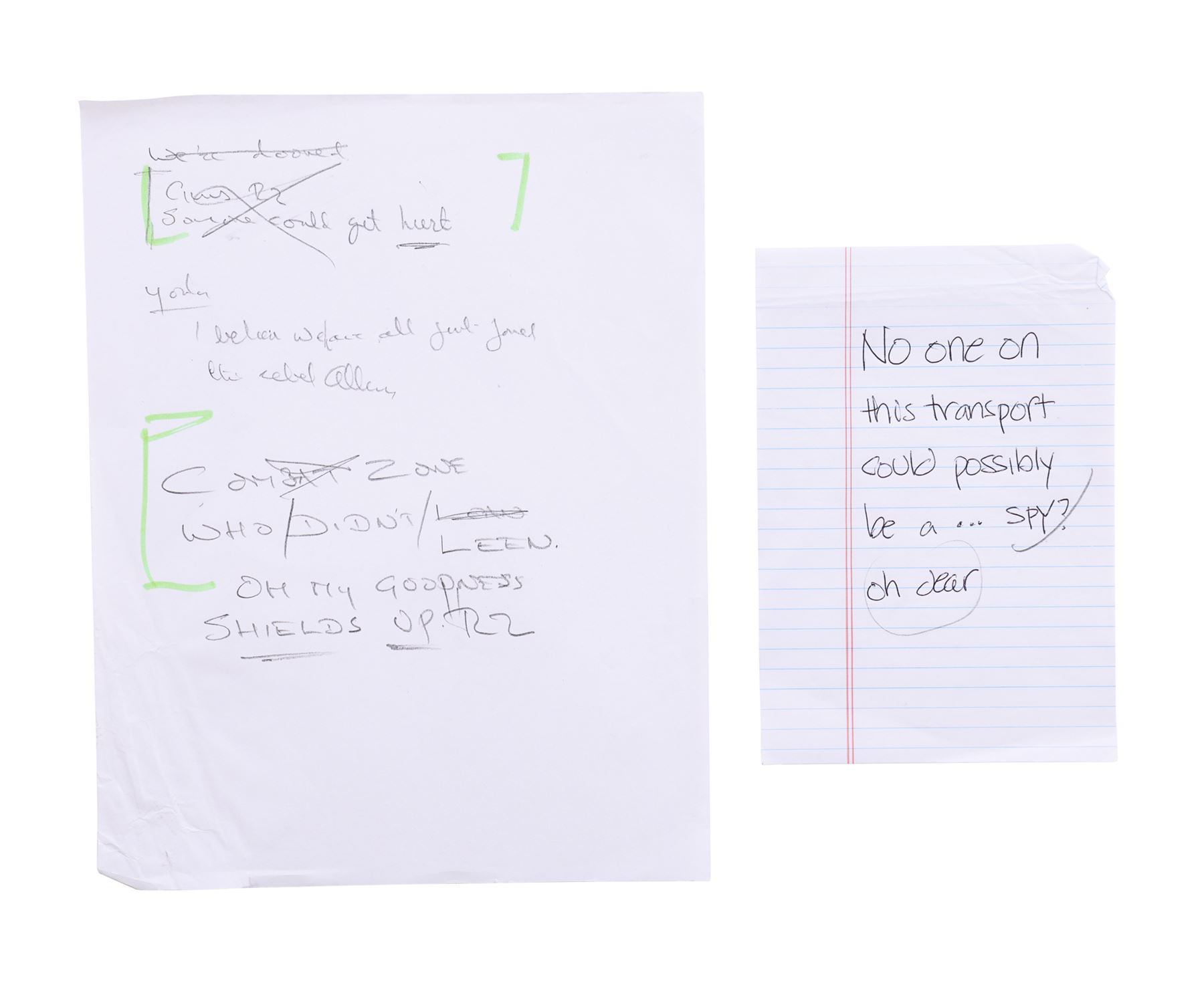 STAR WARS: STAR TOURS (1987) - Anthony Daniels Collection: Hand-annotated Scripts, Lenticular Photo, "Spacesickness" Sick Bag, Photographs of Anthony Daniels and George Lucas, and Assorted Paraphernalia
