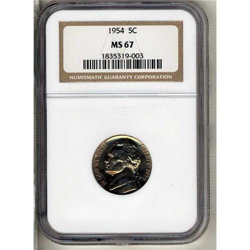 Lot 705 - 1954 Jefferson Nickel NGC MS67
