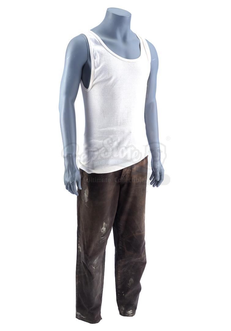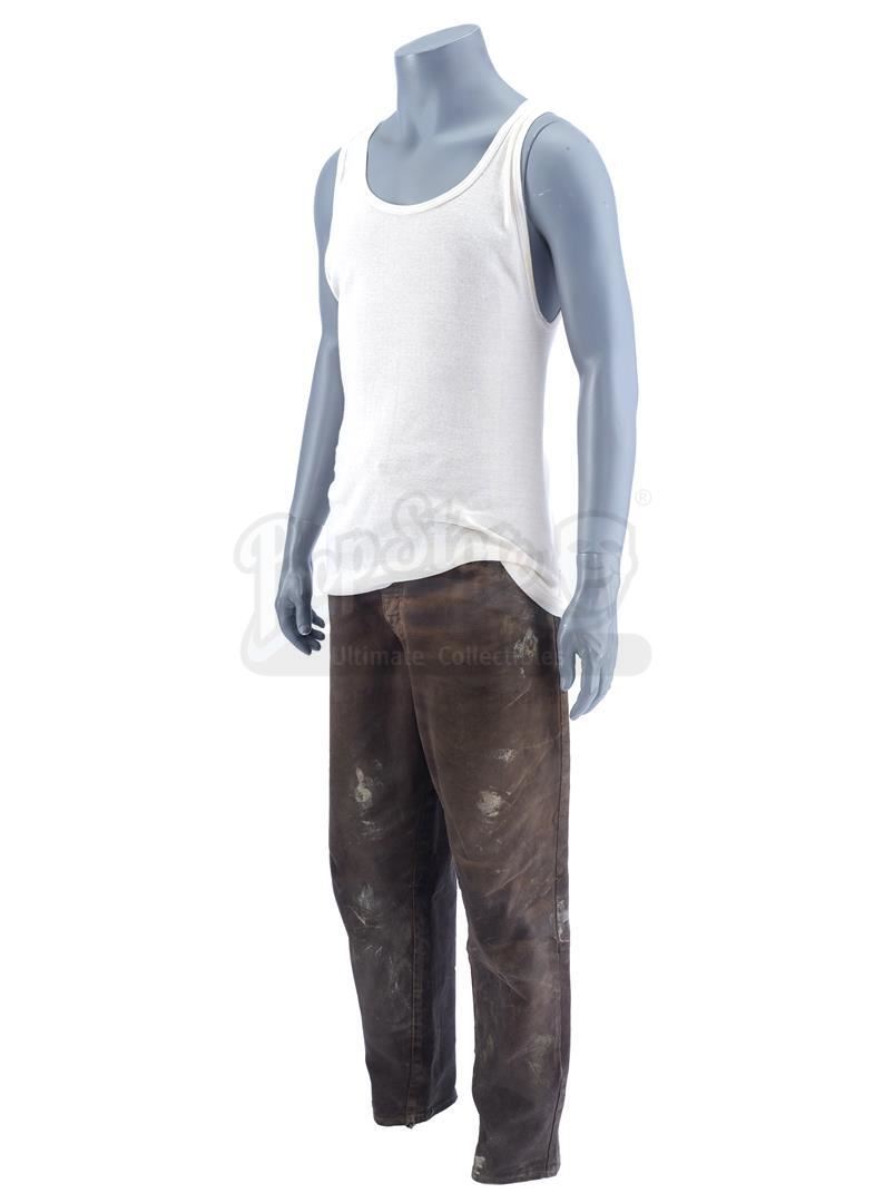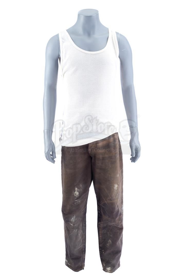This lot will be auctioned on Wednesday, June 30th. The auction will begin at 9:00am PDT and lots are sold sequentially via live auctioneer; tune in to the live streaming broadcast on auction day to follow the pace. Note other lots in the auction may close on June 29th or July 1st. Will Hunting's (Matt Damon) costume from Gus Van Sant's Academy Award-winning drama Good Will Hunting. Troubled genius Hunting wore his boxer shorts while breaking up with his girlfriend, Skylar (Minnie Driver). Later, he wore his costume while speaking with Chuckie (Ben Affleck) about his future. This lot consists of a white cotton tank-top, a pair of blue and red striped cotton boxer shorts, and a pair of black jeans. The lot is in good overall condition with visible signs of production wear and age, including lost elasticity in the waistband of the boxers, yellowing on the tank-top, and extensive paint stains and distress added by production to the jeans. Estimate: $1,500 - 2,500
