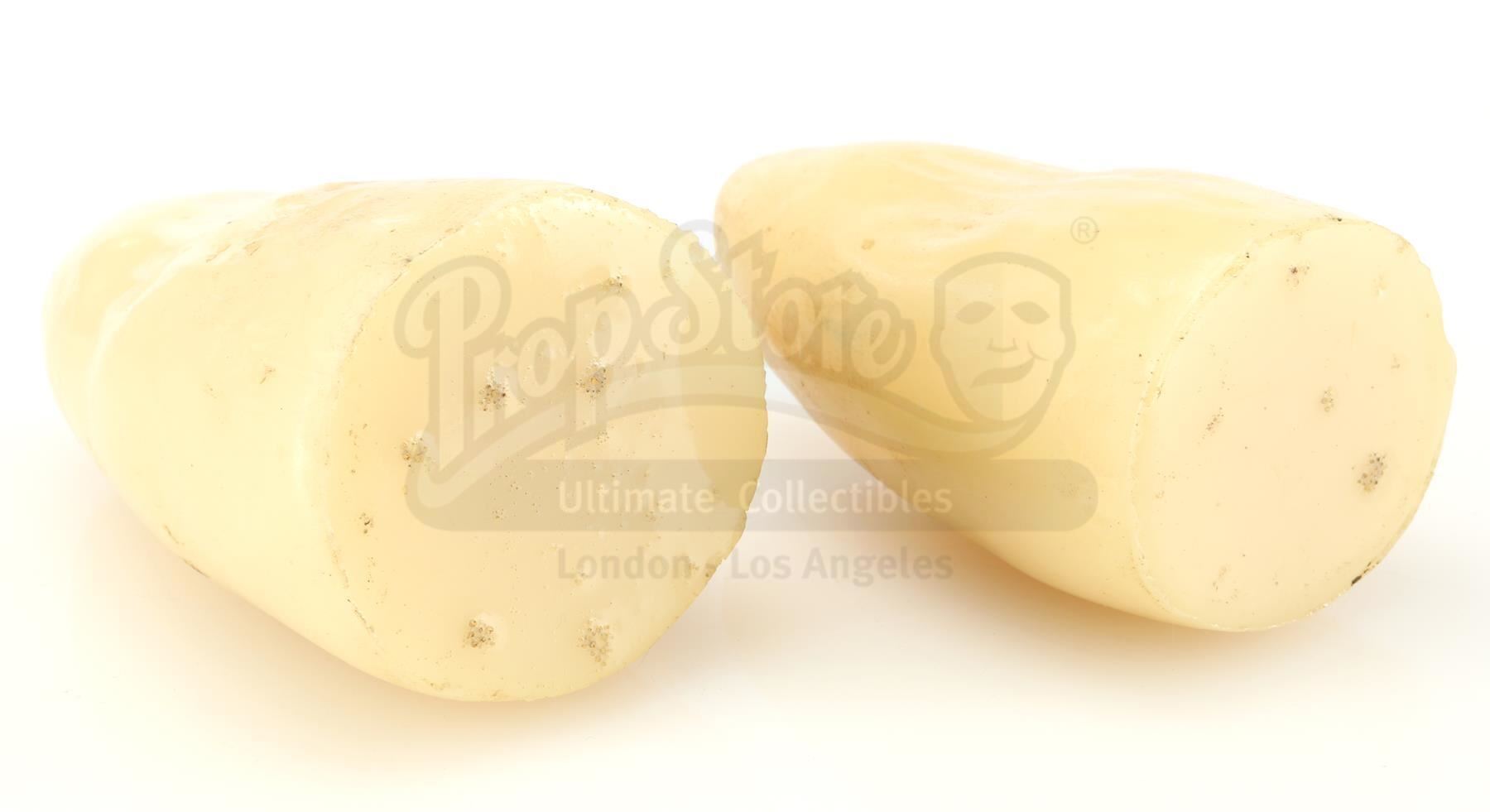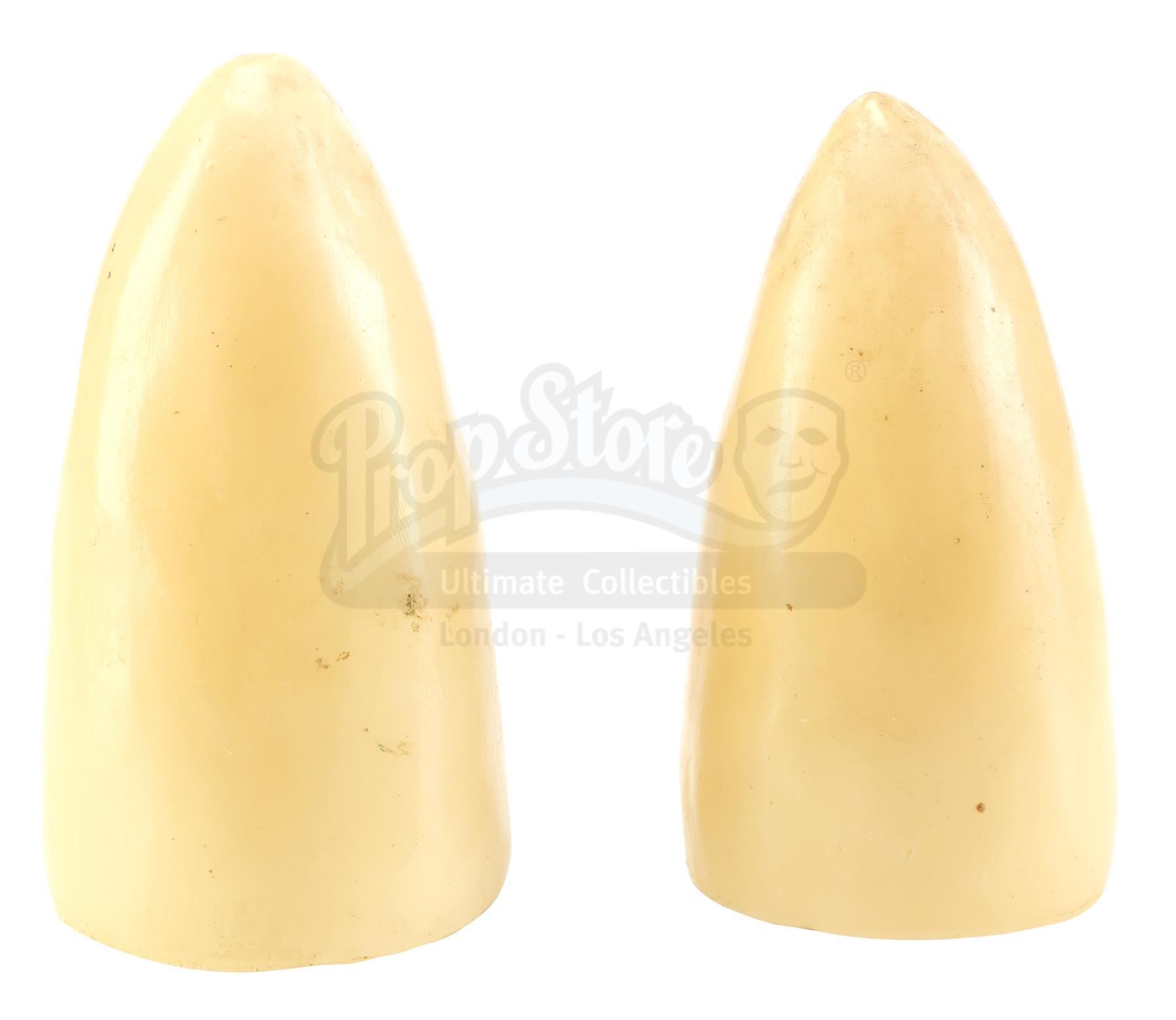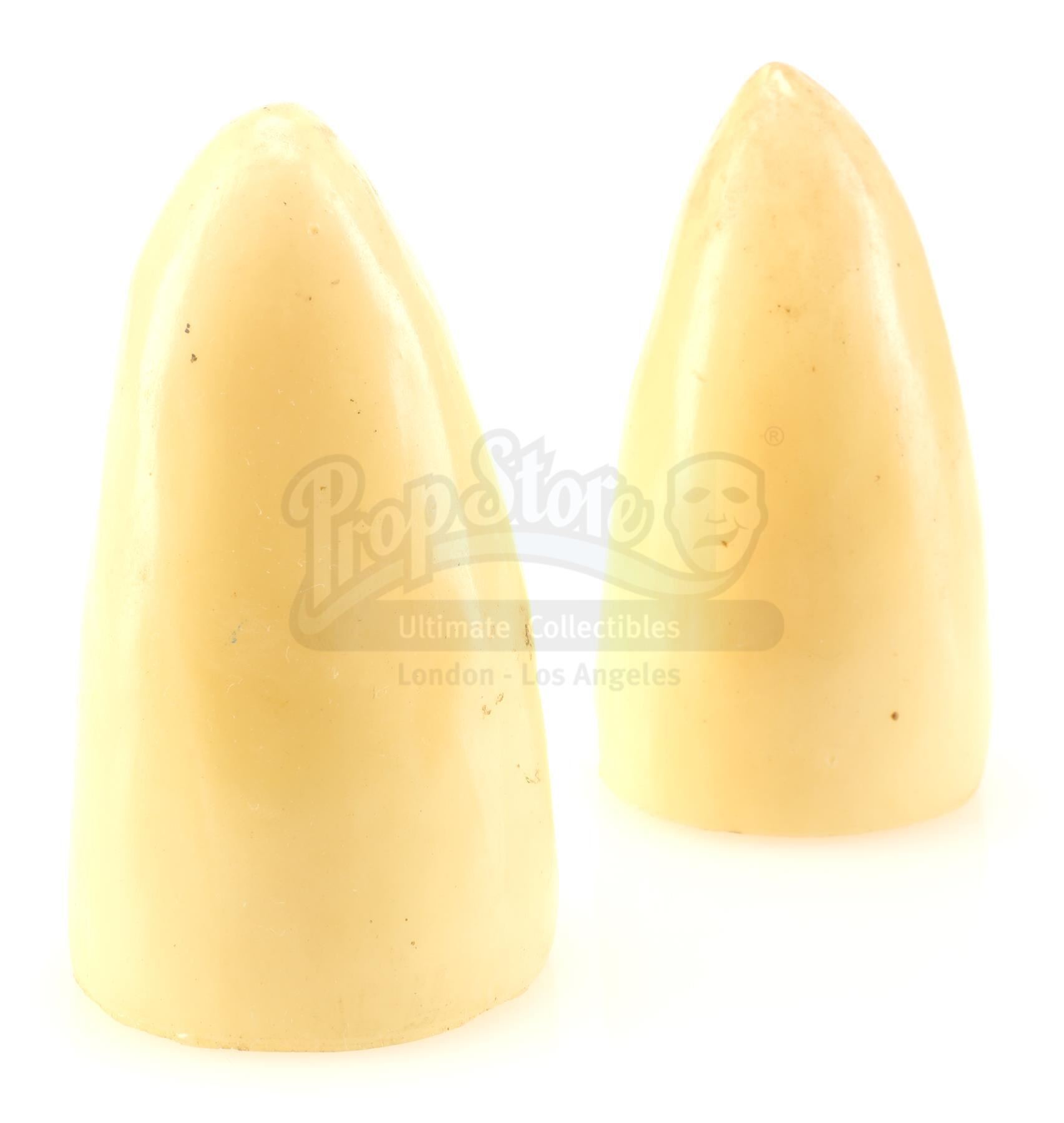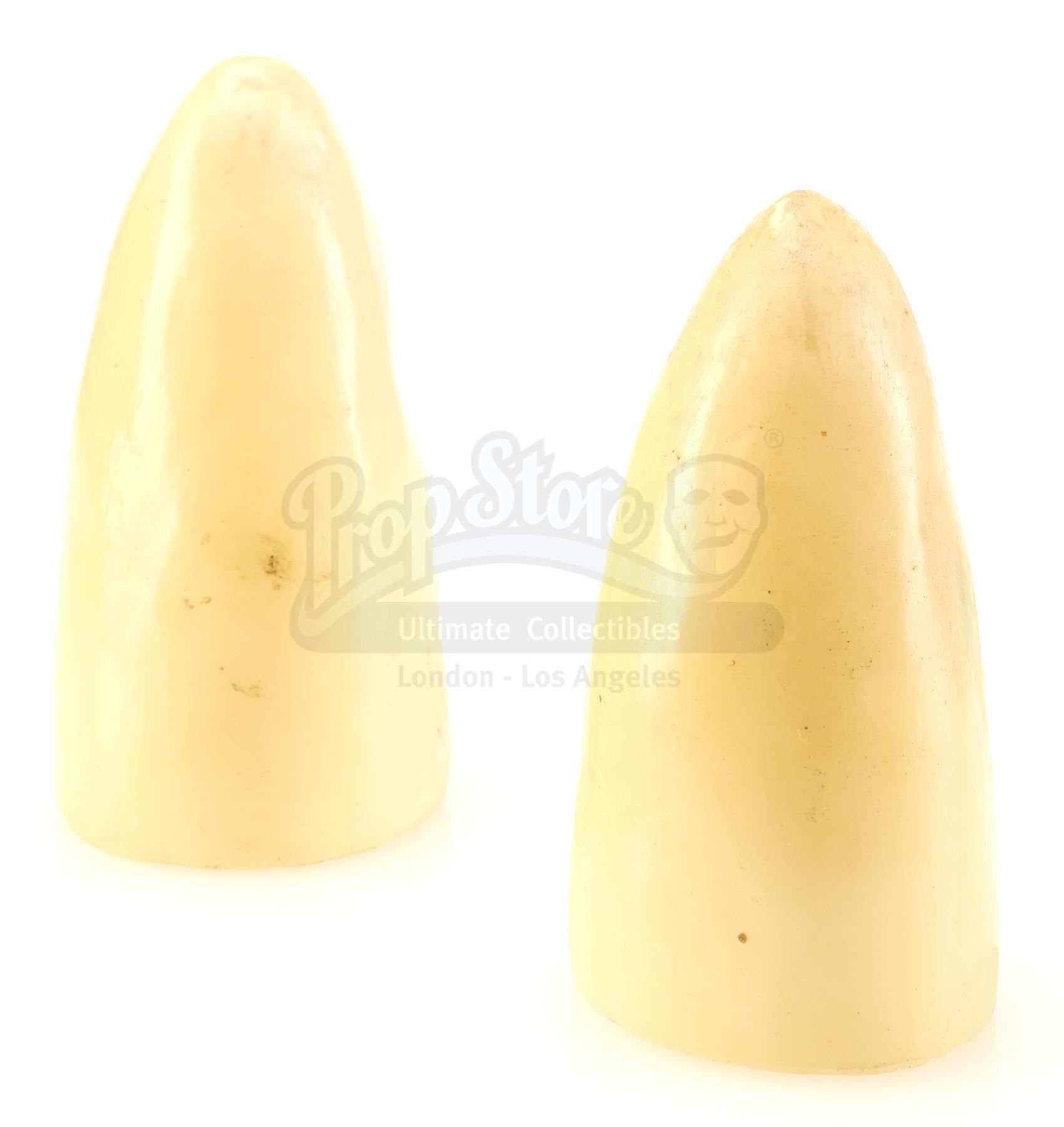 A pair of slug teeth from Irvin Kershner's Star Wars: The Empire Strikes Back. With TIE fighters hot on their trail, Han Solo (Harrison Ford) and Chewbacca (Peter Mayhew) accidentally hid the Millennium Falcon in the mouth of a colossal space slug, barely escaping before its teeth could crush the ship.