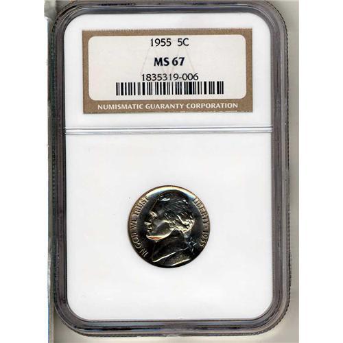 Lot 708 - 1955 Jefferson Nickel NGC MS67