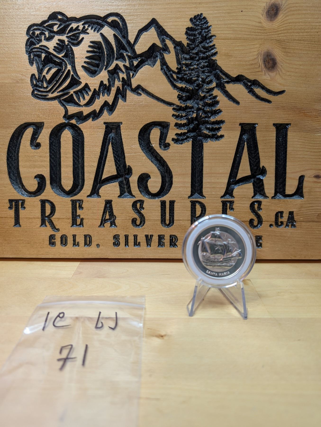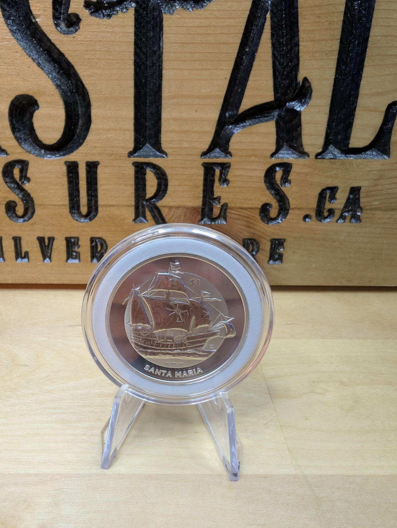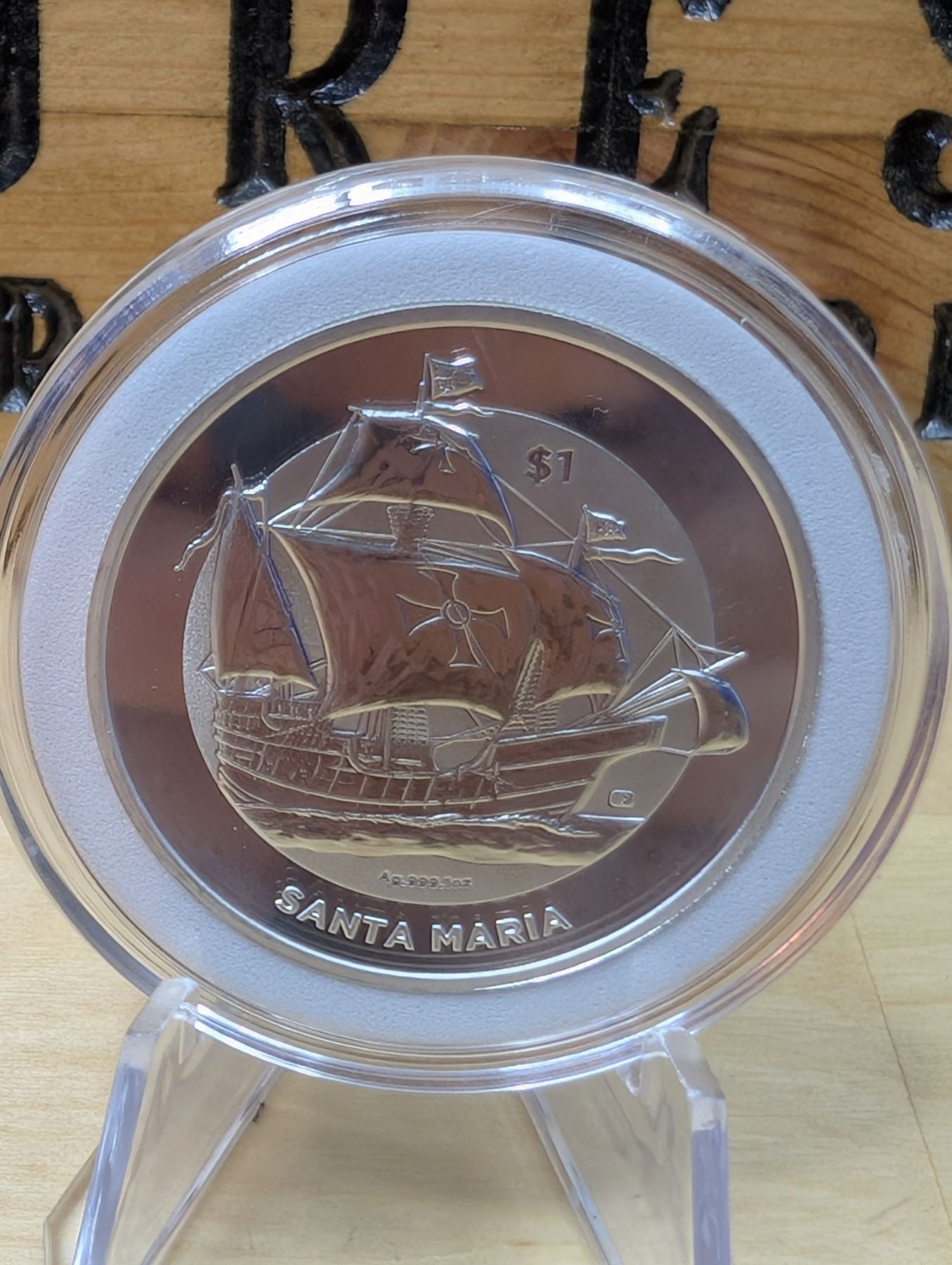 The 1 oz Virgin Island Santa Maria Silver typically features a design inspired by the historic Santa Maria, the flagship of Christopher Columbus' first voyage to the Americas. Containing 1 ounce of .999 fine silver, this often showcases an image of the ship, the Virgin Islands, or other related nautical and historical themes. It is a collectible, valued for both its silver content and its commemorative design, which highlights a key moment in exploration history.