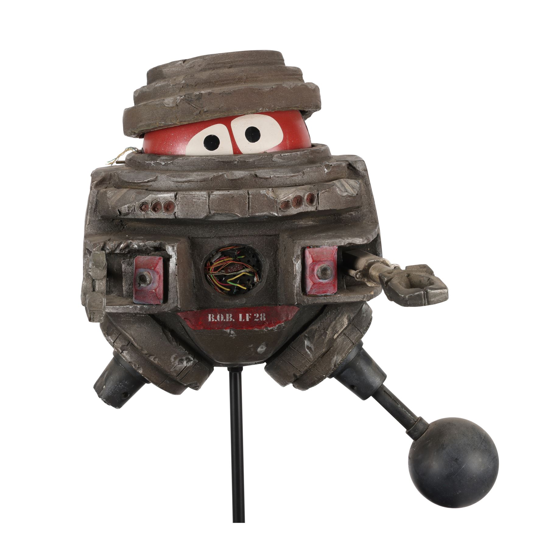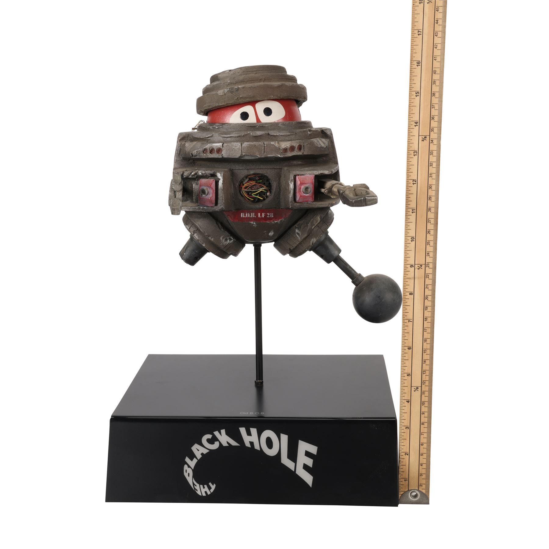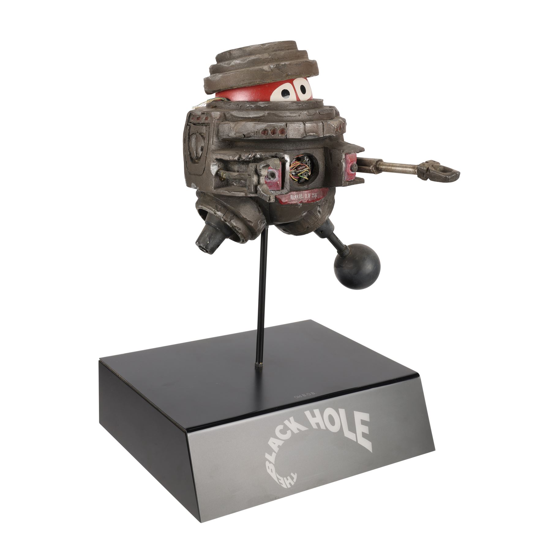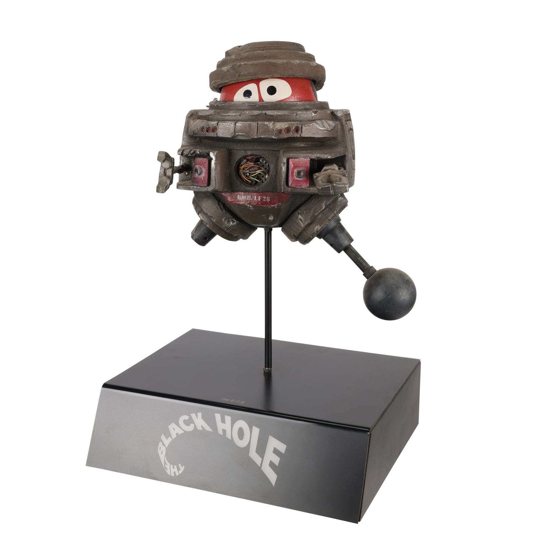 A filming miniature of B.O.B. from Gary Nelson's 1979 sci-fi film The Black Hole. The robot was designed by Disney Imagineer George McGinnis and voiced by Slim Pickens (uncredited), its acronym standing for "Bio-sanitation Battalion". Over the years, B.O.B. had been bullied and damaged by the other robots on the USS Cygnus. When the crew of the USS Palomino arrived, B.O.B. befriended a similar robot called V.I.N.CENT (voiced by Roddy McDowall).