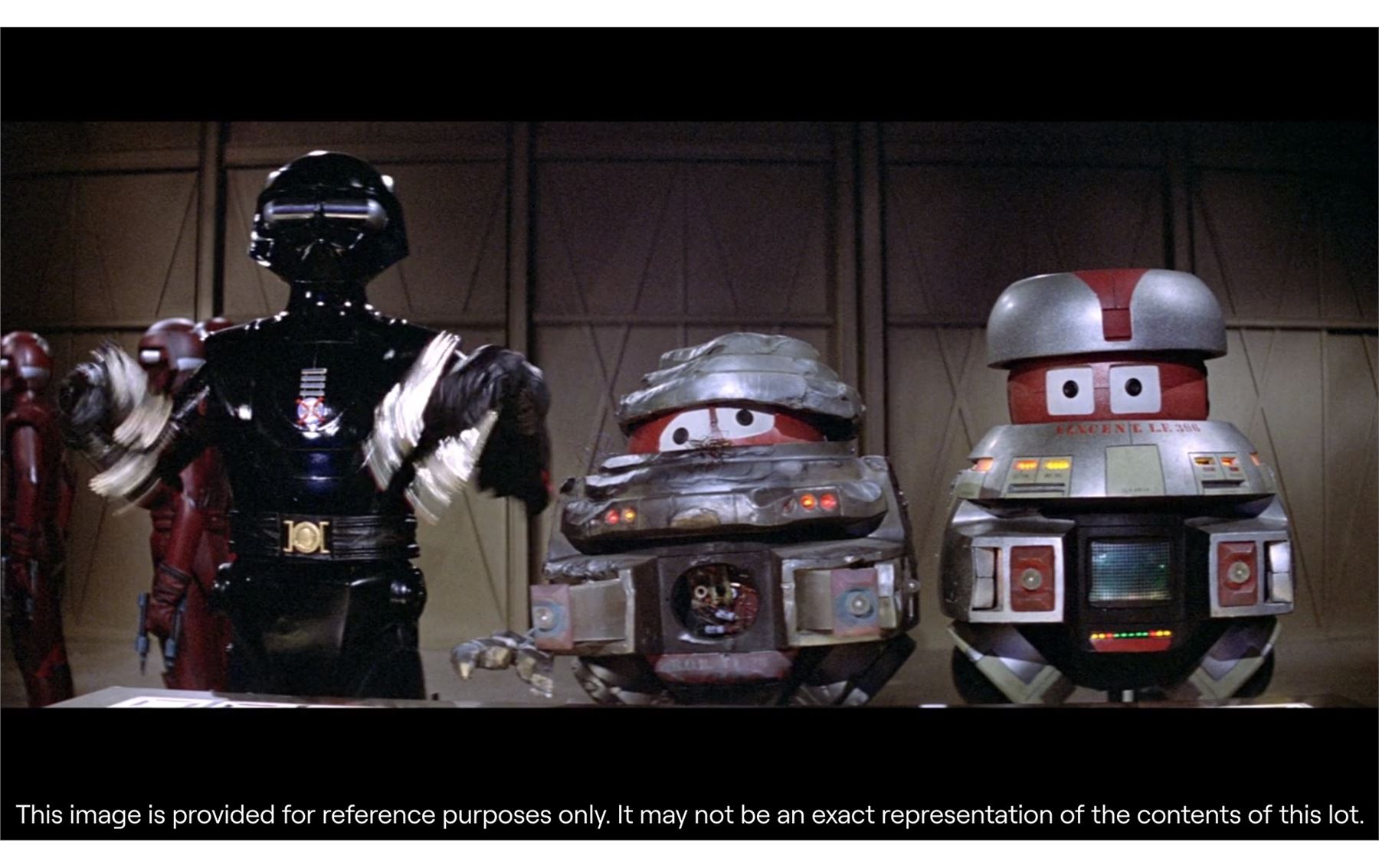 11.2. In the catalogue Entry, Propstore takes steps to identify and provide provenance for Lots offered at Auction. In many cases, the Lots offered were used in or in conjunction with motion pictures or other programmes and information is furnished in order to fully identify and describe the Lot offered at Auction, including photographs and illustrations. Propstore in no way claims any connection to or relationship with the producers of the motion picture or other programme. In all cases, the use of the titles or other elements of a motion picture or other programme is for informational purposes only.