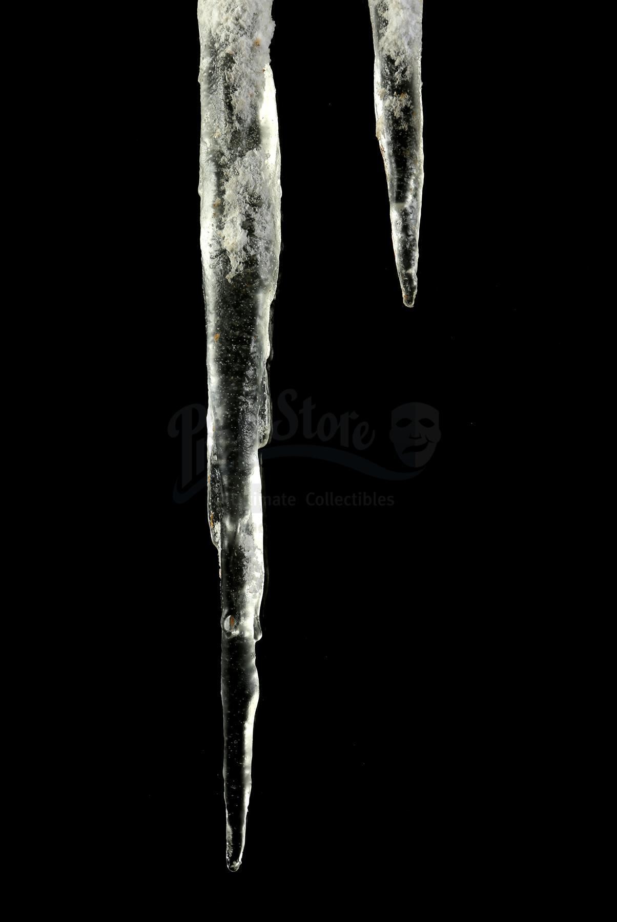 A pair of Wampa cave icicles from the Special Edition release of Irvin Kershner's Star Wars: The Empire Strikes Back. The icicles were constructed by Industrial Light & Magic (ILM) for interior locations on the frozen planet of Hoth.