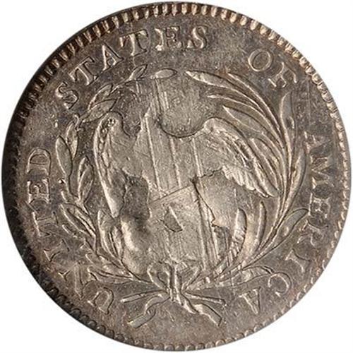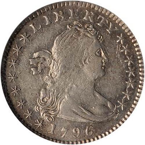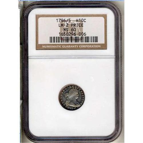 1796 Draped Bust Half Dime. 6 over 5. V-2, LM-2. Rarity-6. There are two known die marriages for this first-year issue in the Draped Bust, Small Eagle half dime series. V-1 has the "Normal Date," is the most frequently encountered in today's market. V-2 carries an R-6 rating in the book Federal Half Dimes: 1792-1837 by Russell J. Logan and John W. McCloskey. The authors believe that examples of the latter variety are scarce-to-rare in all grades, with most being heavily abraded. They also mention a Mint State 61 example that was sold as lot 895 in our Bowers' May 1996 sale of the Louis E. Eliasberg, Sr. Collection as possibly the finest seen for the V-2 die marriage.