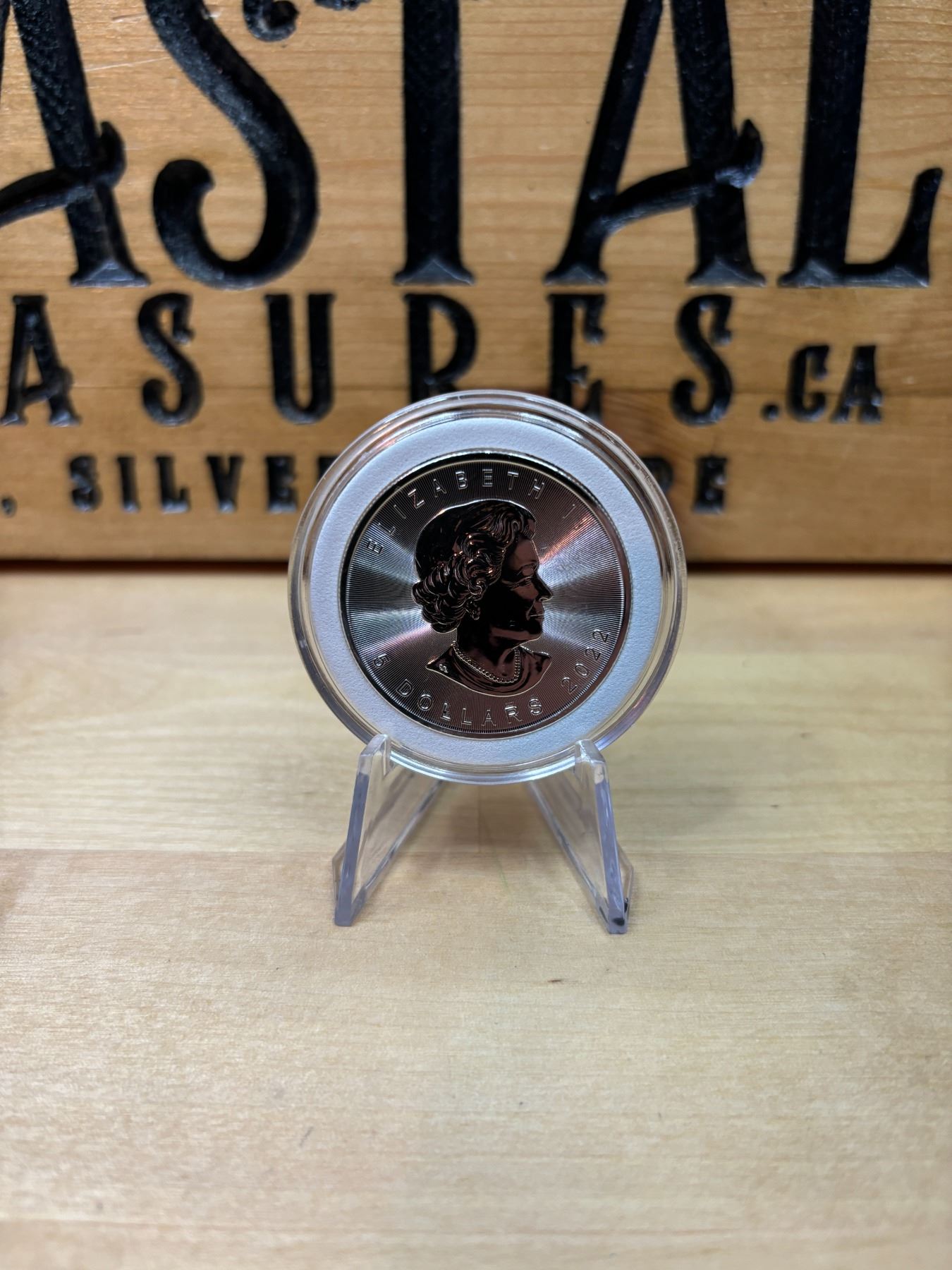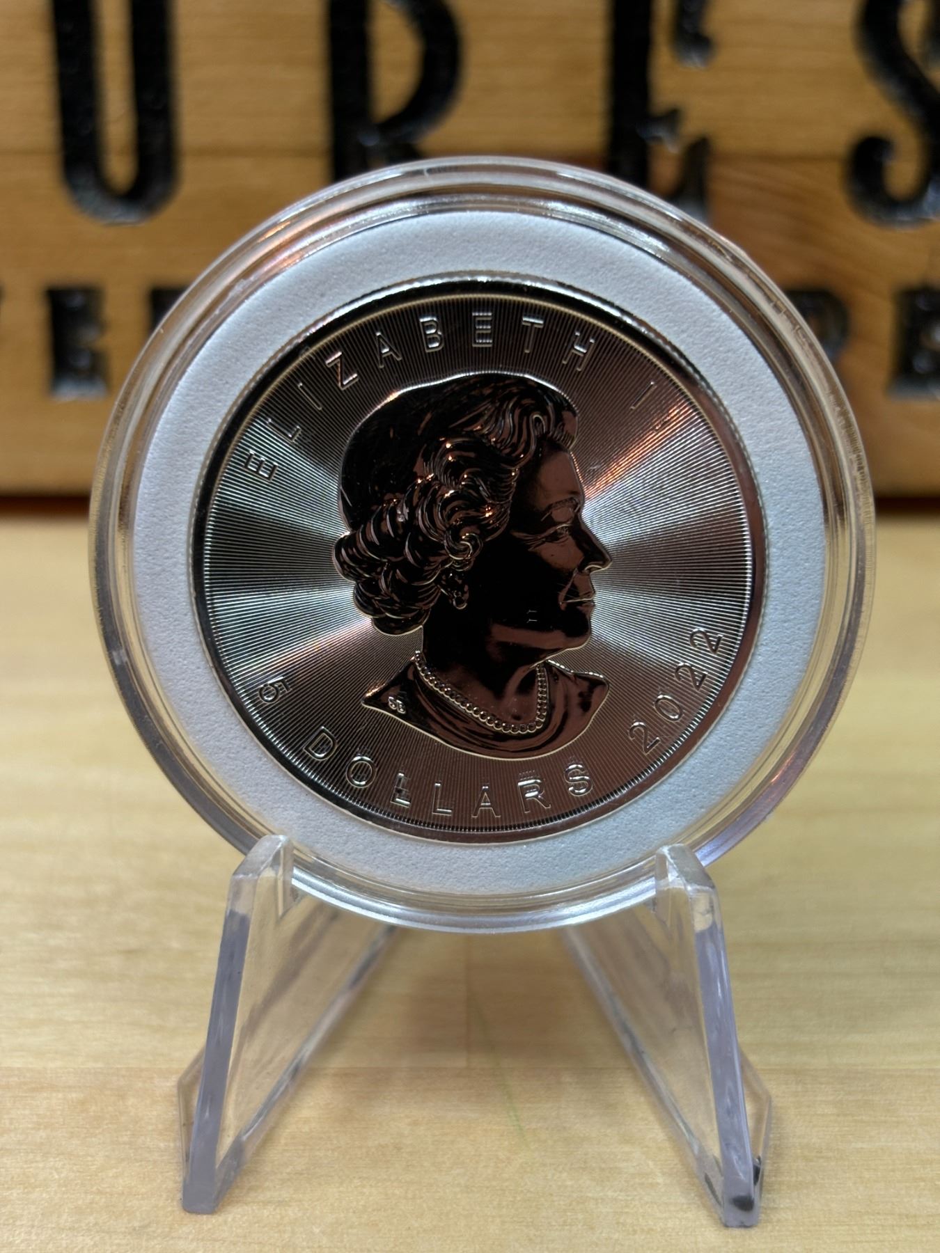 The 2022 1 oz Canadian Silver Maple Leaf is a .9999 fine silver coin minted by the Royal Canadian Mint. It features the iconic maple leaf on the reverse, with enhanced security features such as micro-engraved radial lines. The obverse showcases the new effigy of King Charles III, following the passing of Queen Elizabeth II, along with a face value of 5 Canadian dollars. Known for its high purity and craftsmanship, this coin is a favorite among collectors and investors.