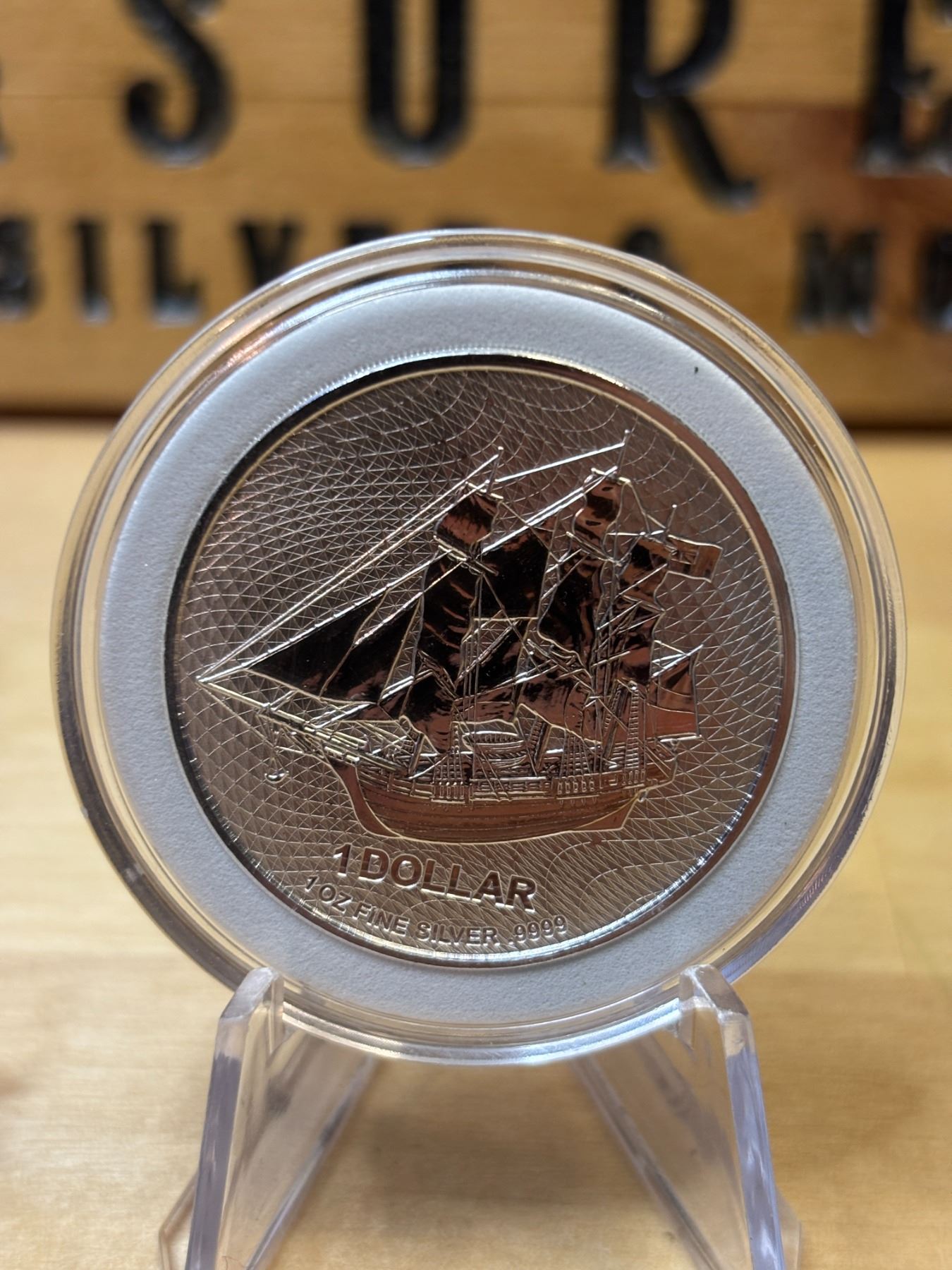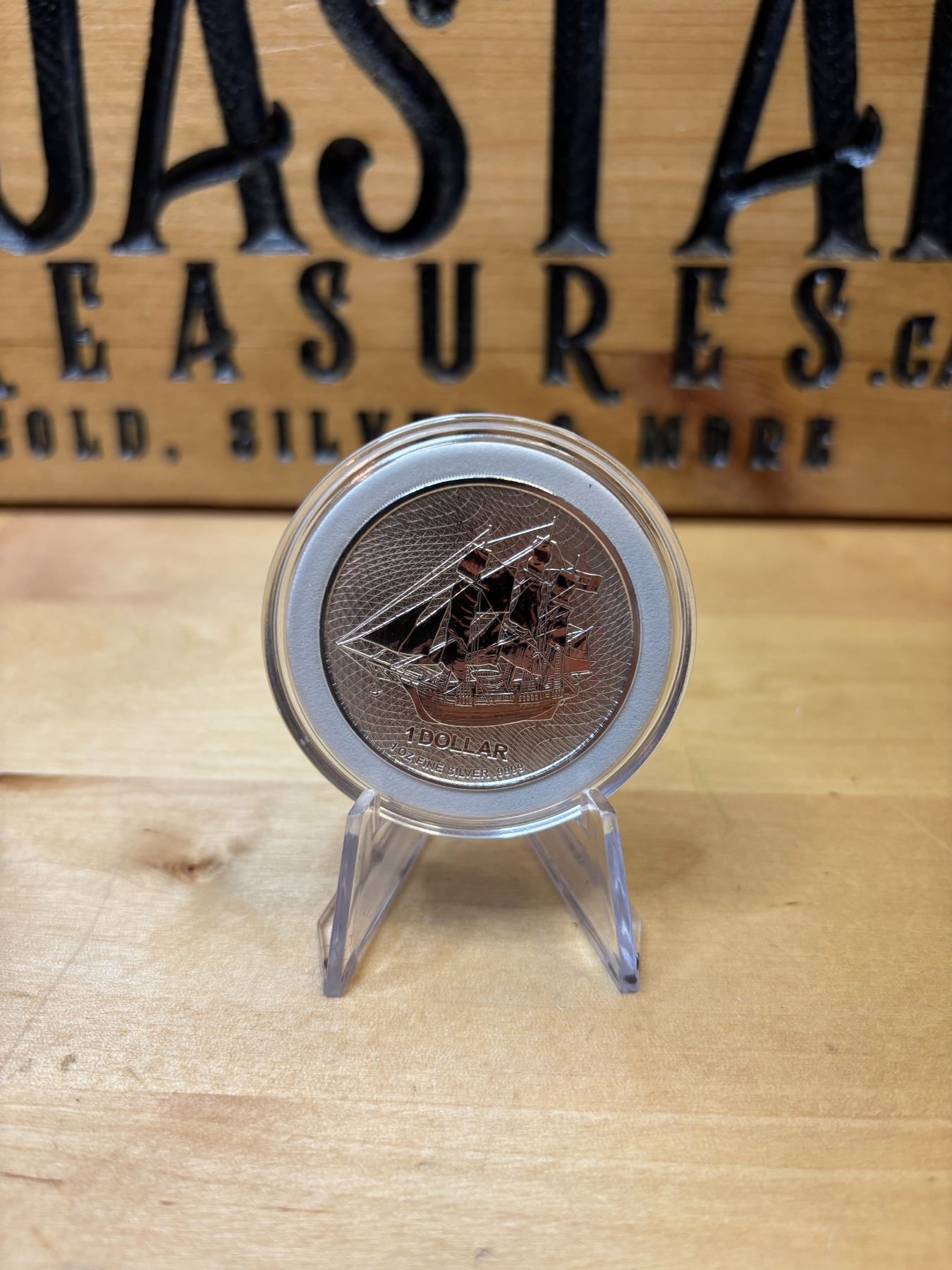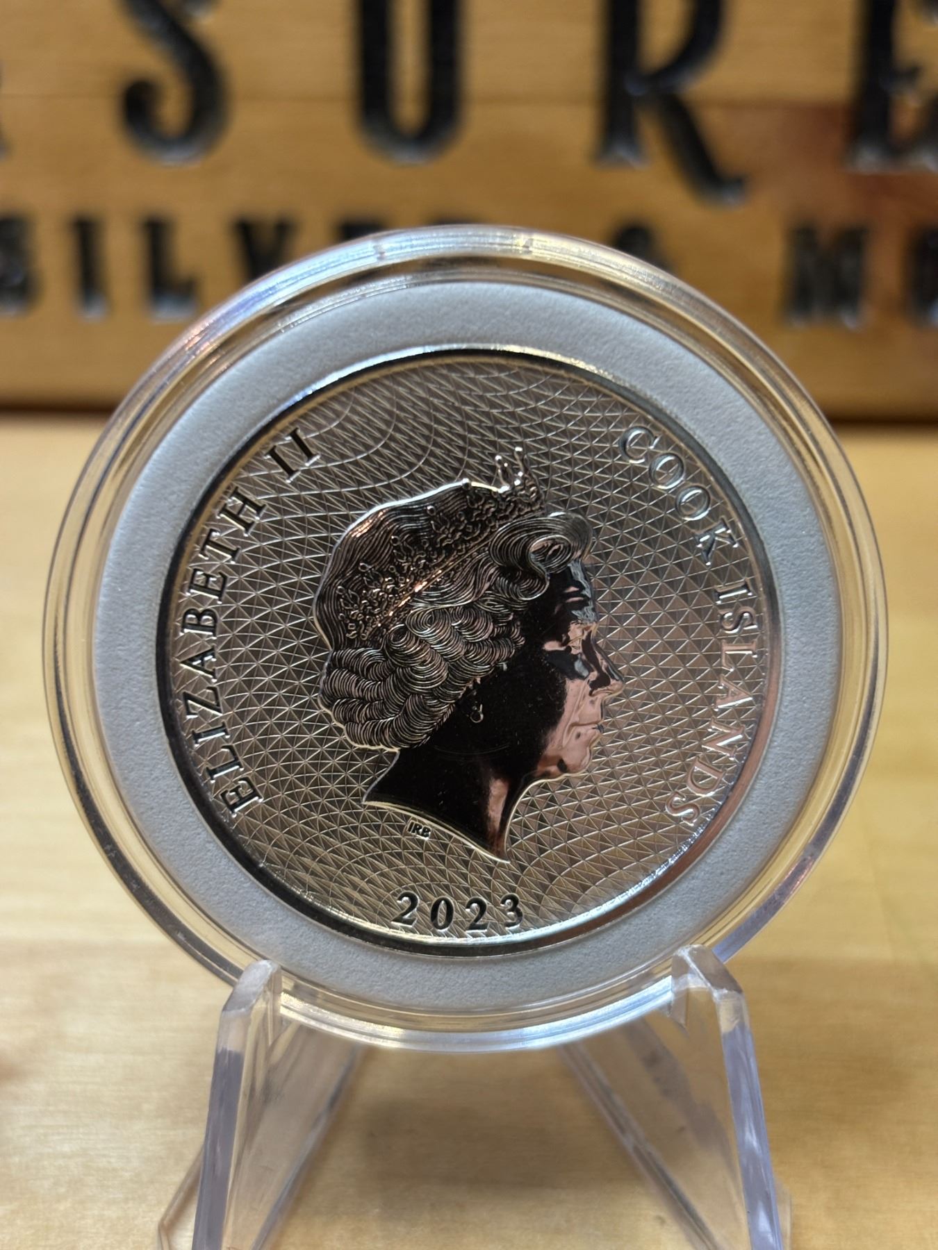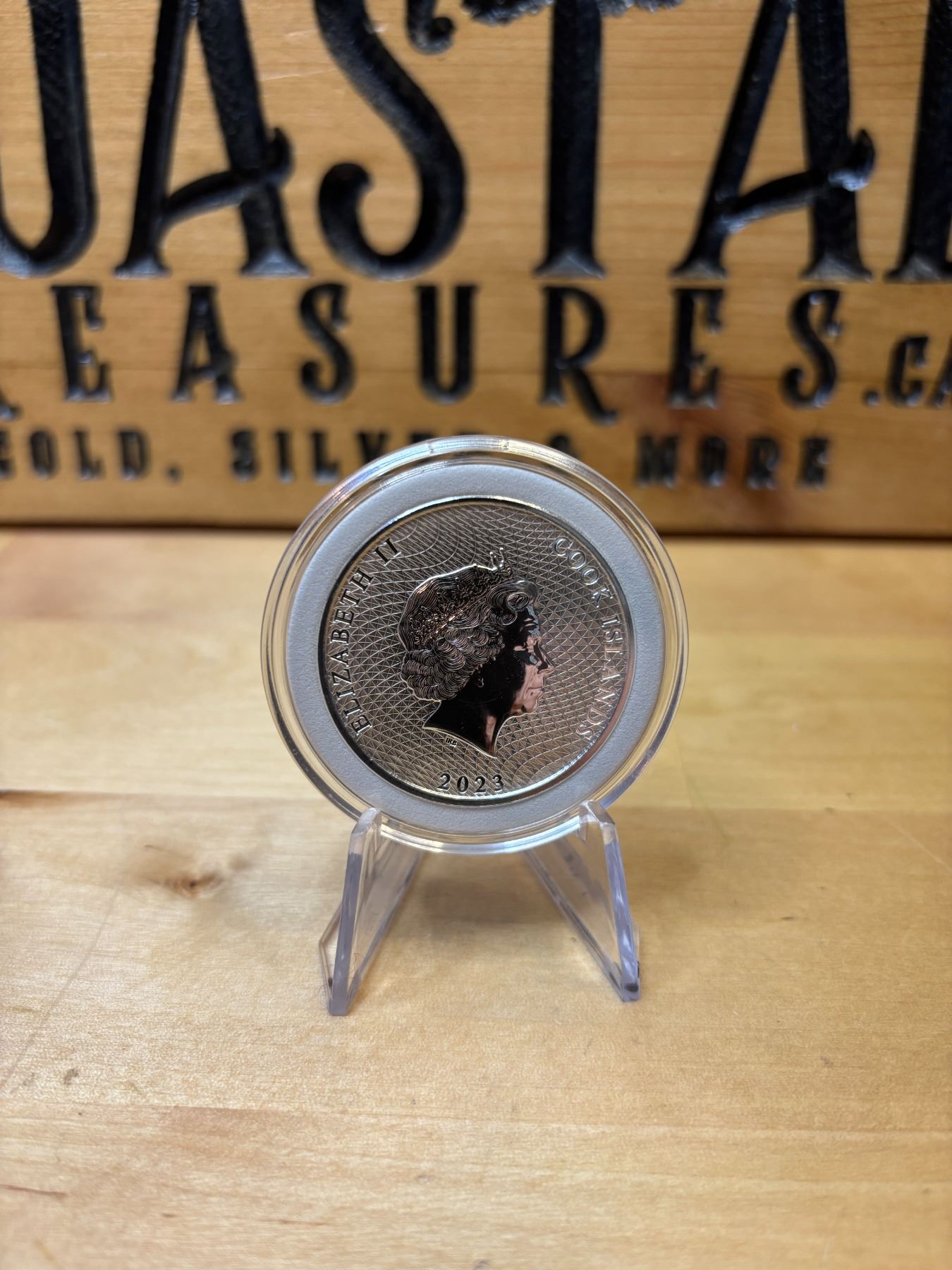 The 1 oz Cook Islands Silver Coin is a .999 fine silver coin weighing 1 ounce (31.1 grams). It is legal tender in the Cook Islands, though its value is mainly based on its silver content and collectible designs. These coins feature various themes, such as wildlife, historical events, and cultural symbols, making them popular with both investors and collectors. With a face value typically of $1 Cook Islands, the coin is recognized worldwide for its quality and craftsmanship.
