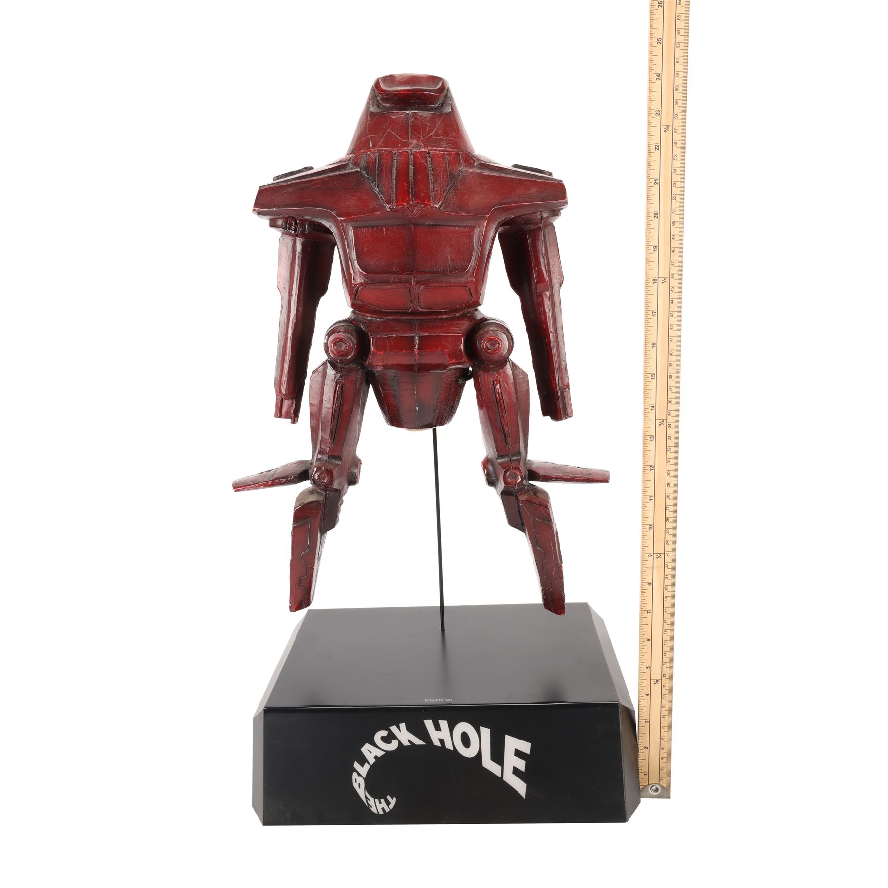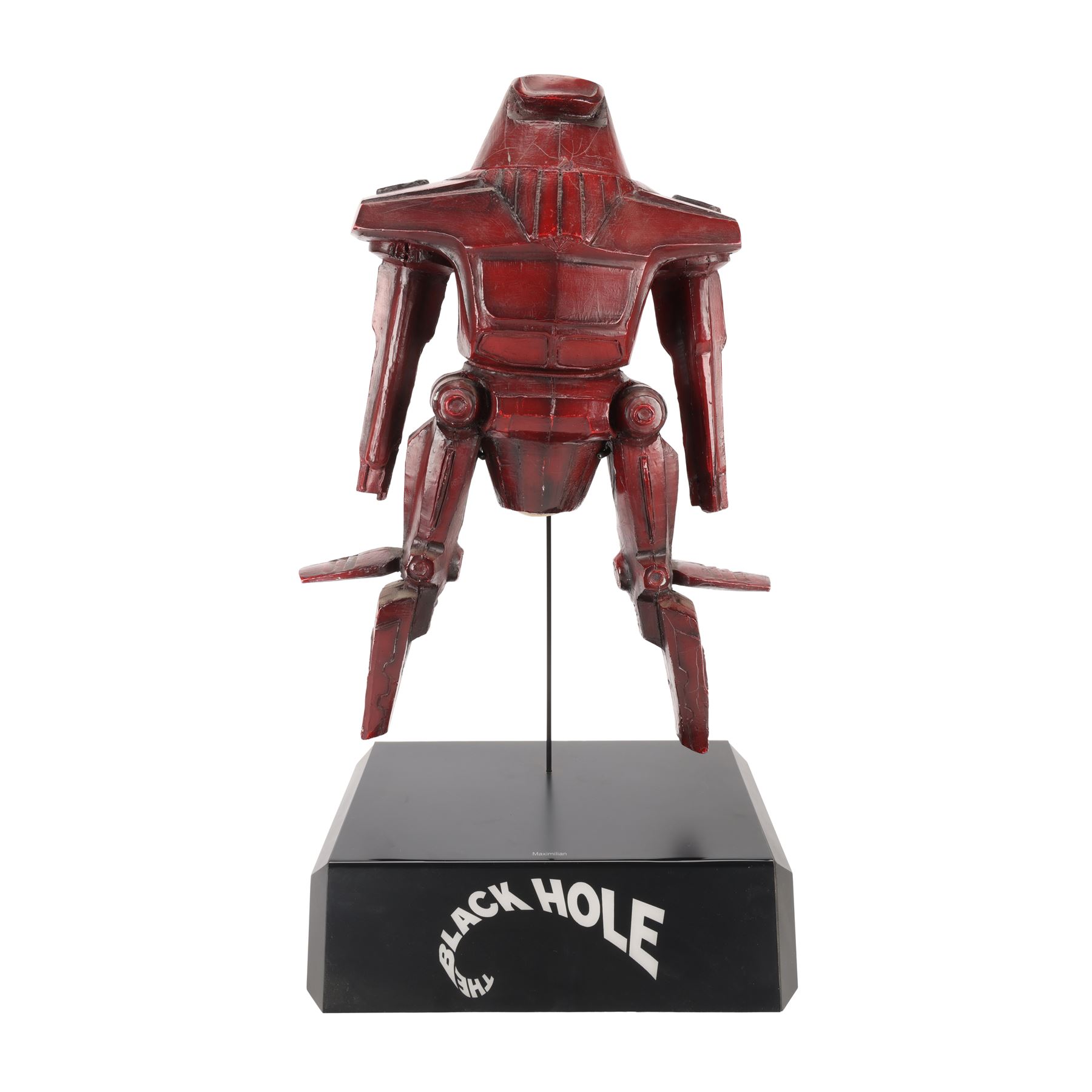 A maquette of Maximilian from the production of Gary Nelson's 1979 sci-fi film The Black Hole. The hovering robot Maximilian confronted the crew of the USS Palomino when they boarded the USS Cygnus, before it was ordered to stand down by Dr Hans Reinhardt (Maximilian Schell). Maximilian was designed by Disney Imagineer George McGinnis.