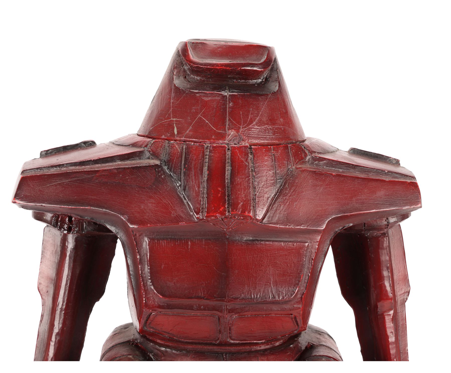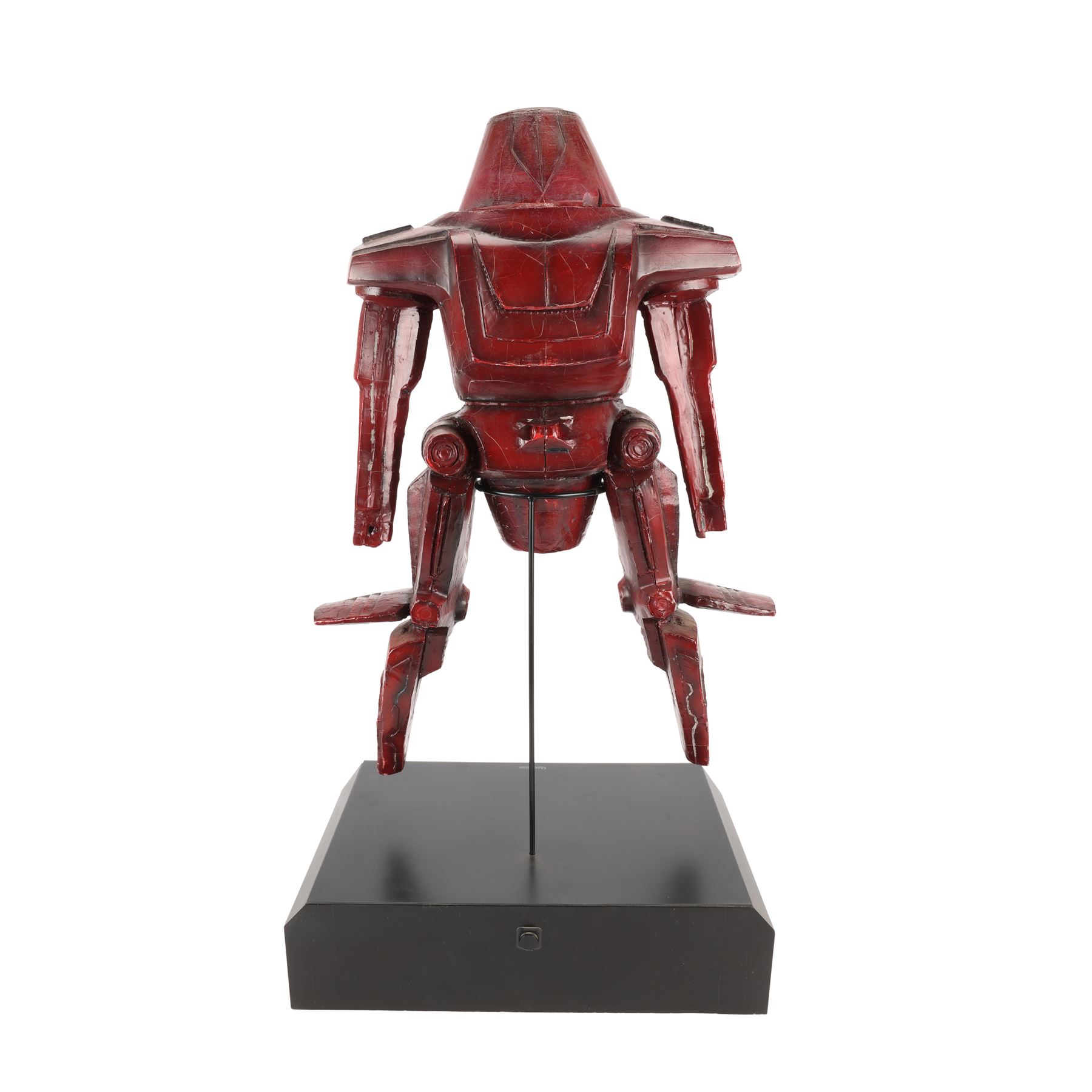 This 1:4 scale maquette was produced as a reference model for refining colouration and shape prior to building full-size versions. It is made of fibreglass and resin and painted varying shades of red, with grey detailing. The maquette perfectly captures the angular shape and sinister bearing of the full-scale model. Its intricate detailing includes bolts, panels, hinges and dual lift fans.
