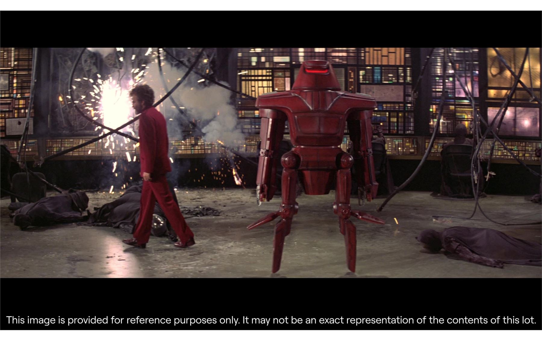 11.2. In the catalogue Entry, Propstore takes steps to identify and provide provenance for Lots offered at Auction. In many cases, the Lots offered were used in or in conjunction with motion pictures or other programmes and information is furnished in order to fully identify and describe the Lot offered at Auction, including photographs and illustrations. Propstore in no way claims any connection to or relationship with the producers of the motion picture or other programme. In all cases, the use of the titles or other elements of a motion picture or other programme is for informational purposes only.