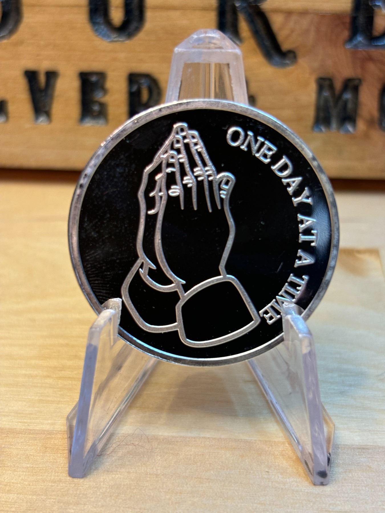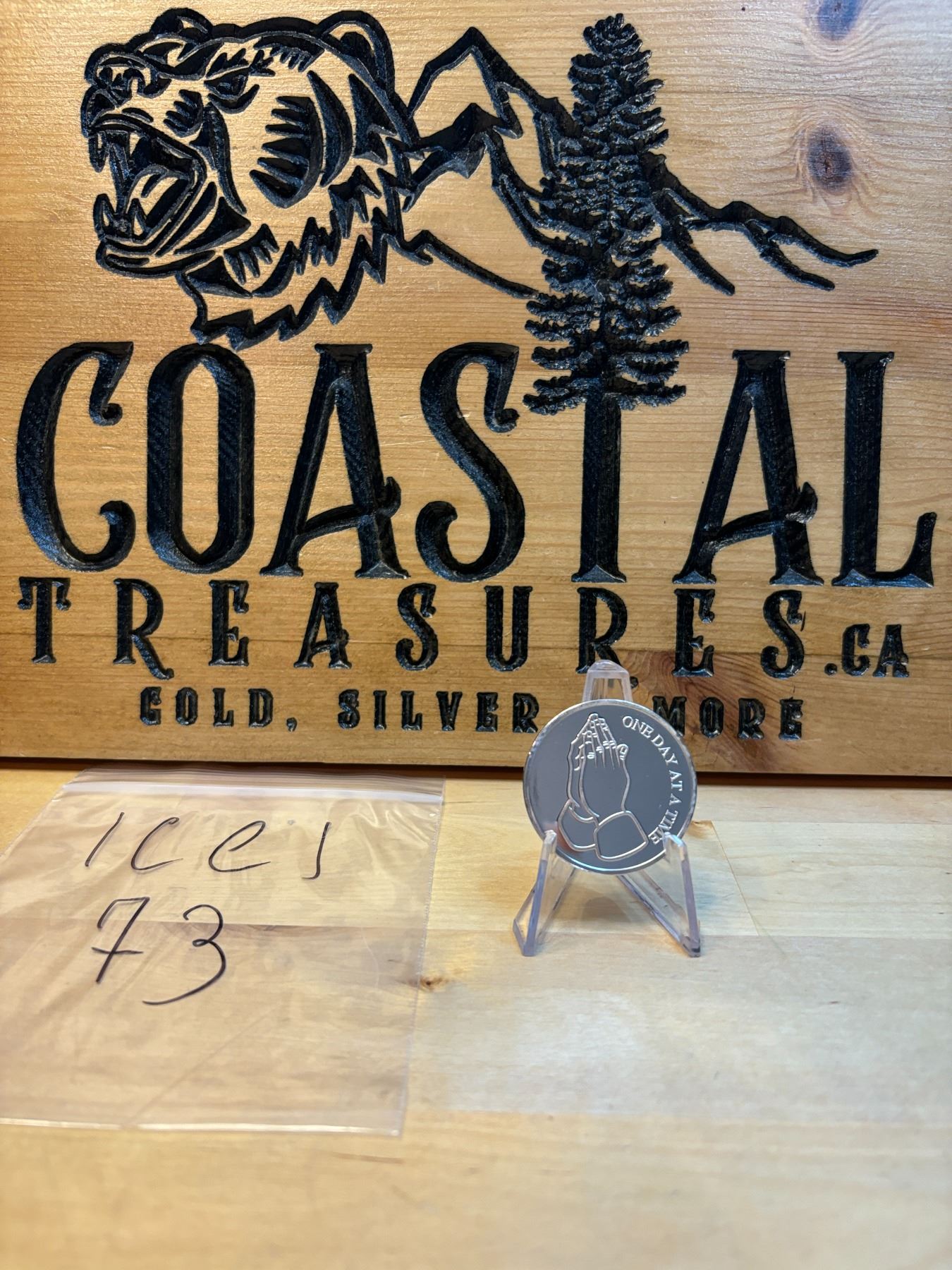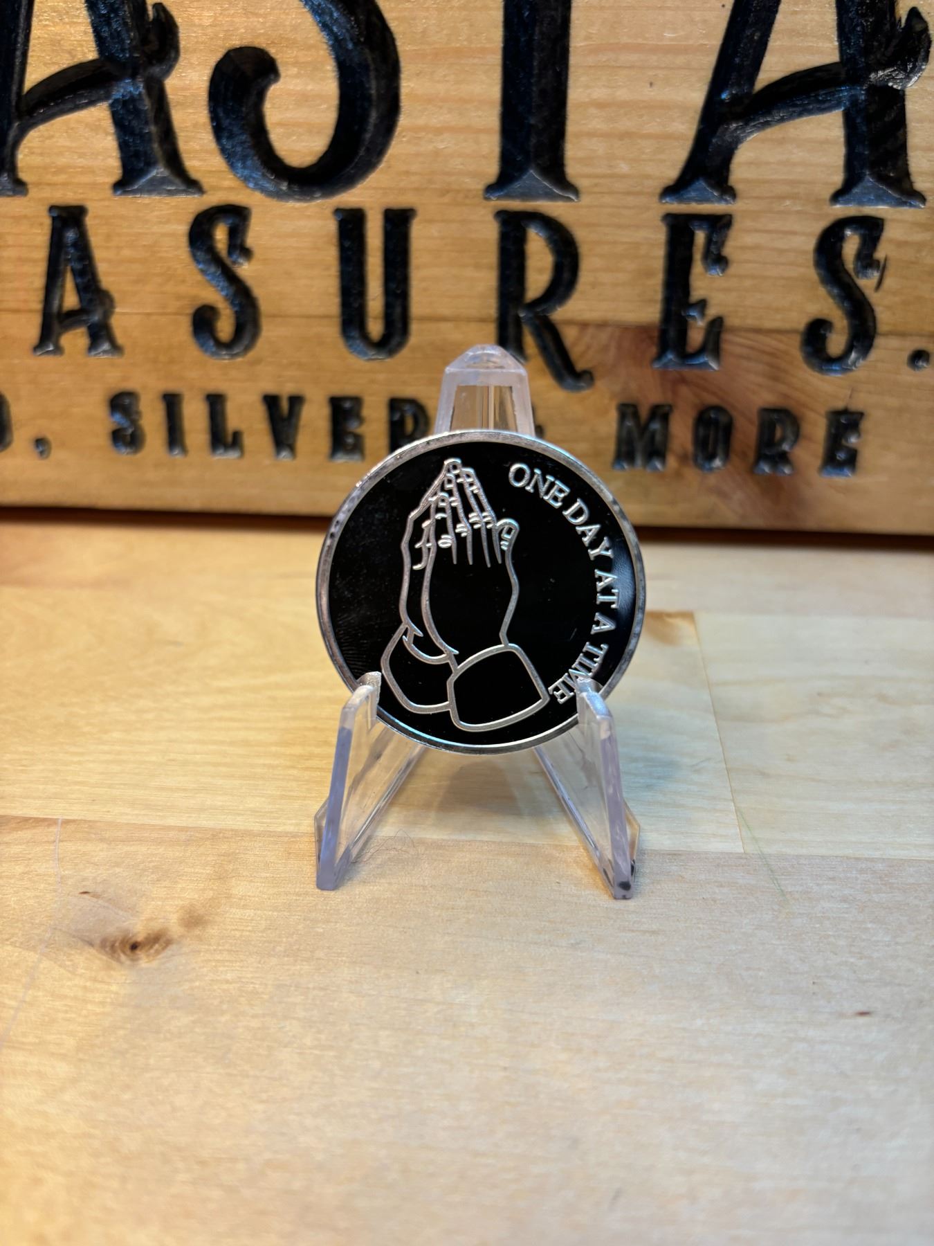 The 1 oz One Day at a Time Silver Round is a 1-ounce silver round made from 99.9% pure silver. The design typically features the phrase "One Day at a Time", which is a popular mantra often associated with personal growth, overcoming challenges, and living in the present moment. It may include symbolic elements like clocks, calendars, or motivational imagery. This round is popular among those seeking inspirational or reflective themes, and is valued for both its silver content and its uplifting message. It can be a meaningful gift or a reminder for personal resilience and focus.