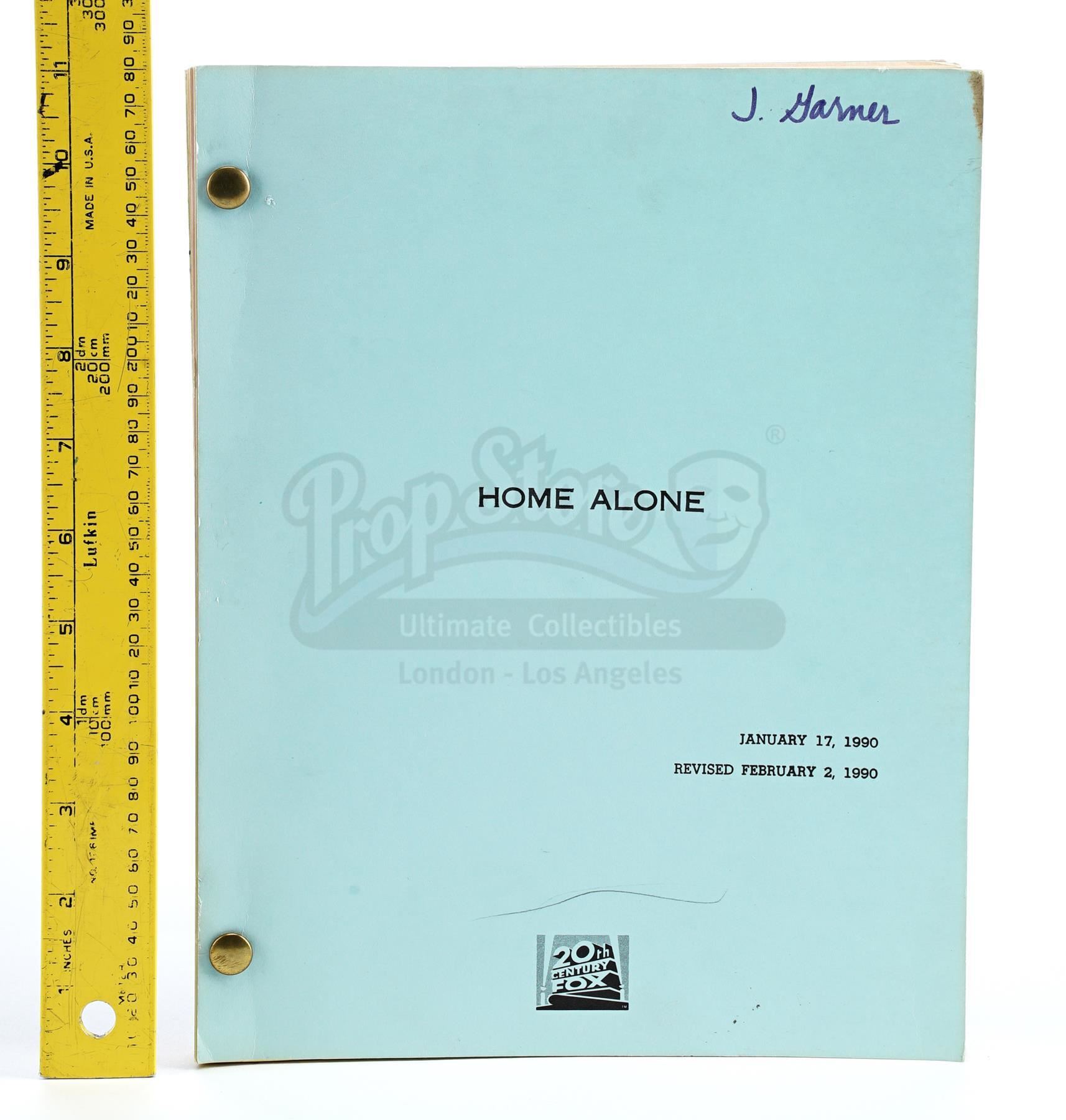 This lot will be auctioned on Wednesday, June 30th. The auction will begin at 9:00am PDT and lots are sold sequentially via live auctioneer; tune in to the live streaming broadcast on auction day to follow the pace. Note other lots in the auction may close on June 29th or July 1st. A bound, revised script from the production of Chris Columbus' action comedy Home Alone. The franchise-spawning original screenplay was written by John Hughes and first distributed by 20th Century Fox on January 17, 1990. This multicolor script, the revised draft dated "February 2, 1990," is bound with brass brads and labeled in purple marker on front for "J. Garner." It is in good overall condition with some edge wear and miscellaneous stains on the cover from production. Dimensions: 11" x 8.5" x 1" (28 cm x 21.75 cm x 2.5 cm) Estimate: $600 - 800