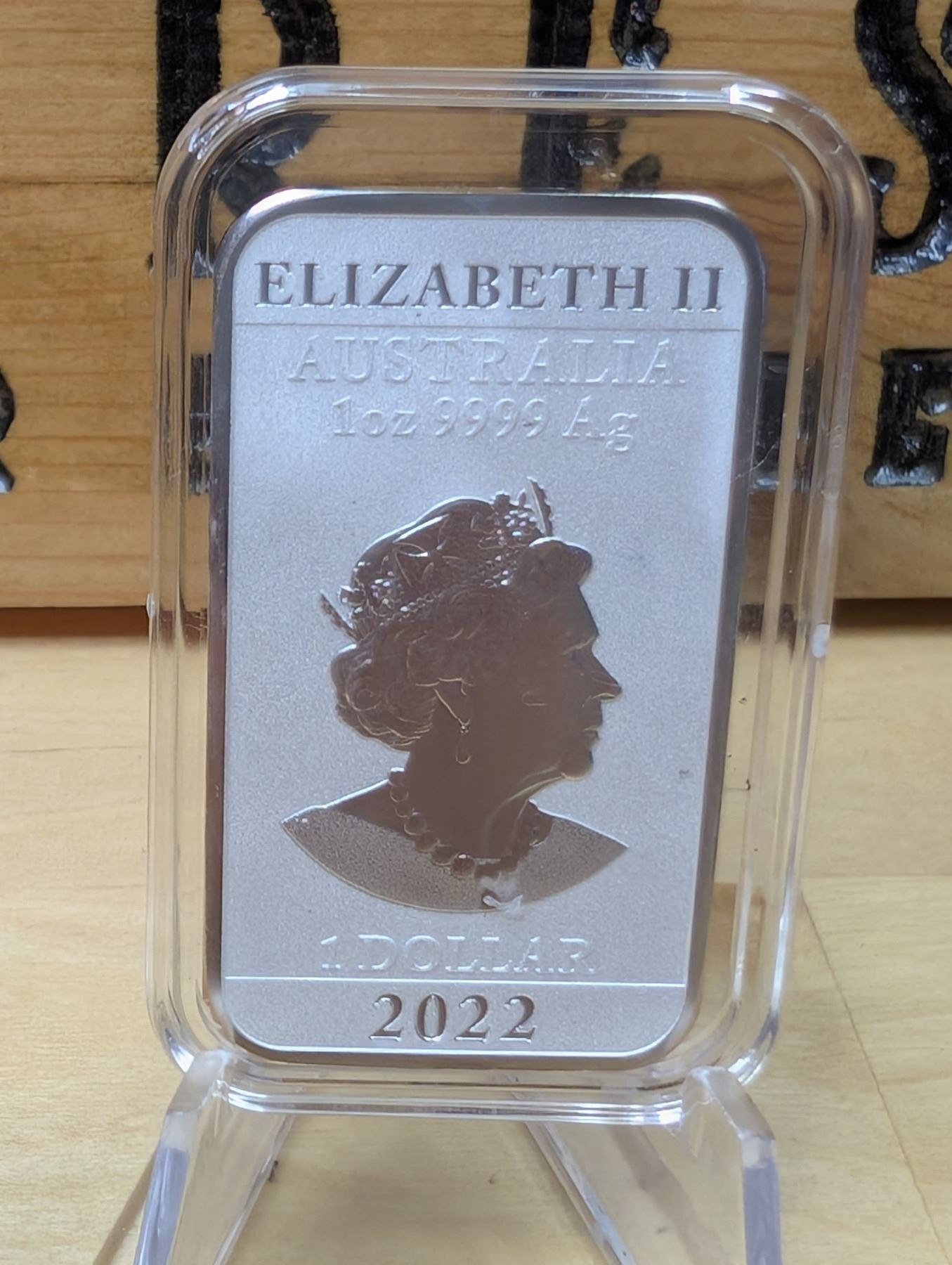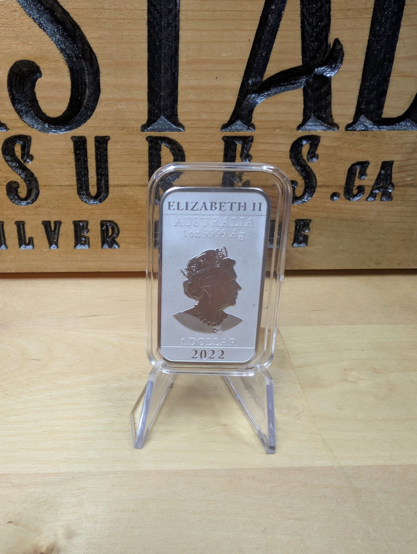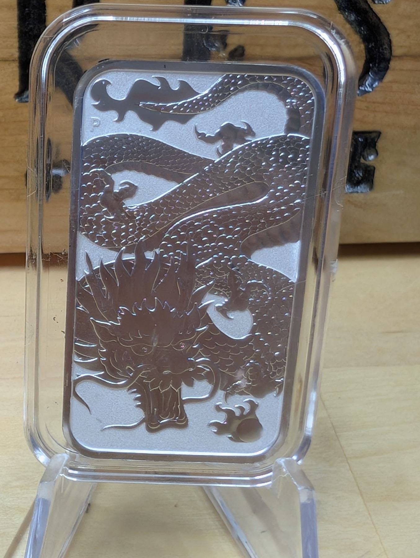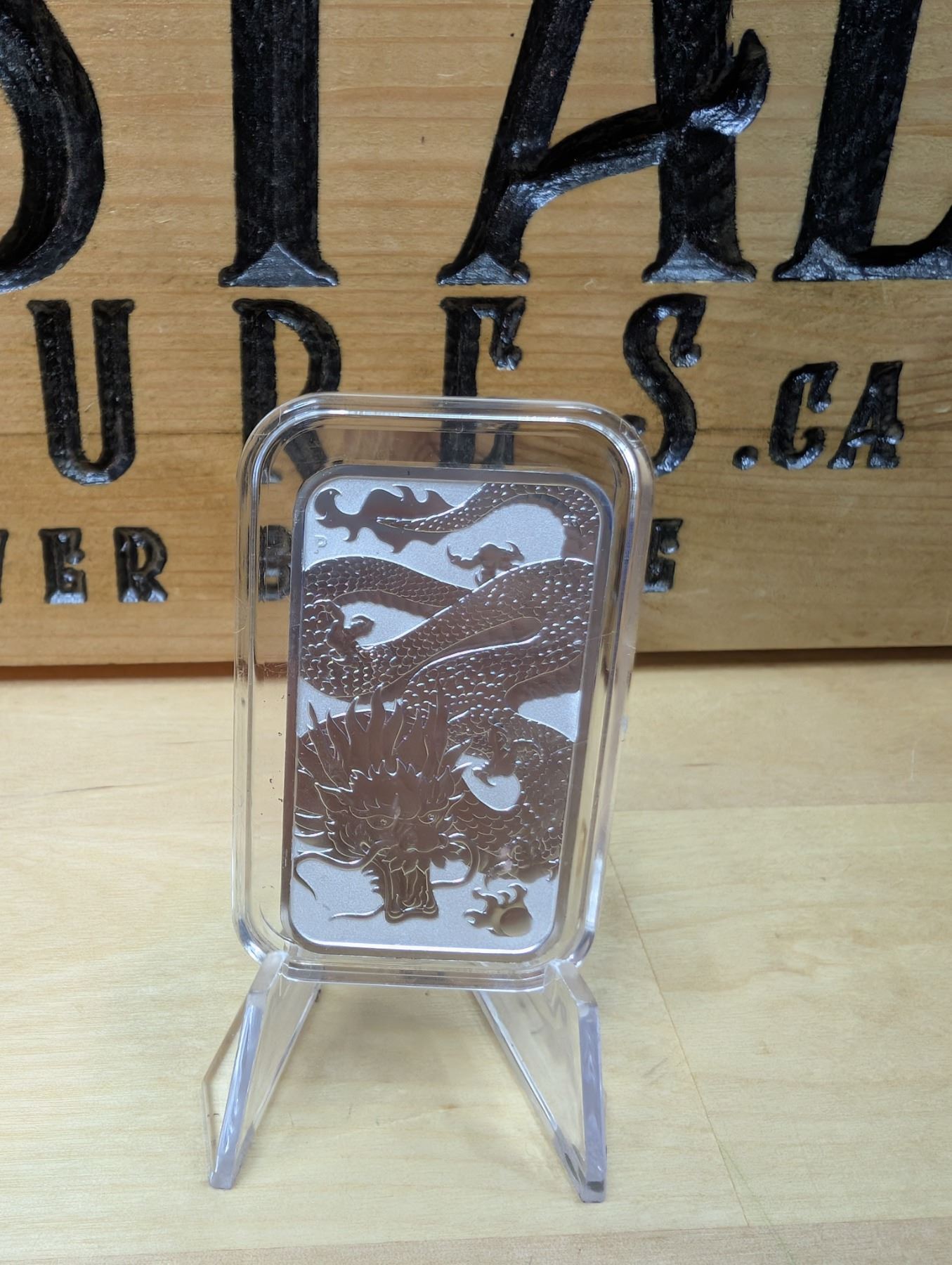 The 1 oz 2022 Dragon Rectangle Coin is a silver bullion coin issued in a unique rectangular shape, featuring a dragon design. It contains 1 ounce of .999 fine silver and is typically part of a series celebrating the Chinese Zodiac or other dragon-themed motifs. The design usually showcases an intricately detailed dragon, symbolizing power, strength, and good fortune. The rectangular shape sets it apart from traditional round coins, making it a popular choice among collectors. This coin is valued both for its silver content and its distinctive design.