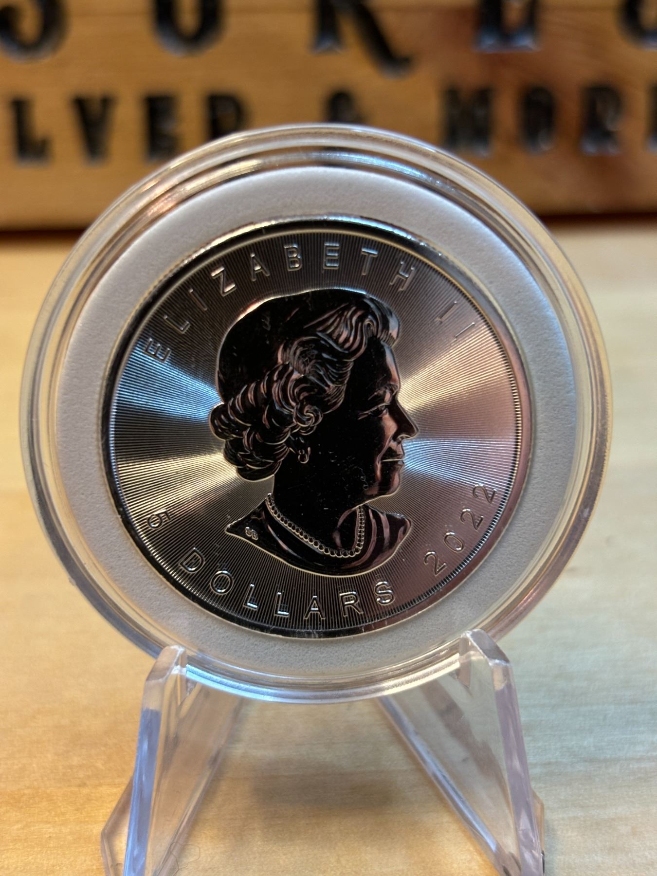 The 2022 1 oz Canadian Silver Maple Leaf is a .9999 fine silver coin featuring King Charles III on the obverse and the iconic maple leaf on the reverse. With advanced security features and MINTSHIELD™ protection, it’s perfect for collectors and investors.