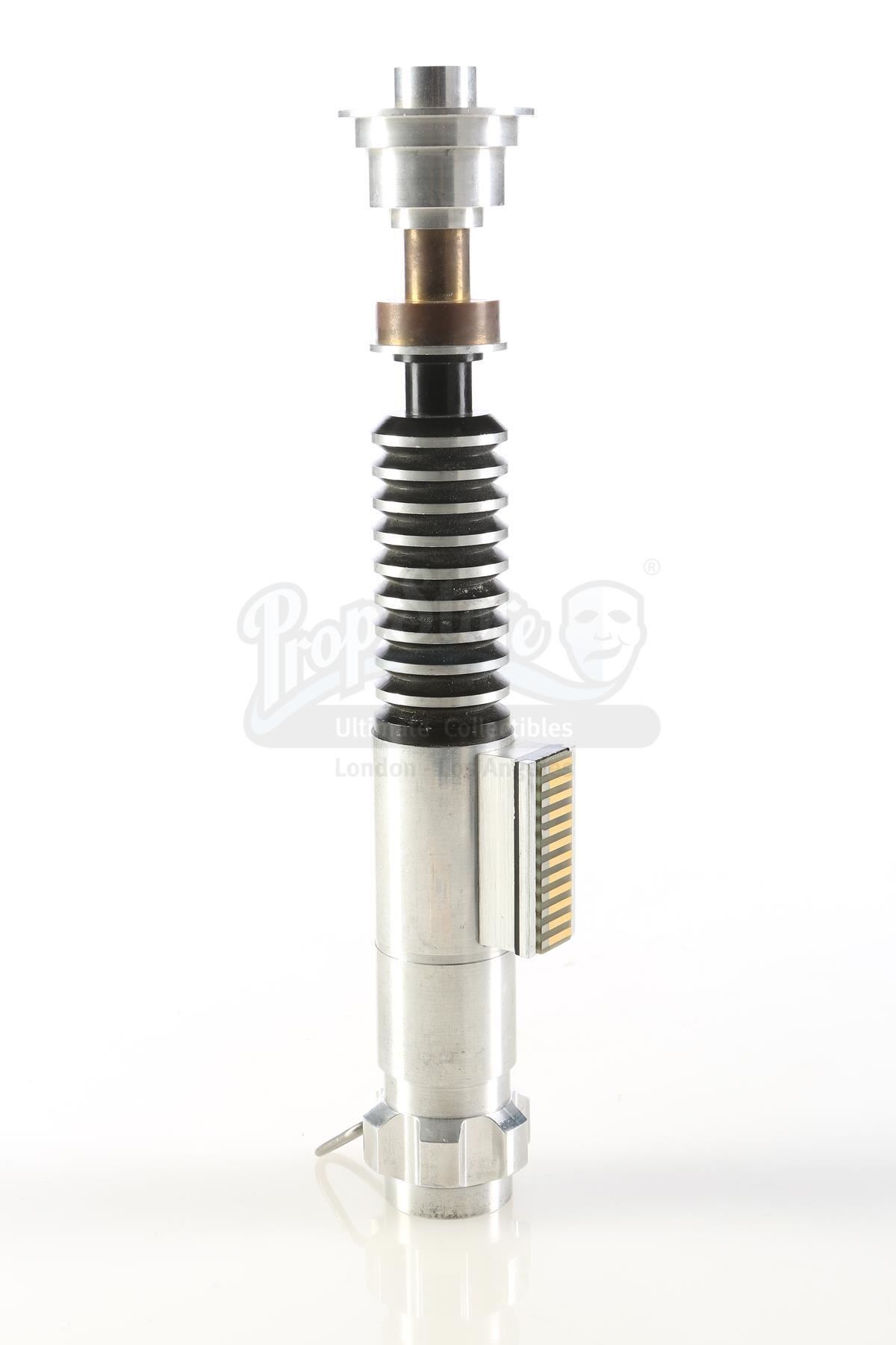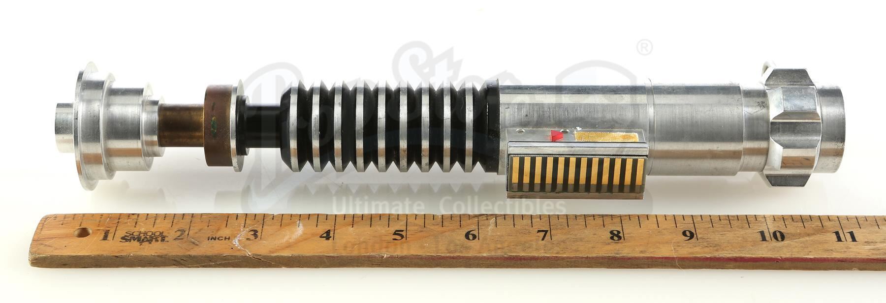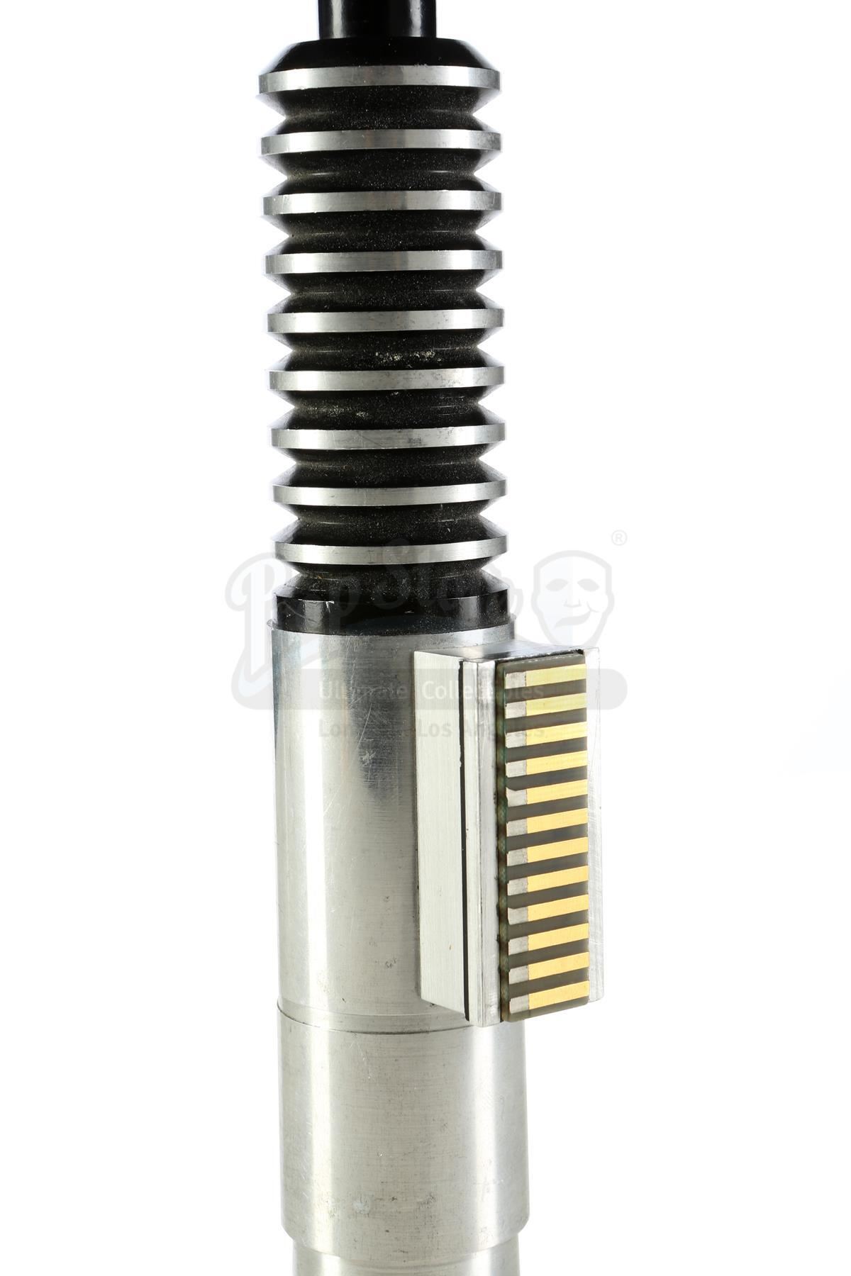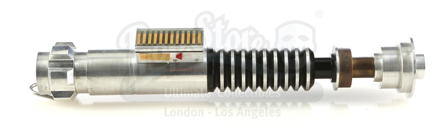 An ICONS first prototype Luke Skywalker (Mark Hamill) lightsaber from the promotion of Richard Marquand's Star Wars: Return of the Jedi. This piece was part of a package of replica prop prototypes that ICONS initially showcased to Lucasfilm in order to gain the first-ever prop replica license. ICONS intended to make the Return of the Jedi lightsaber prop as a consumer product in the 1990s, but it was never ultimately released.