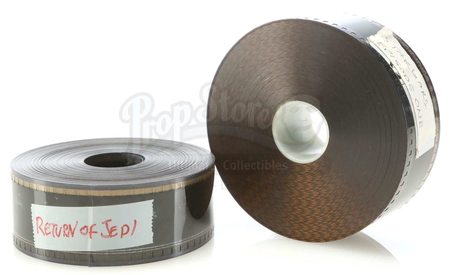 A pair of 35mm trailer film reels for Richard Marquand's Star Wars: Return of the Jedi and George Lucas' Star Wars: The Phantom Menace distributed by 20th Century Fox.