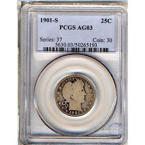 Lot 743 - 1901-S Barber Quarter Dollar PCGS AG03