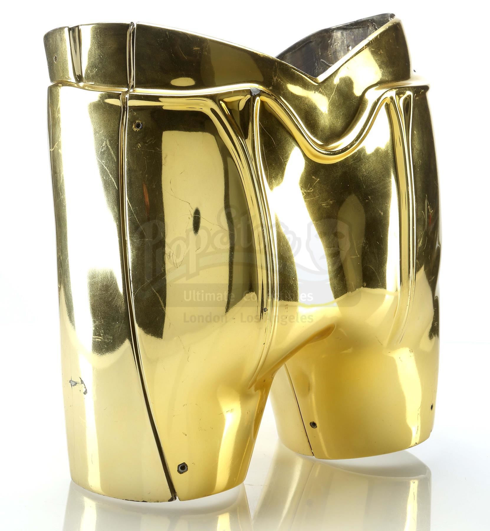 C-3PO hip plates from Disney's Star Wars: Star Tours. In the theme park attraction, C-3PO guided attendees onto a tourist spacecraft caught in the middle of the Galactic Civil War.