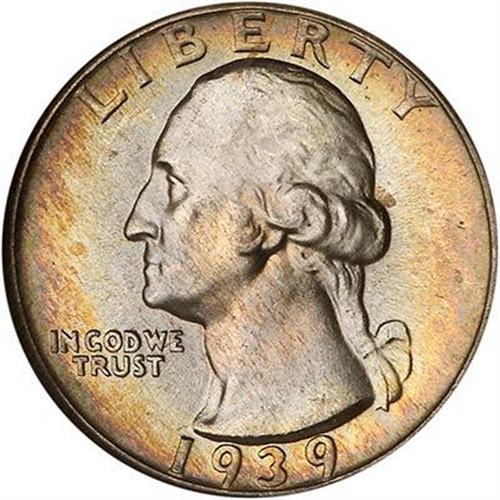 1939 Washington Quarter Dollar. A fascinating gem which has silvery white luster, satiny and smooth, with a veil of golden toning barely able to constrain its youthful energy. (#5808)